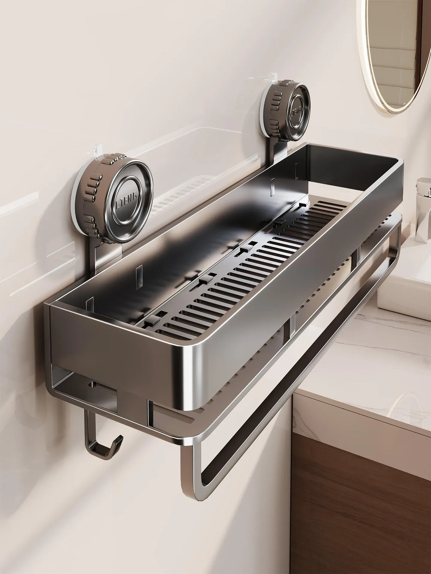 Multifunctional Suction Cup Bathroom Shelf - No Drill Wall-Mounted Storage Rack for Toiletries and Shower Gel, Perfect for Organizing Your Bathroom Space!