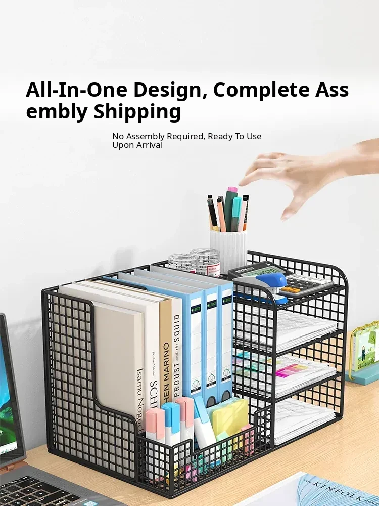 All-in-One Desktop File Organizer - Office Storage Rack with File Holder, Desk Accessories, and Pencil Box for Efficient Workspace Management