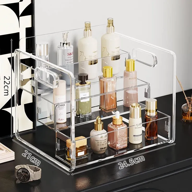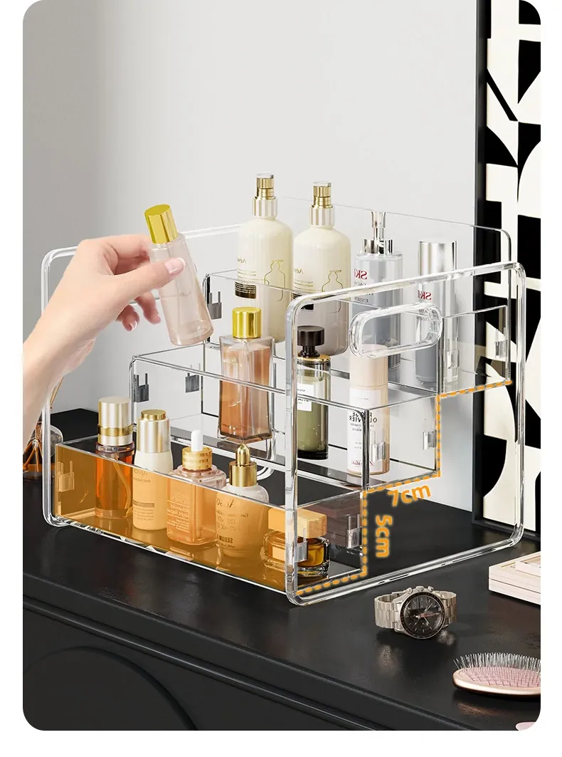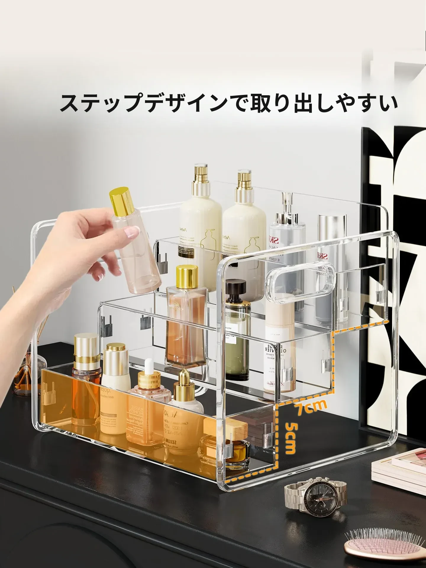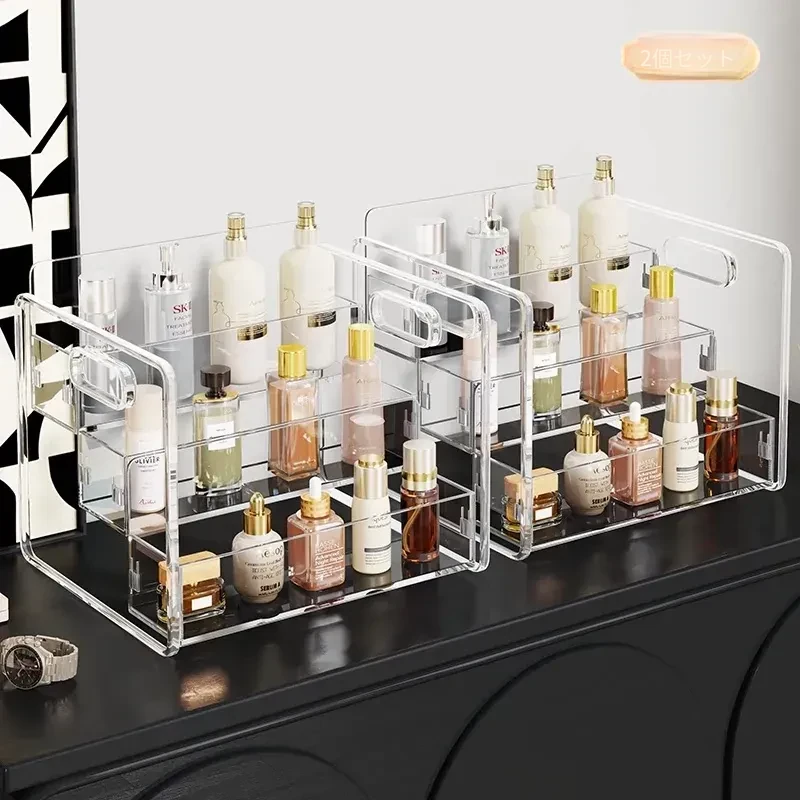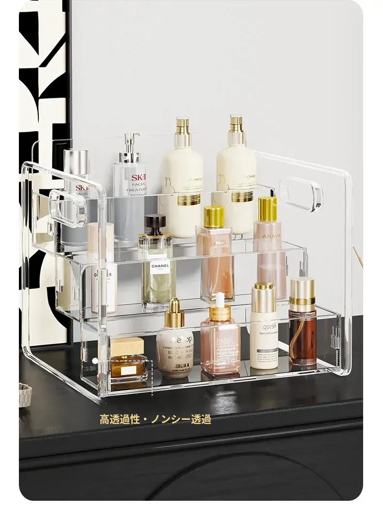 化粧品収納ボックス デスクトップ用アクリル製 スキンケアアイテムの層別収納 ステップ式透明リップスティックディスプレイスタンドで、あなたのビューティースペースを美しく整理!