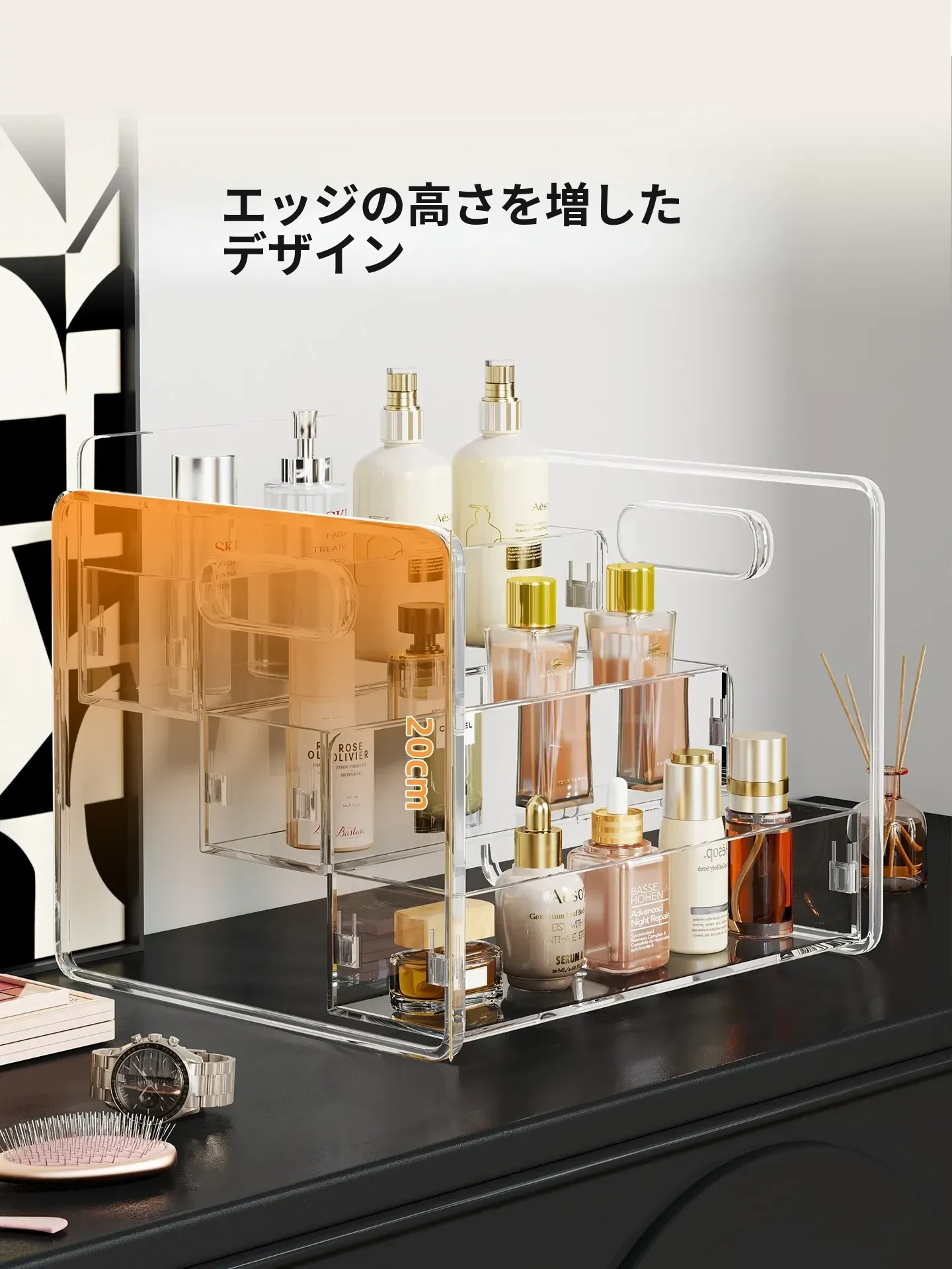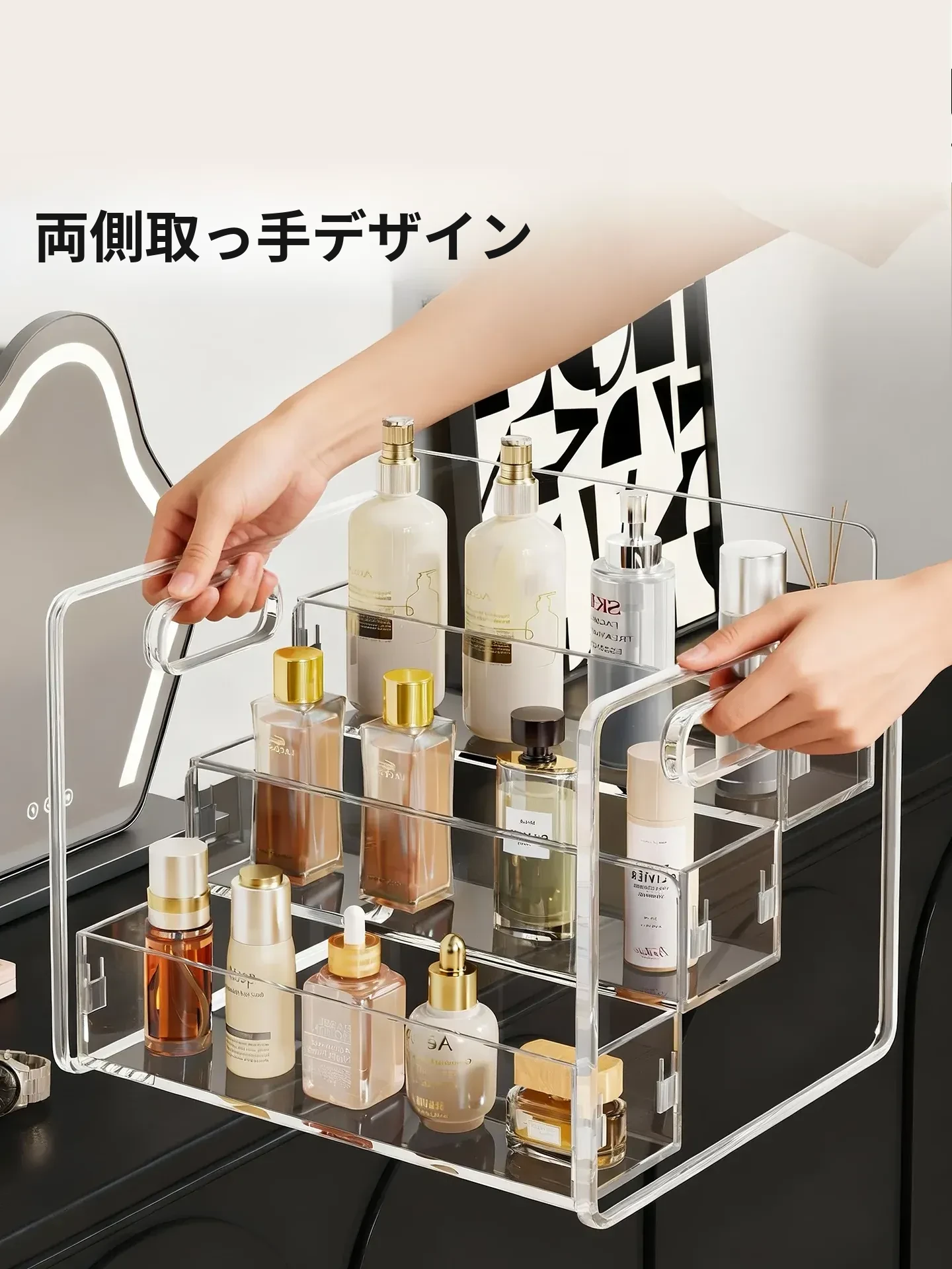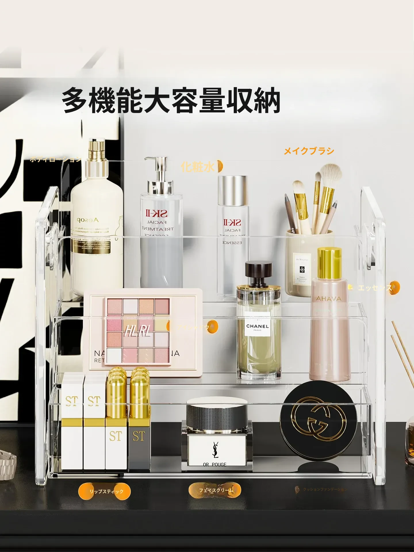 化粧品収納ボックス デスクトップ用アクリル製 スキンケアアイテムの層別収納 ステップ式透明リップスティックディスプレイスタンドで、あなたのビューティースペースを美しく整理!