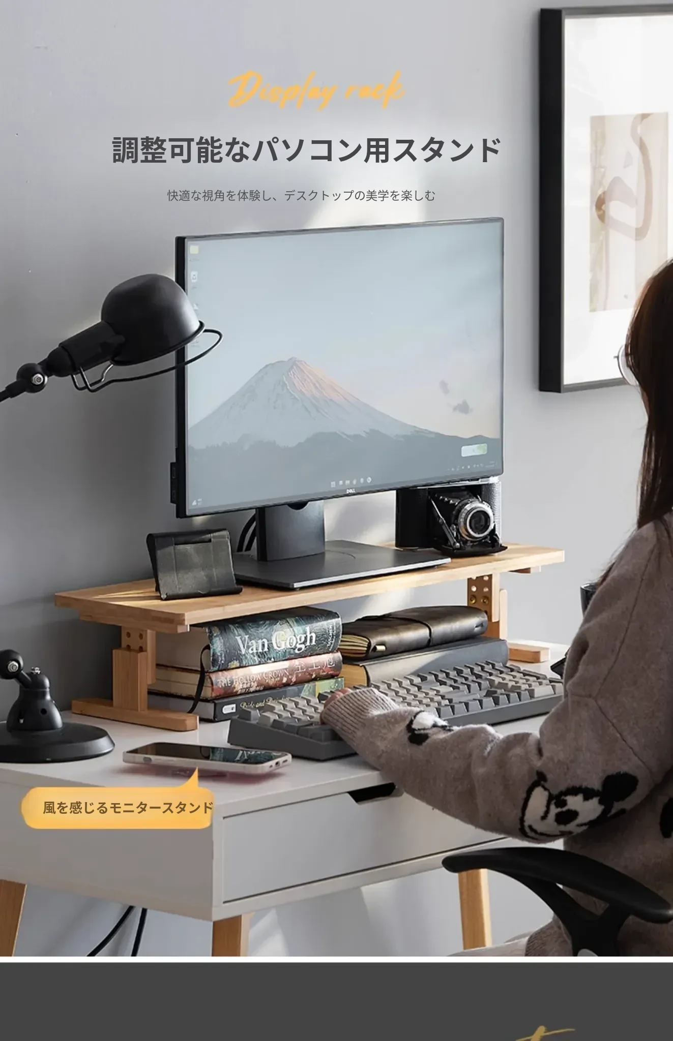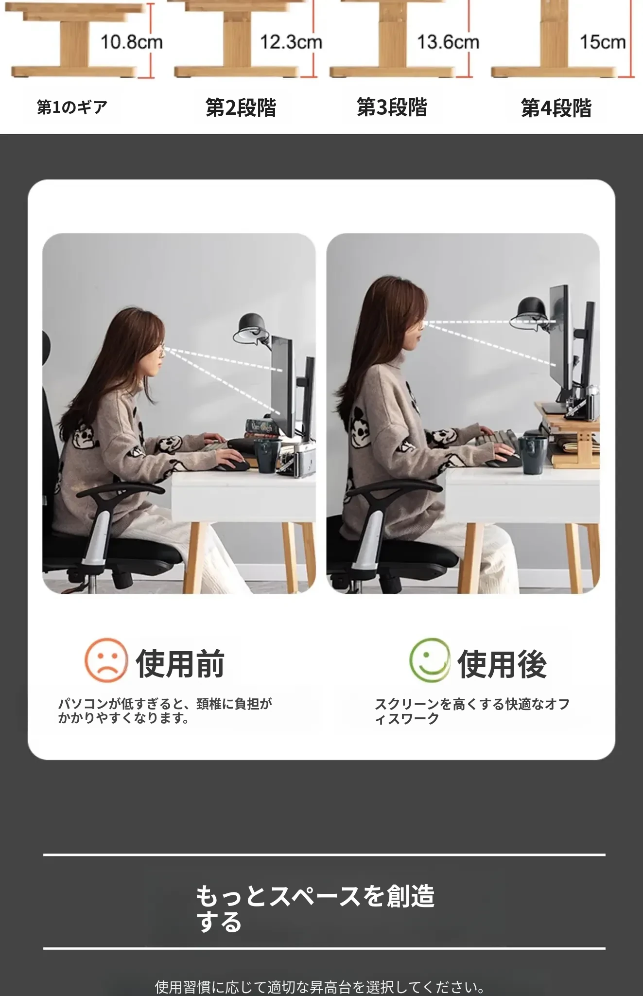 デスクトップモニターを快適に!調整可能なコンピュータスタンド - 省スペース&スタイルアップ!オフィスでも自宅でも、あなたの作業環境を向上させる必須アイテム!