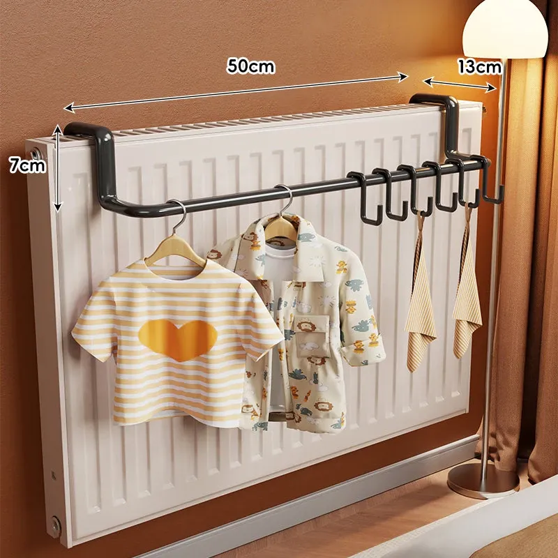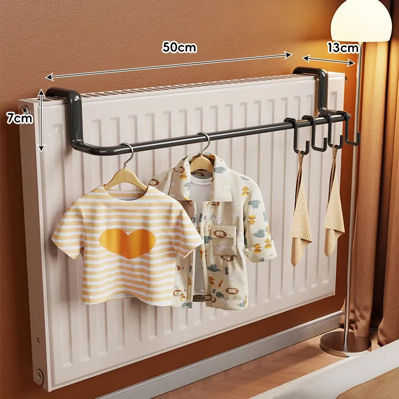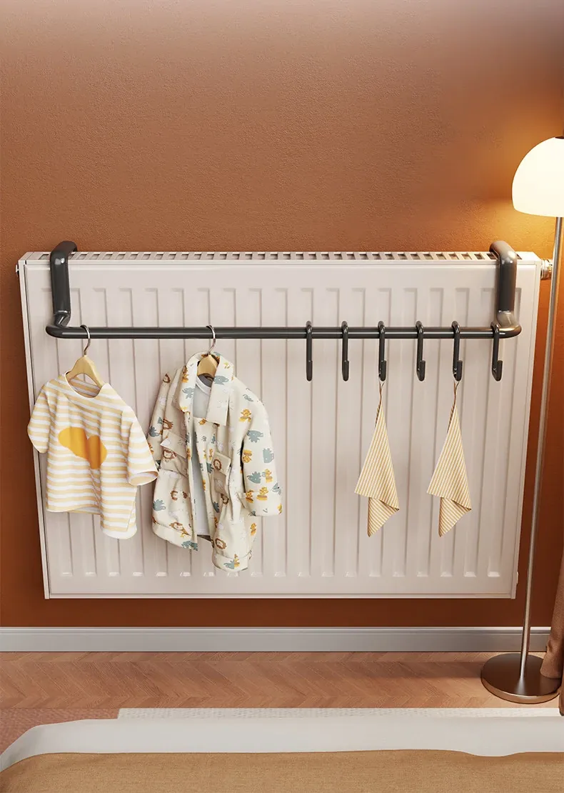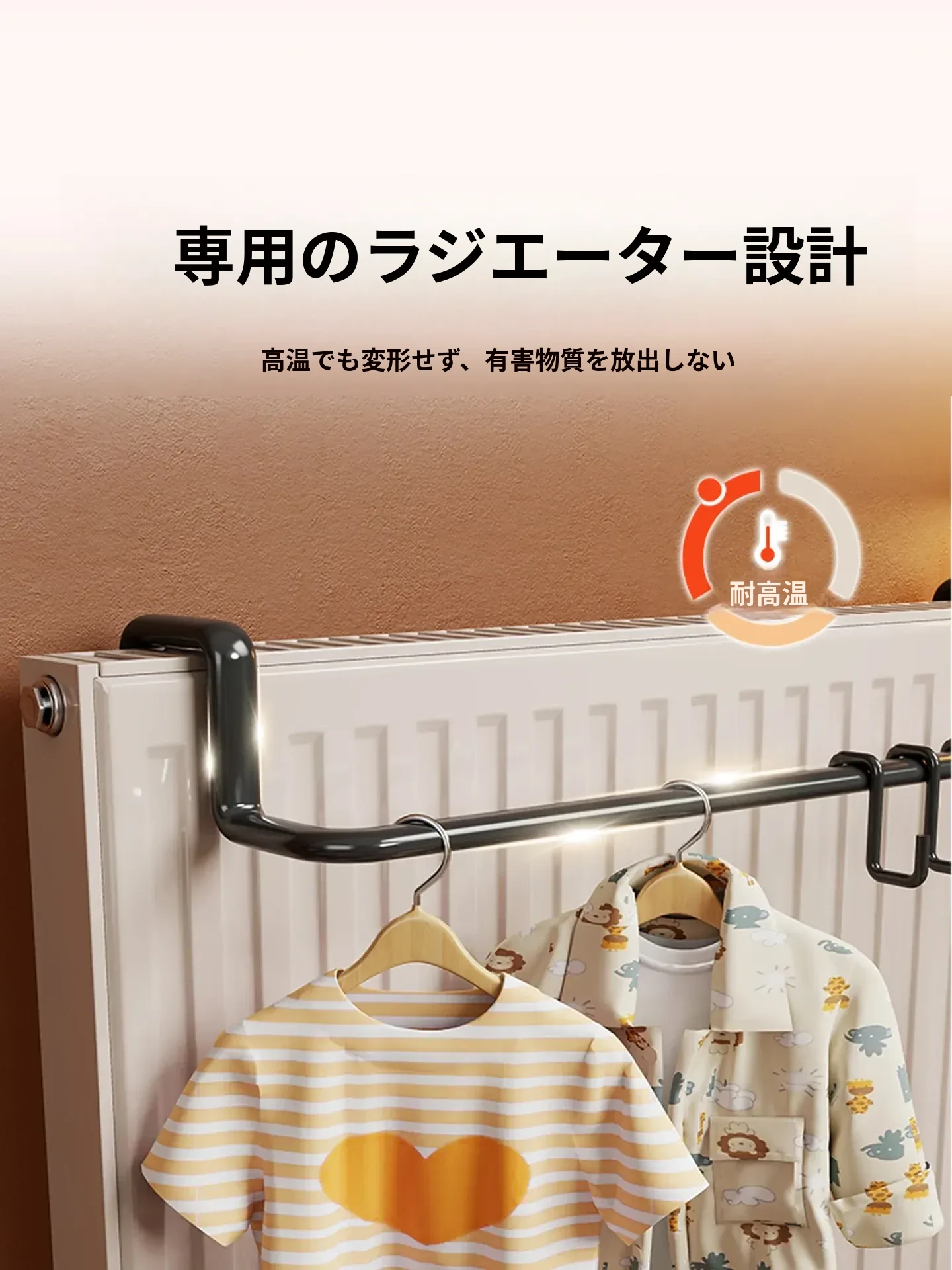 バスルーム専用暖房パイプ収納フック!穴を開けずに簡単取り付け、タオルや衣類をすっきり収納できる便利なアイテム。暖かい空間でおしゃれに整理整頓しませんか?