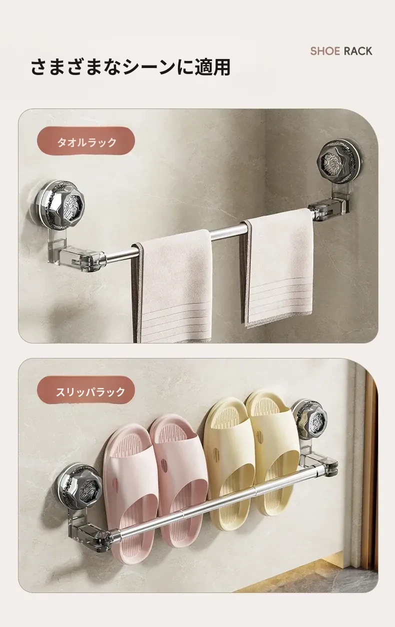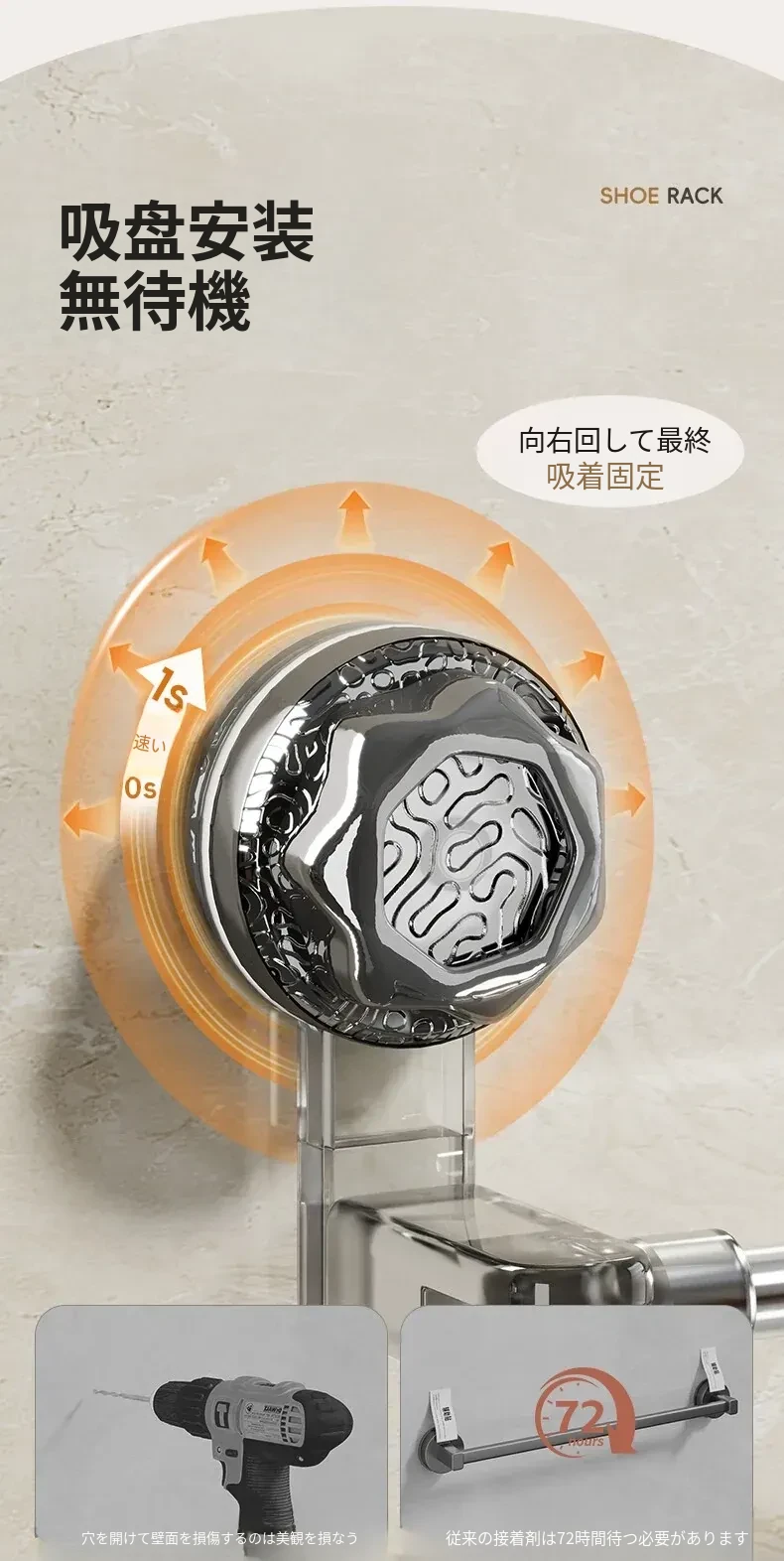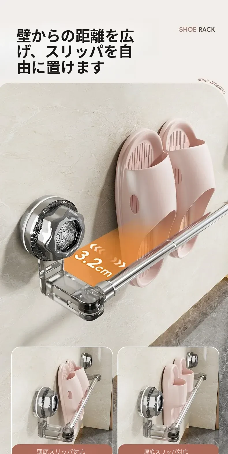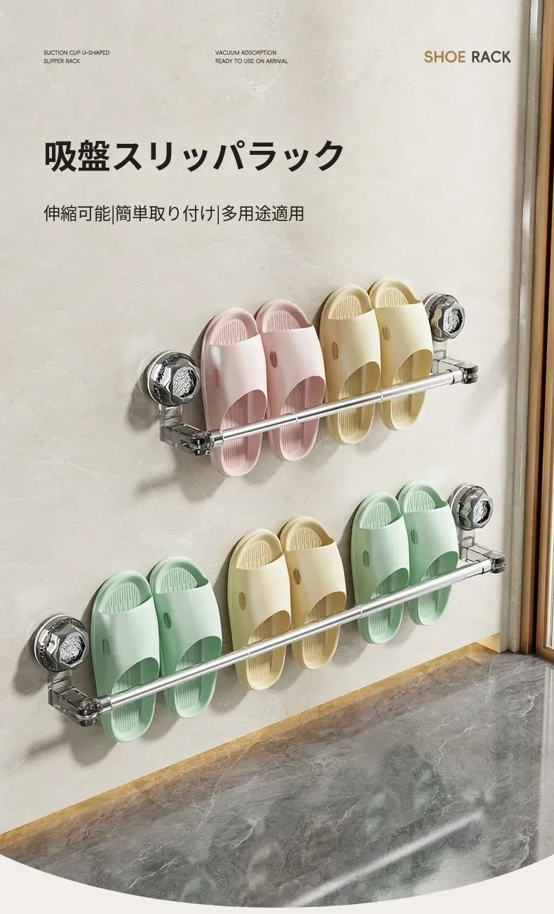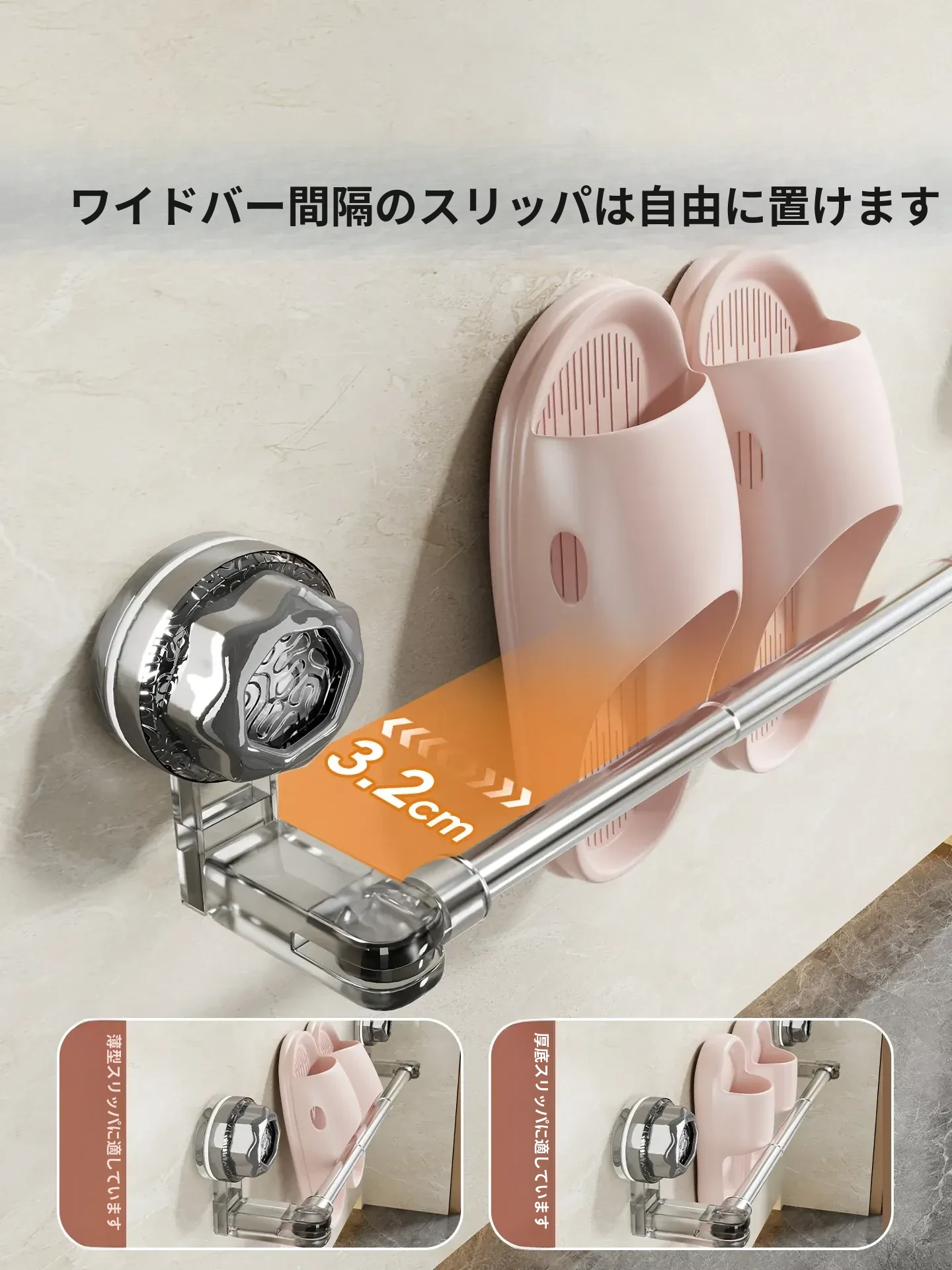 バスルーム用吸盤スリッパラック - 取り付け不要で壁掛け可能!トイレのドアの後ろに靴を収納できる便利なアイテム。水切り機能付きで衛生的、スペースを有効活用できる必需品です!