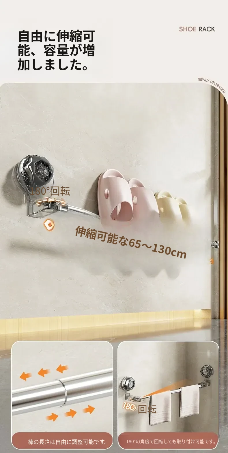 グレーのスリッパラック⭐伸縮可能(65-130cm)