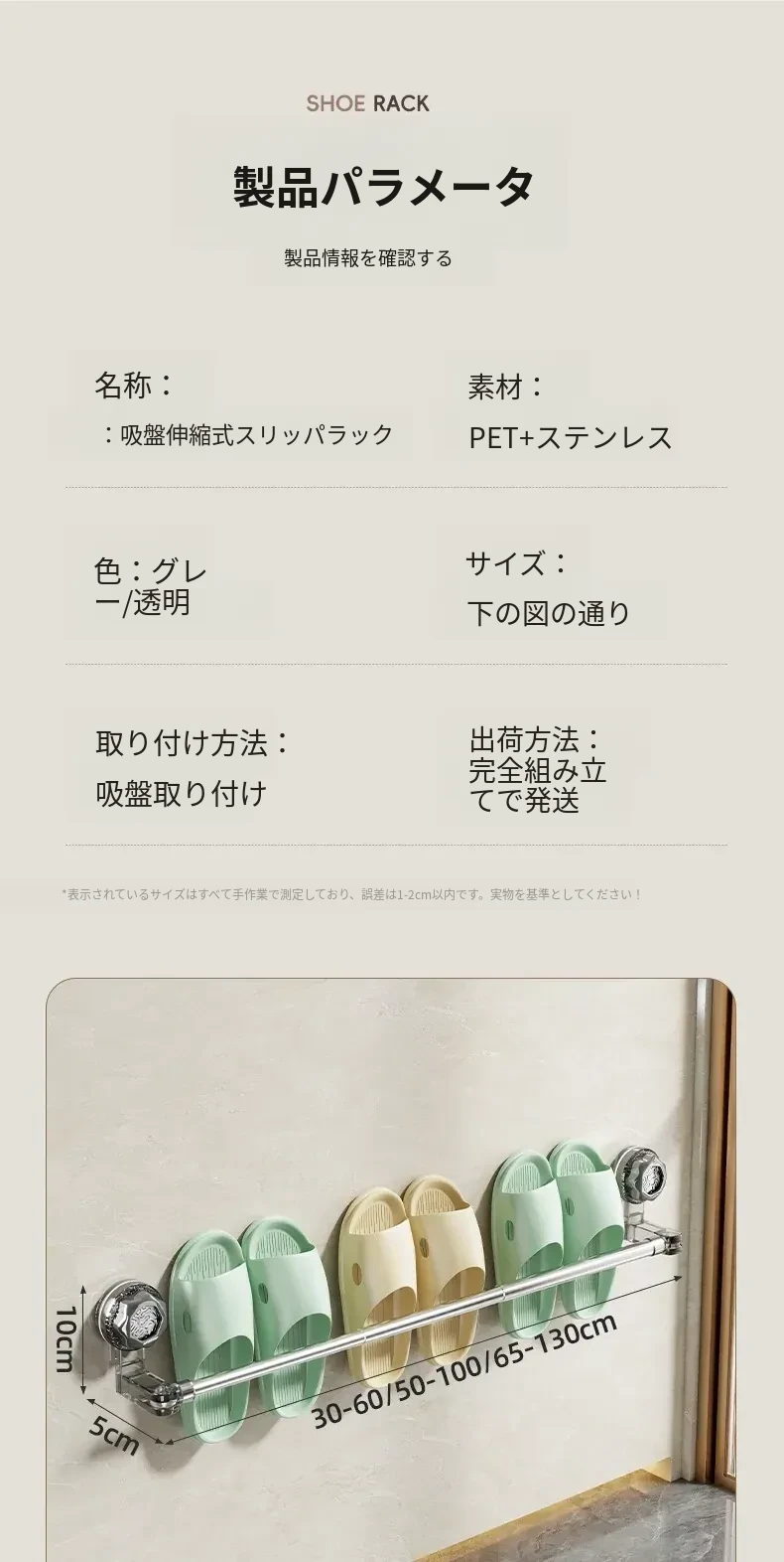 透明のスリッパラック·⭐·伸縮可能(50-100cm)
