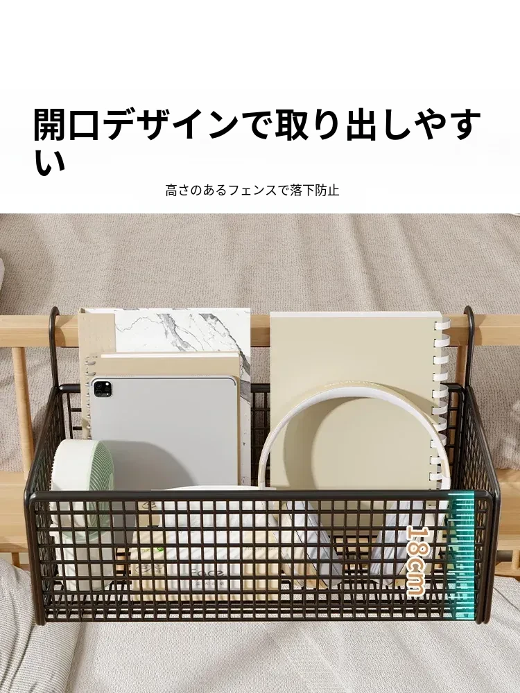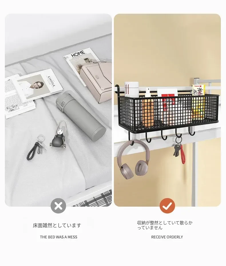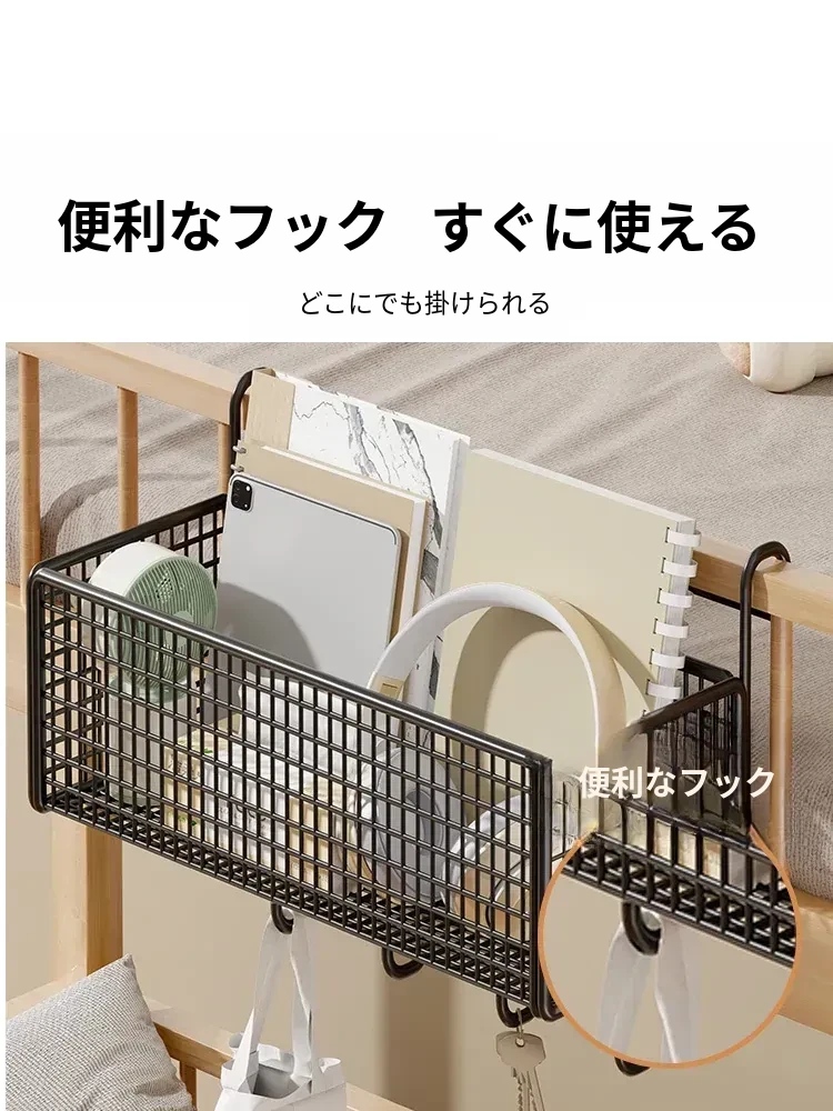 寝室用ベッドサイド収納ラック!上下段ベッドにも対応、便利な掛け式デザインでお菓子や小物をすっきり整理。快適な睡眠空間を実現する必需品!