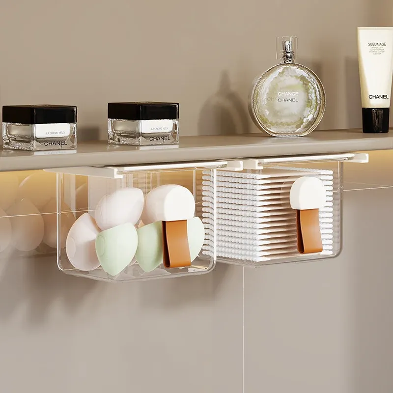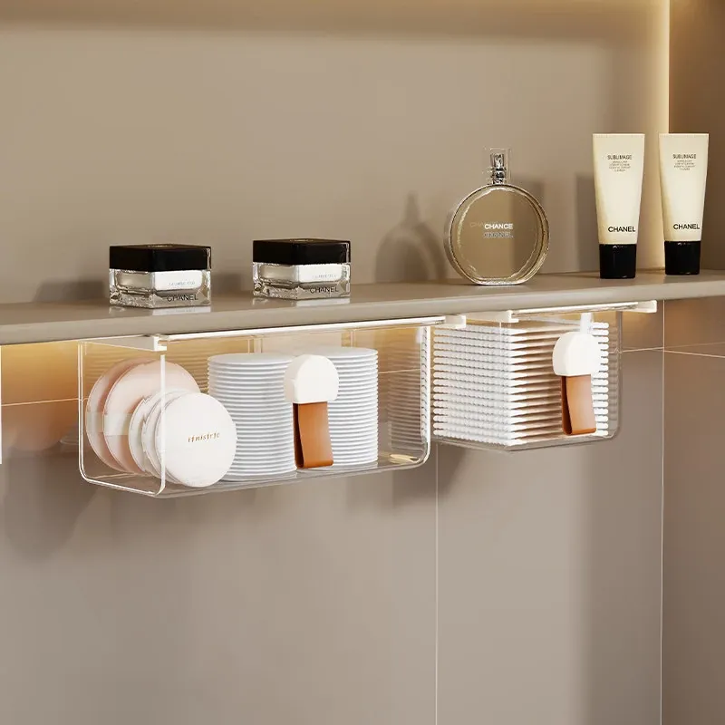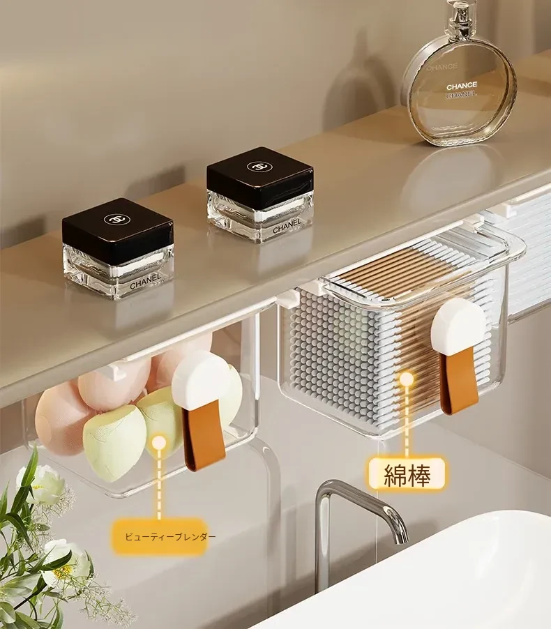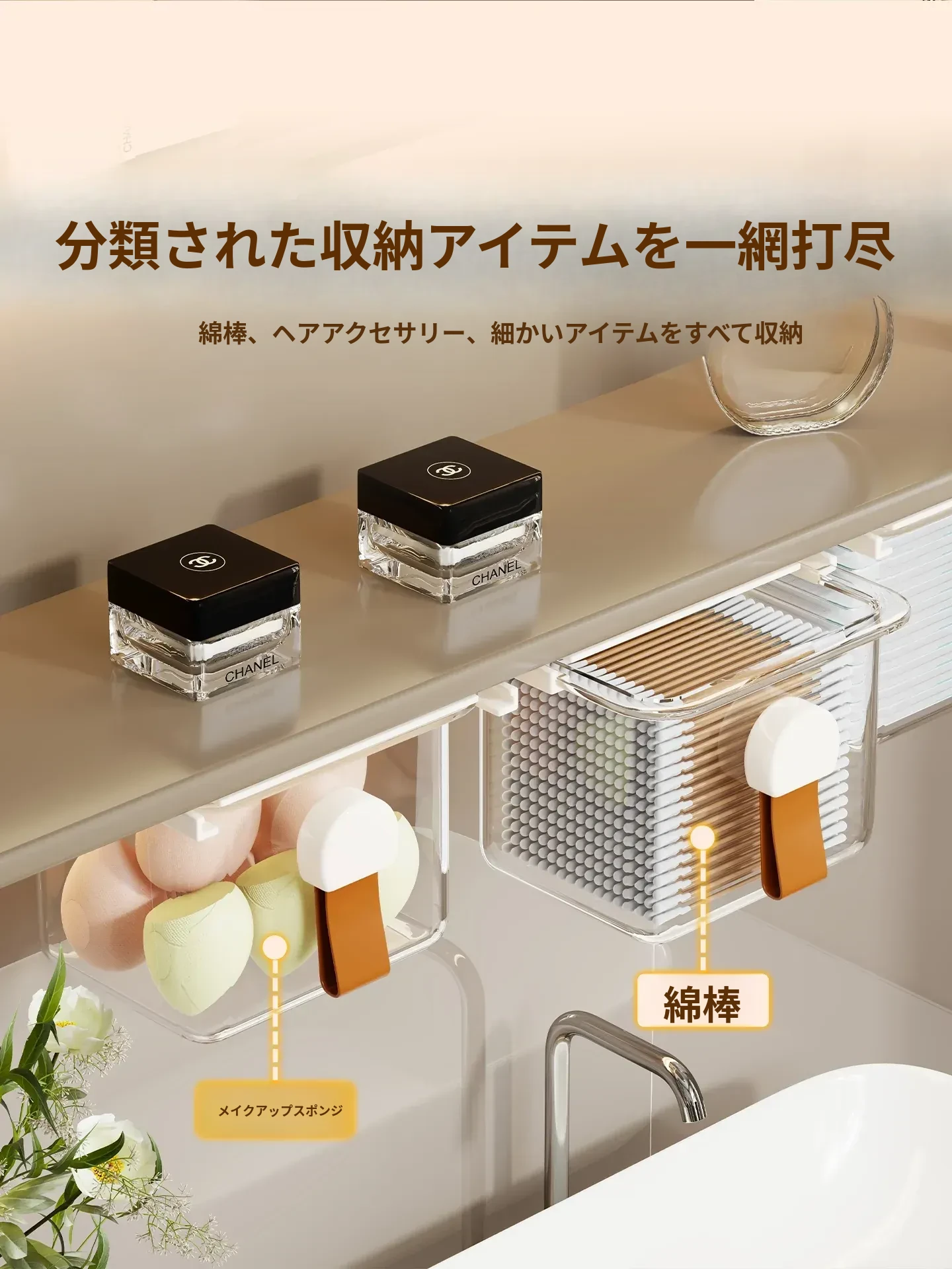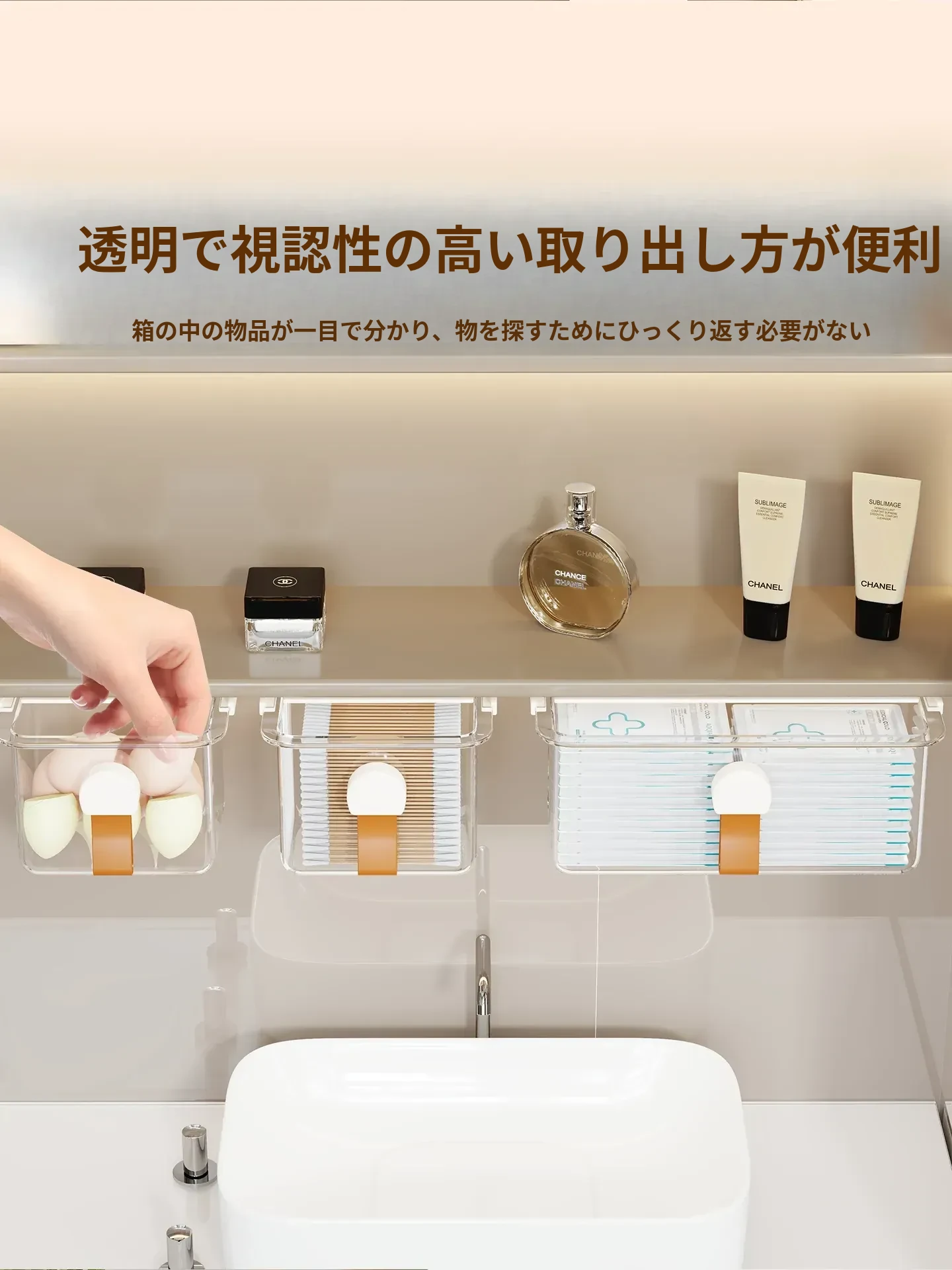 鏡下収納ボックス 家庭用洗面台引き出し式コットン棒・メイク落としコットンラック 透明アクリル収納棚でスッキリ整理!おしゃれで実用的なアイテムです。
