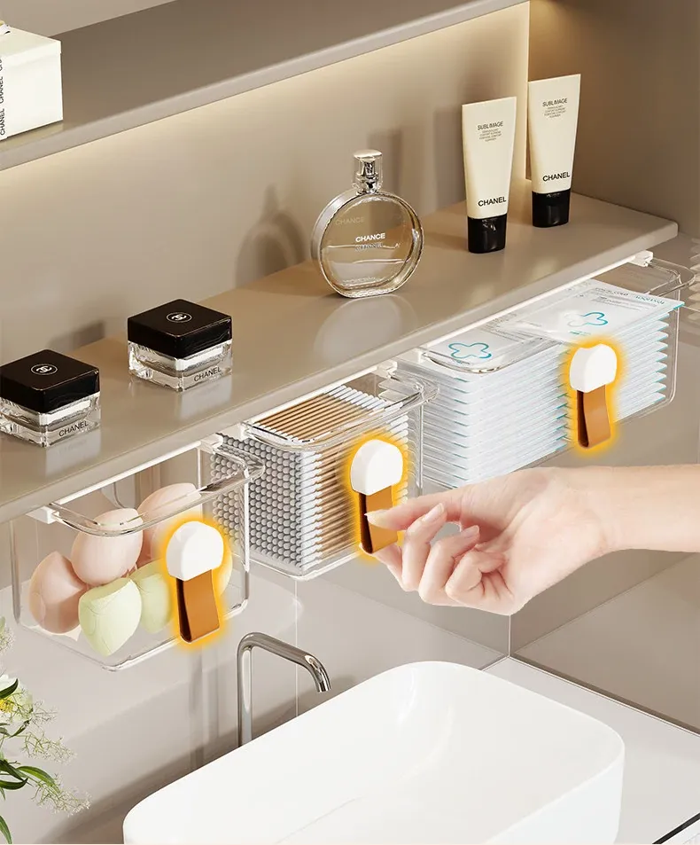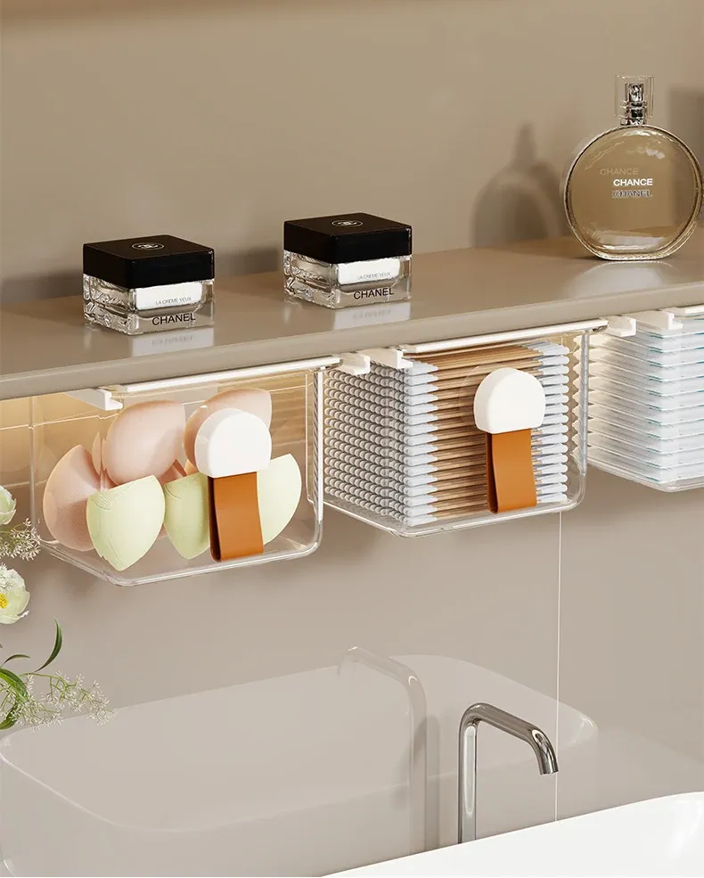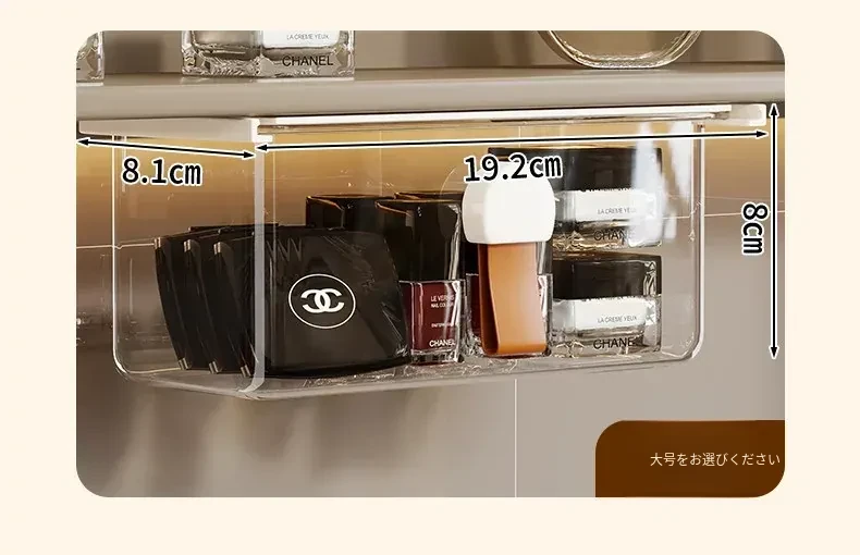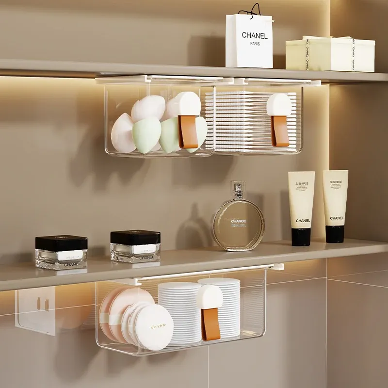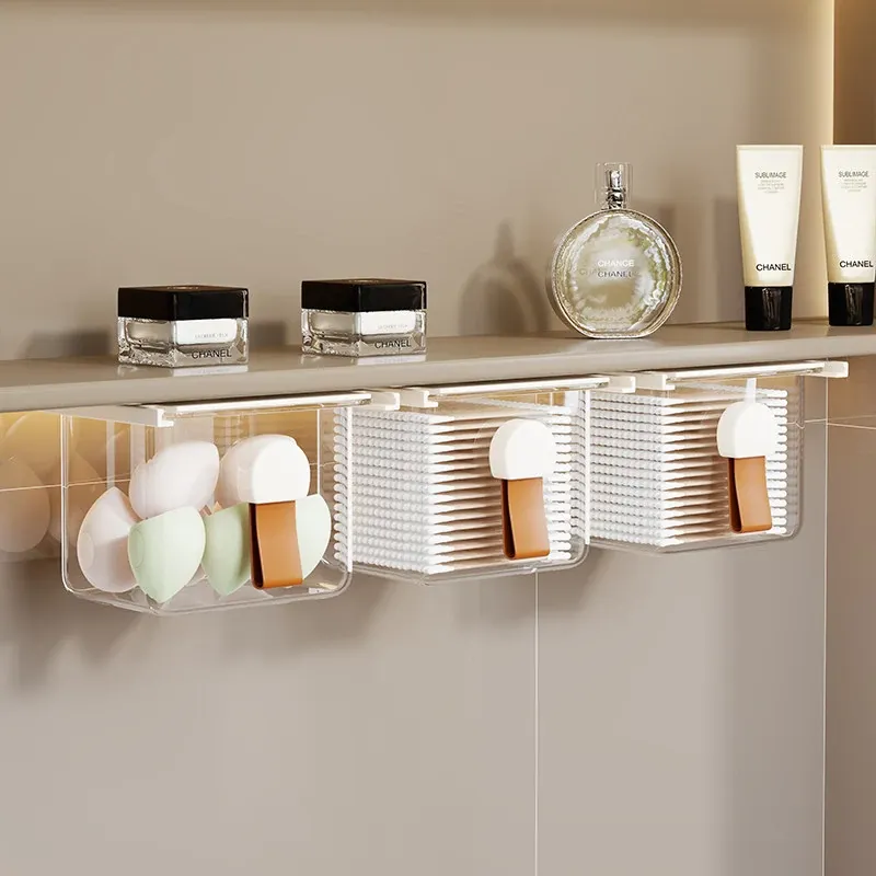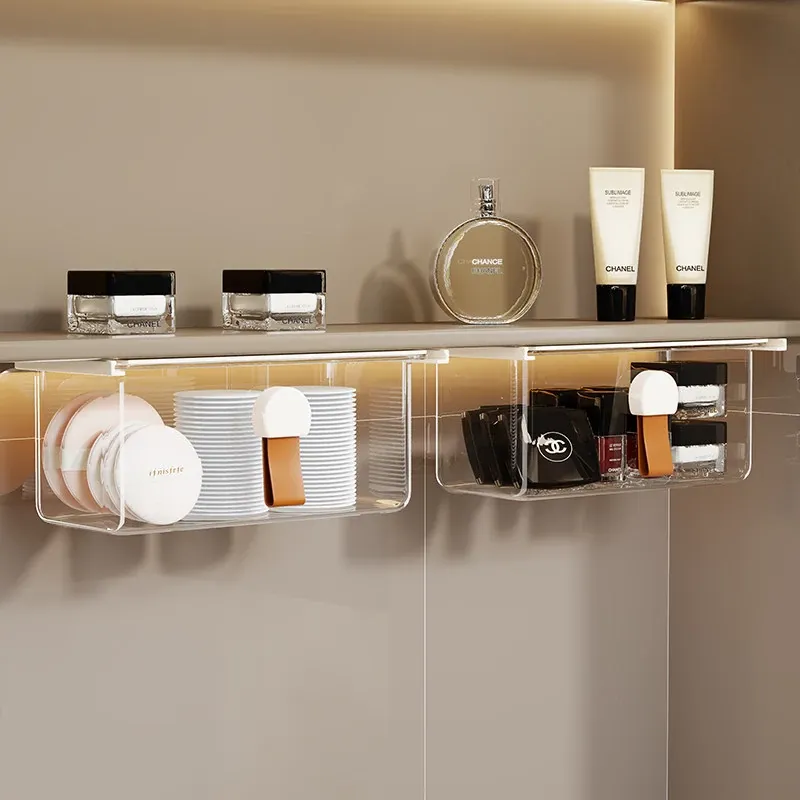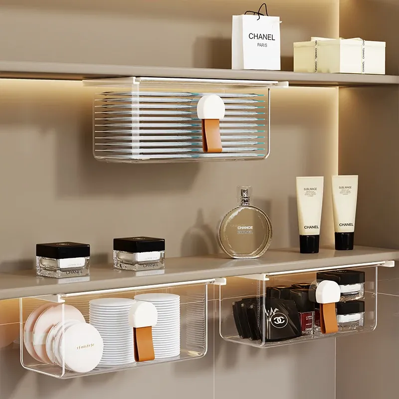 鏡下収納ボックス 家庭用洗面台引き出し式コットン棒・メイク落としコットンラック 透明アクリル収納棚でスッキリ整理!おしゃれで実用的なアイテムです。