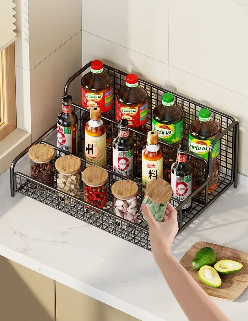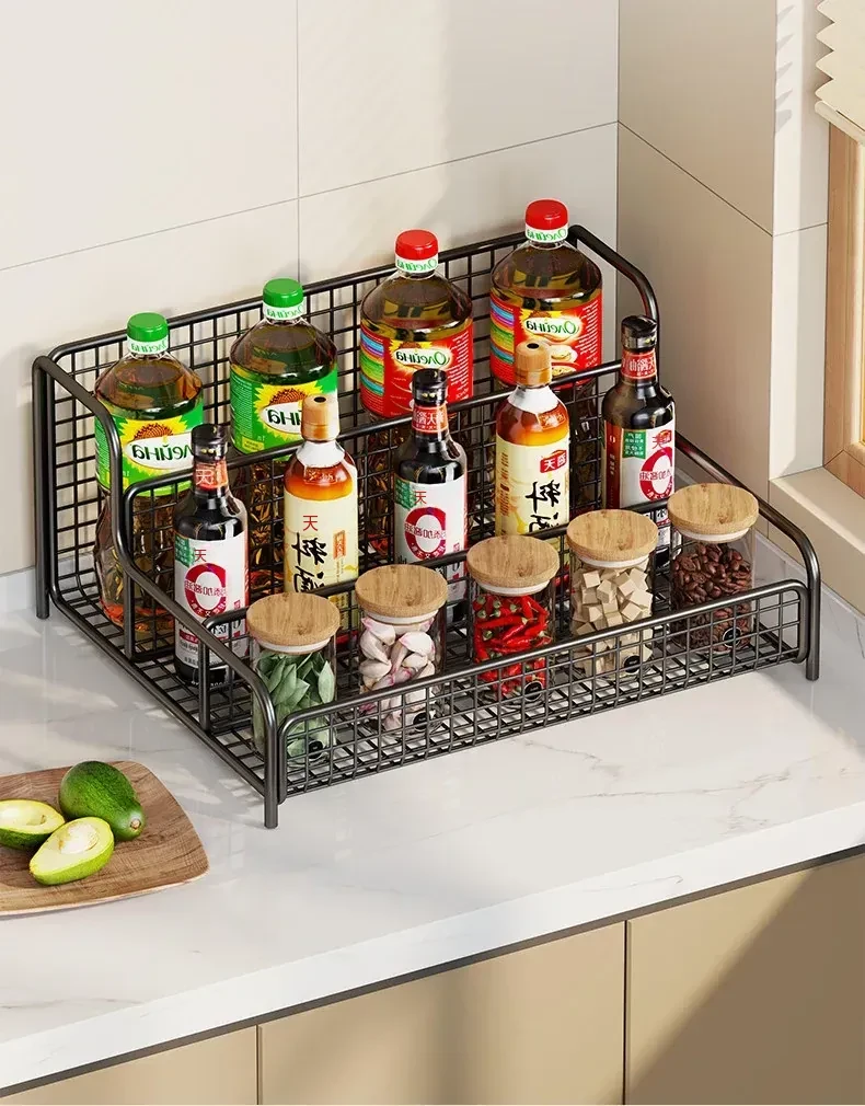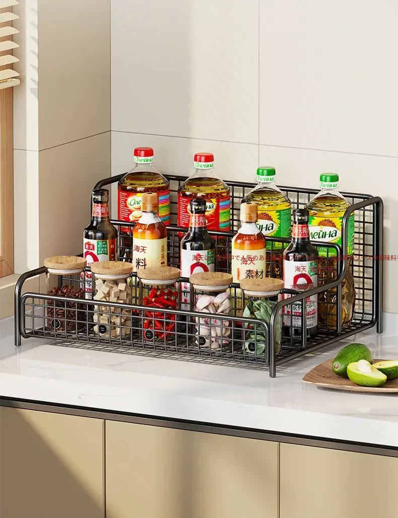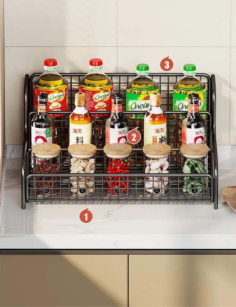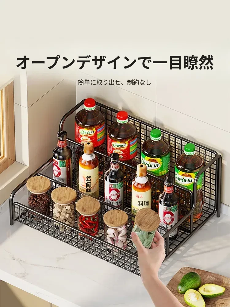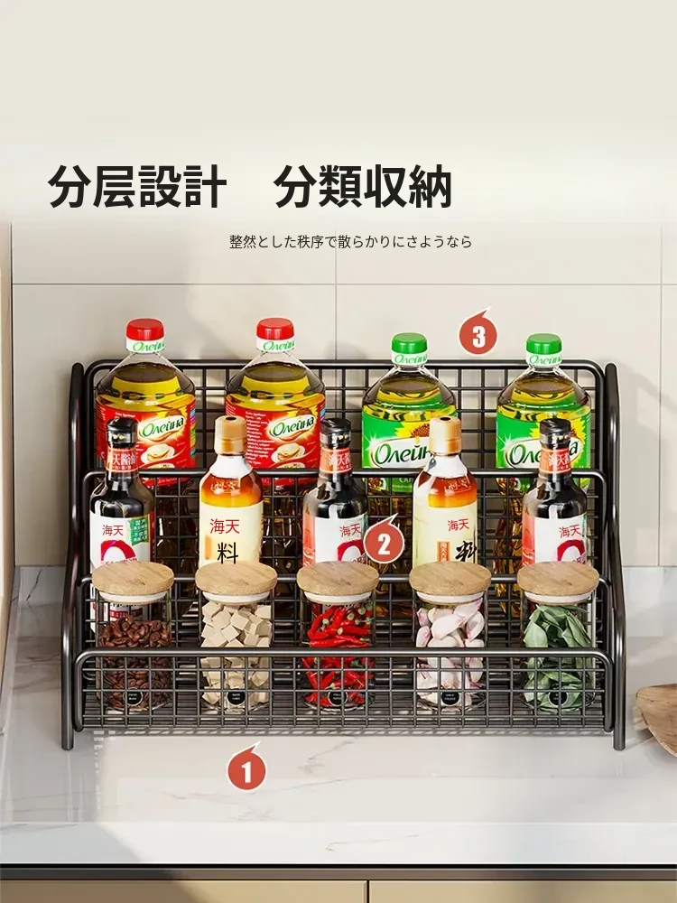 キッチン収納ラック 調味料スタンド コンパクトな角型 調味料整理に最適!油・塩・醤油・酢をスッキリ収納!家庭にぴったりの小型アイテム。シンプルで使いやすく、キッチンを美しく保ちます!