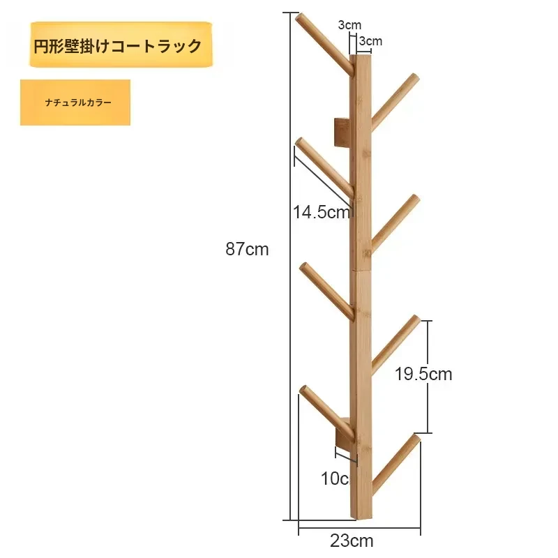 【丸型フック】壁掛けコートハンガー【ナチュラル】