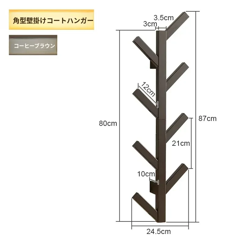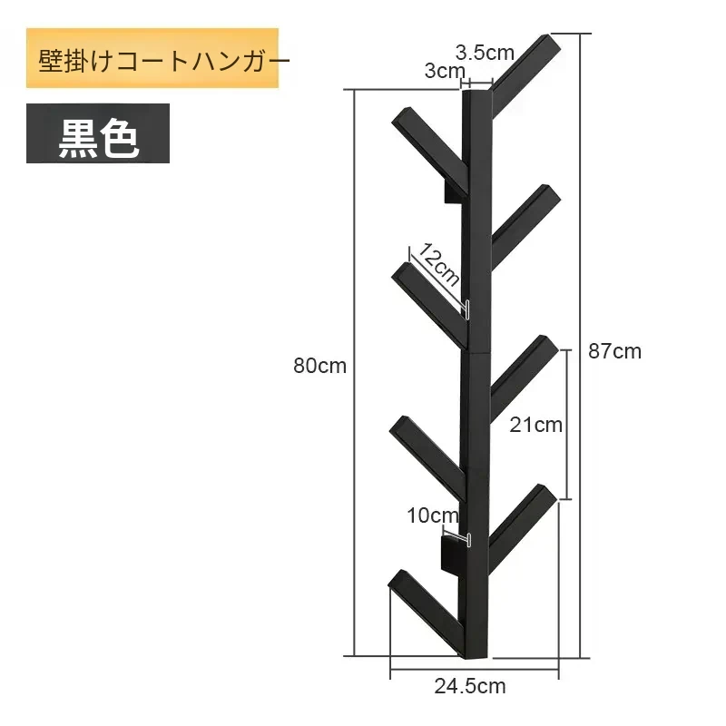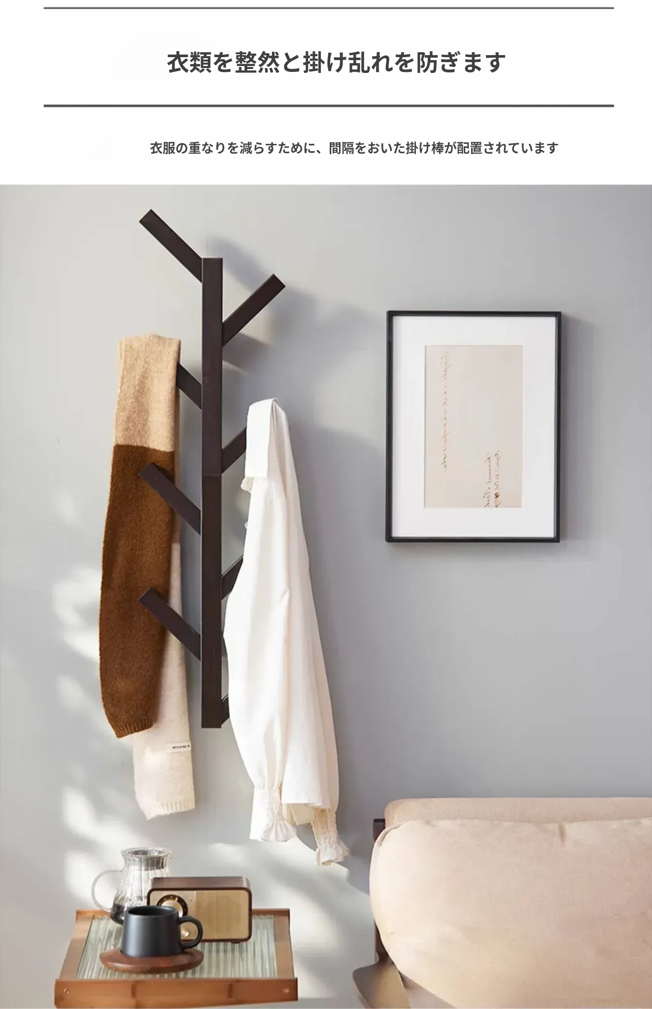 壁掛けコートハンガー - 玄関にぴったりな創造的な枝型デザイン!おしゃれで実用的、寝室のドアの裏にも最適な壁掛けフック。お客様の生活空間をスタイリッシュに彩ります!