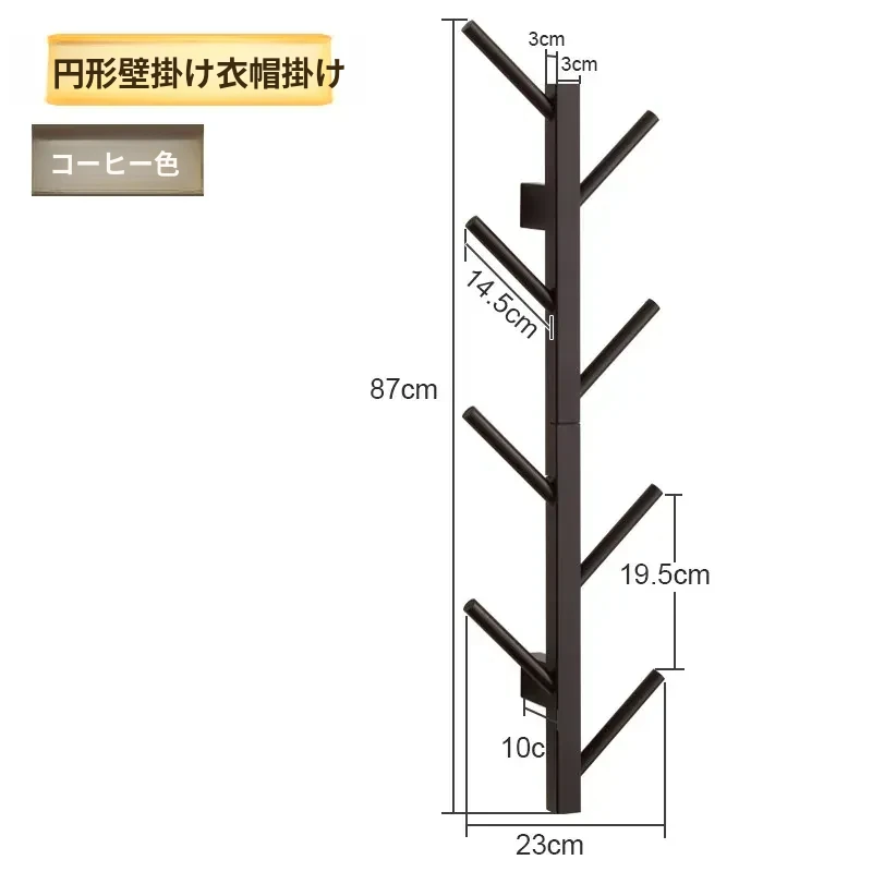 【丸型フック】壁掛けコートハンガー【コーヒー色】