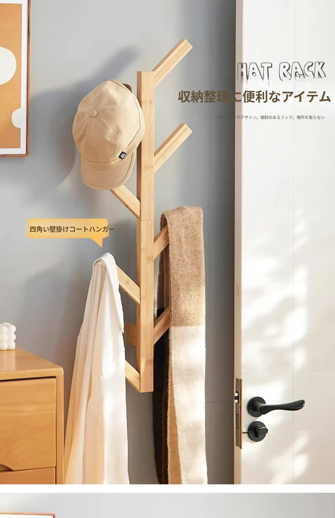 【四角フック】壁掛けコートハンガー【ナチュラル】