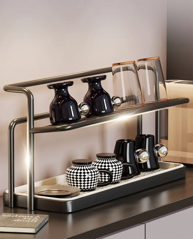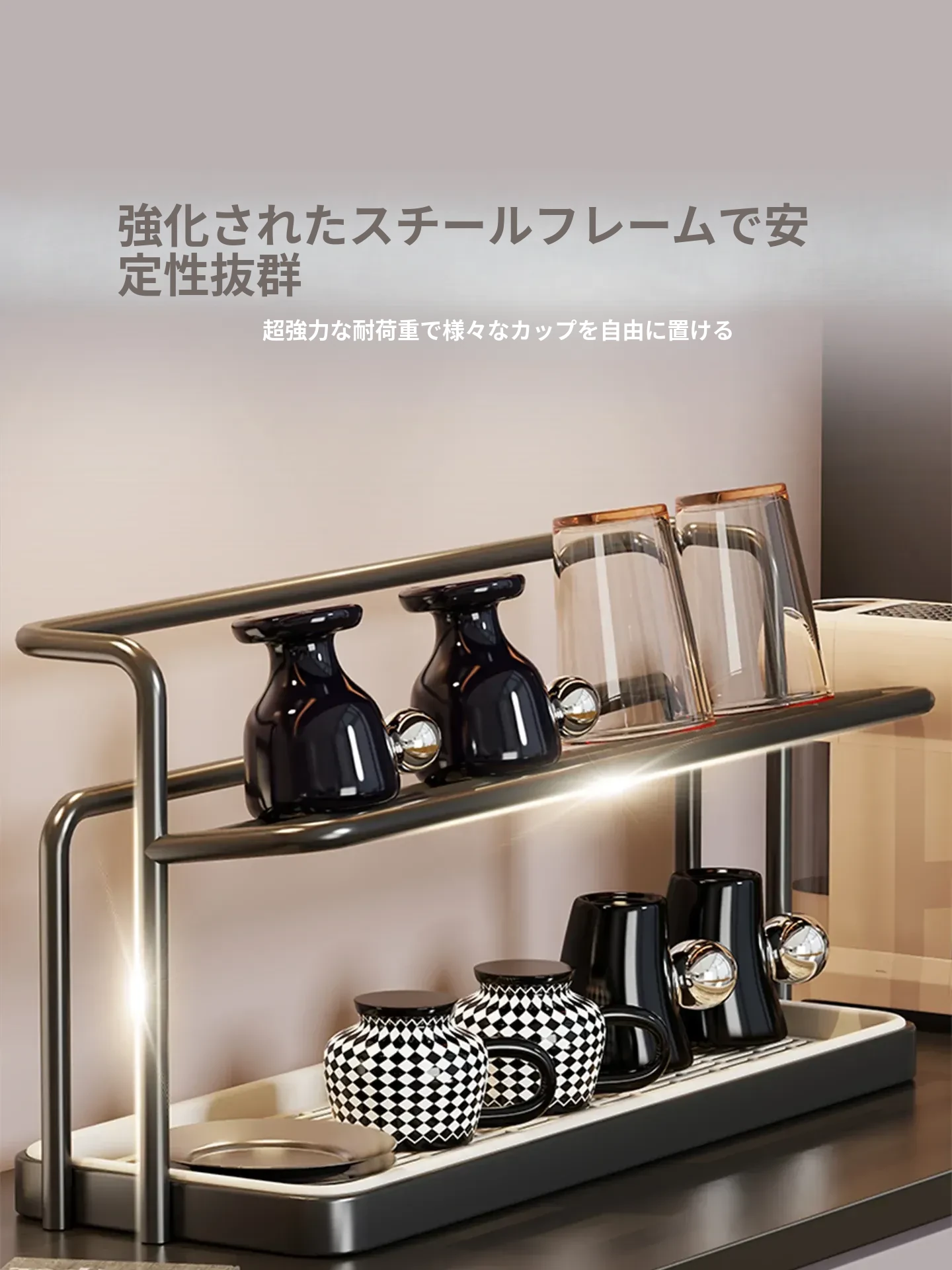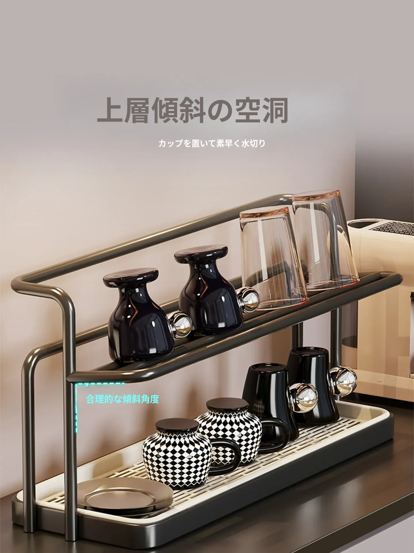 デスクトップ収納ラック - コーヒーカップやティーセットに最適な水切りスタンド!おしゃれなガラス製カップも美しく整理整頓。ダイニングテーブルやサイドボードにピッタリの便利アイテム!
