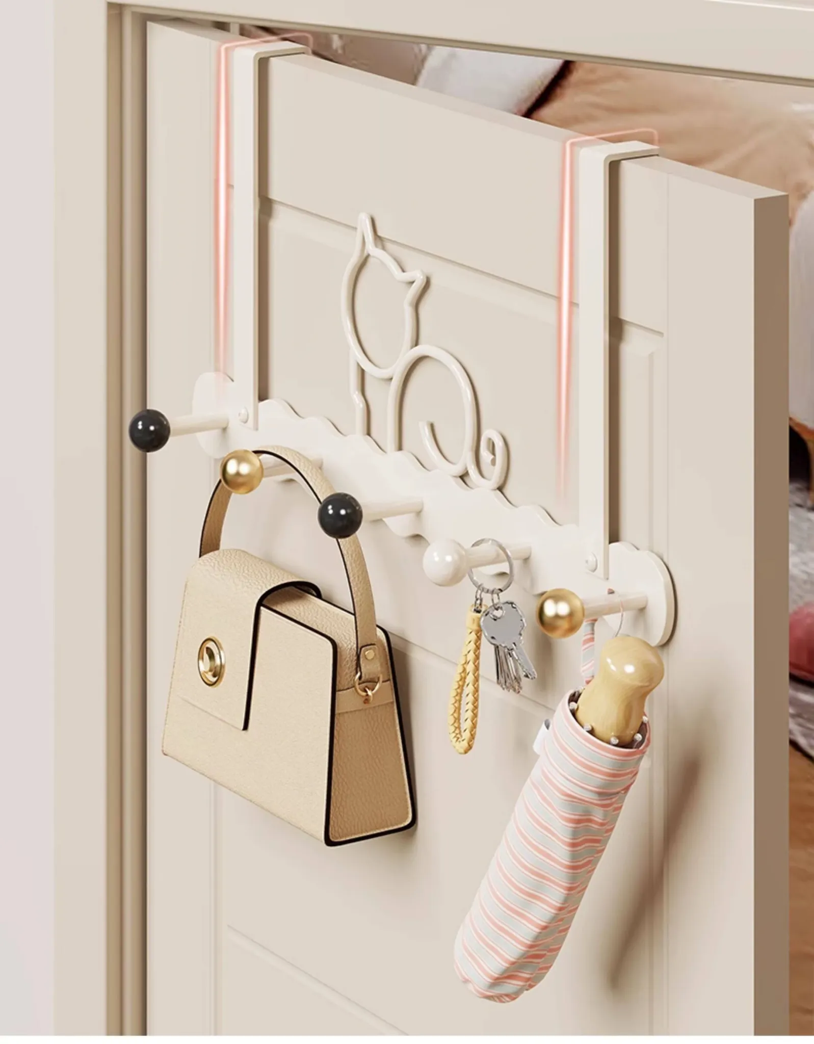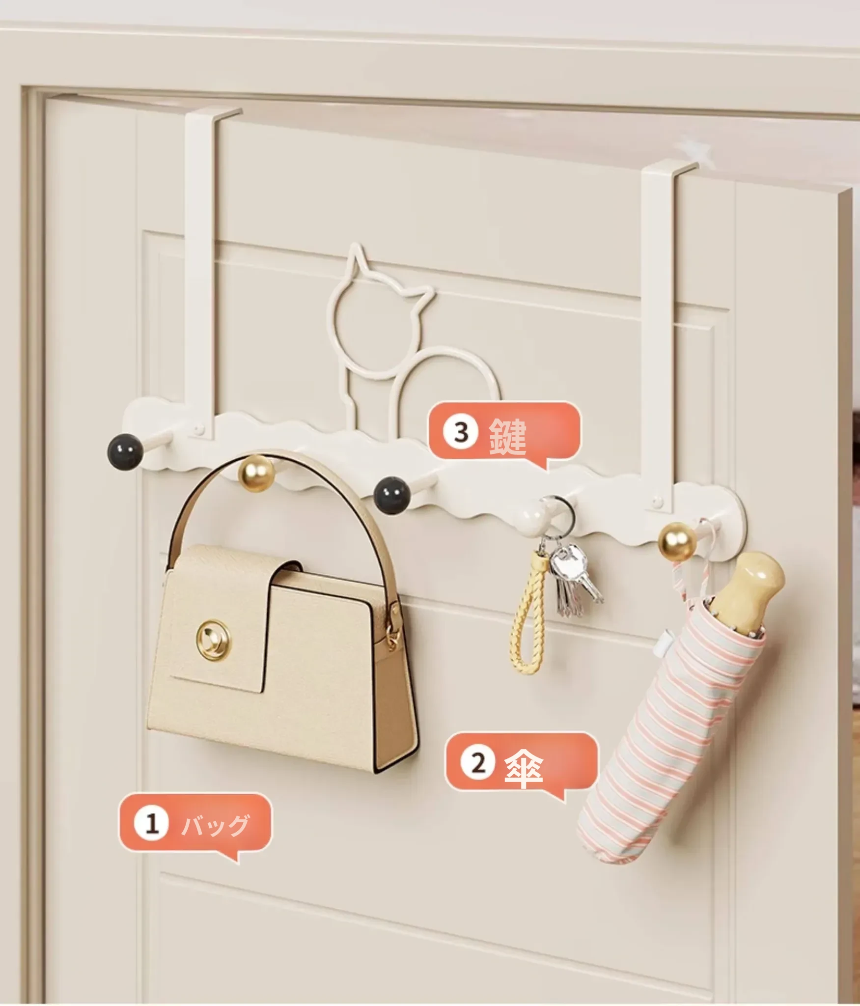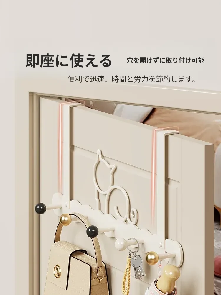 ドア用フック&ウォールシェルフ - 穴あけ不要の収納マジック!寝室やキッチンに最適な強力無痕コートフックで、スッキリとした空間を実現。あなたの暮らしをもっと便利に!