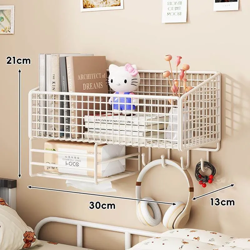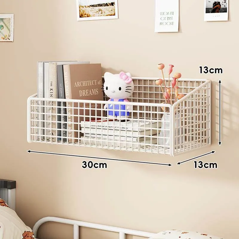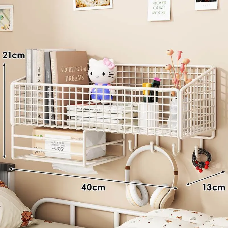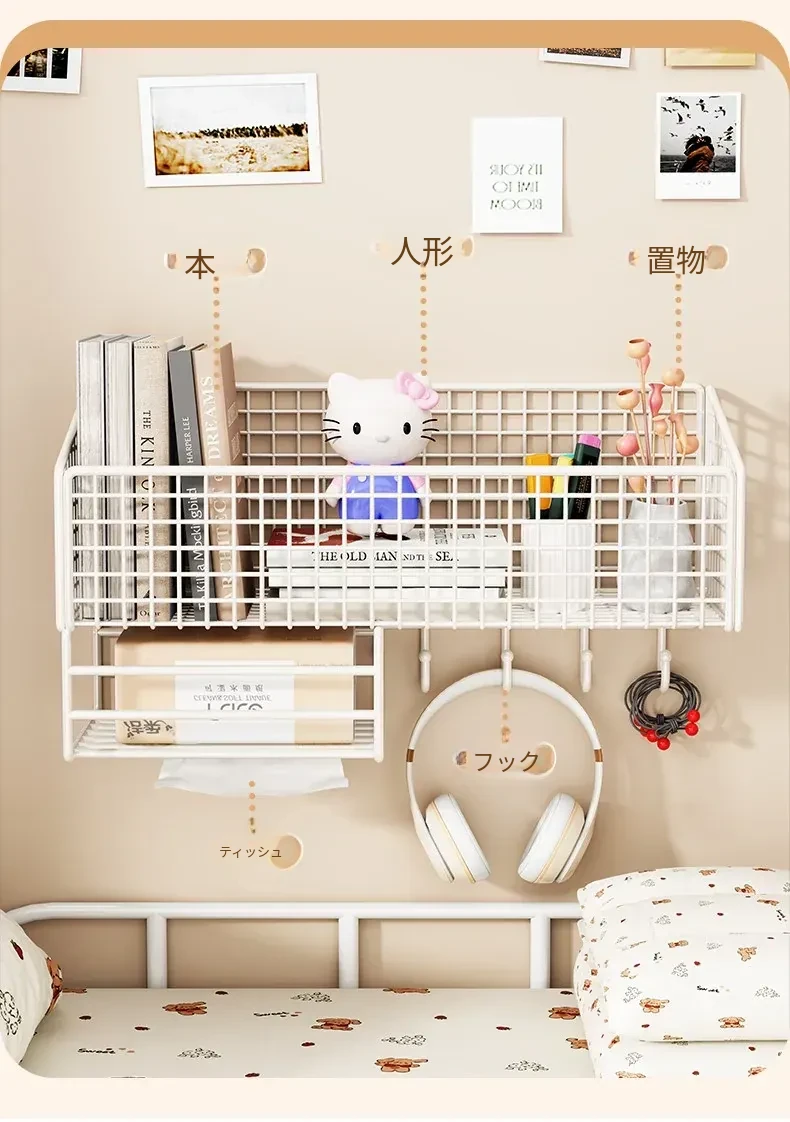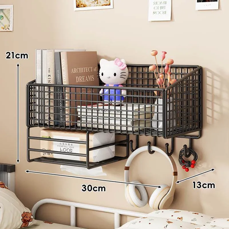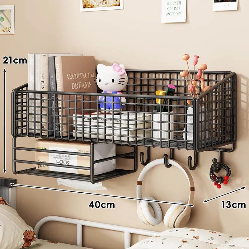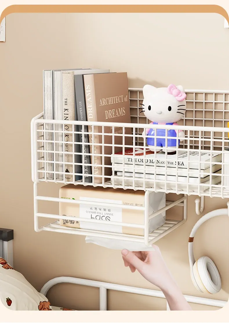 大学生のための宿舎用壁掛け収納ラック!穴を開けずに簡単取り付け、ベッドサイドや壁面にぴったりフィット。おしゃれで便利な収納バスケットで、寝室をスッキリ整理整頓!