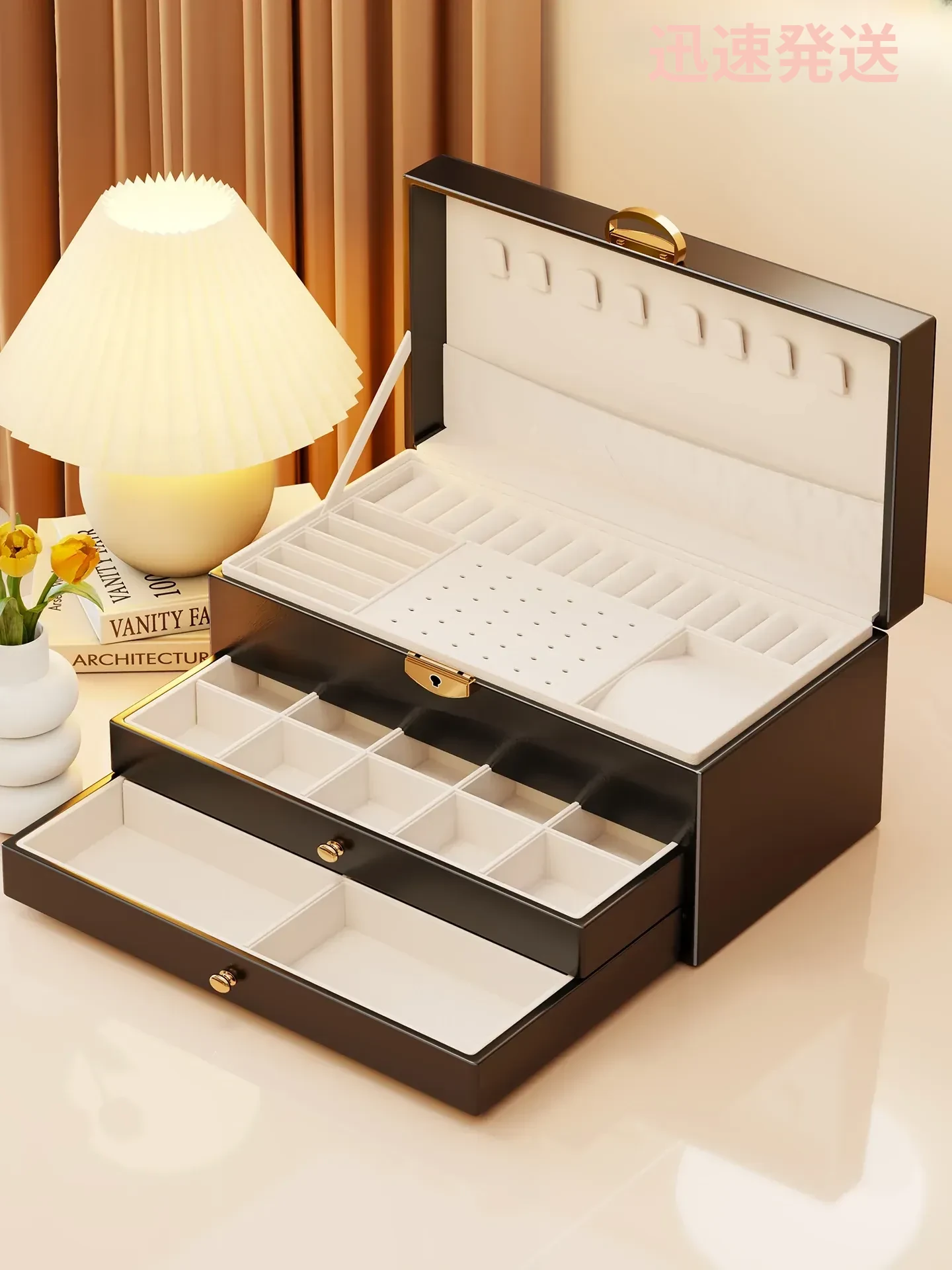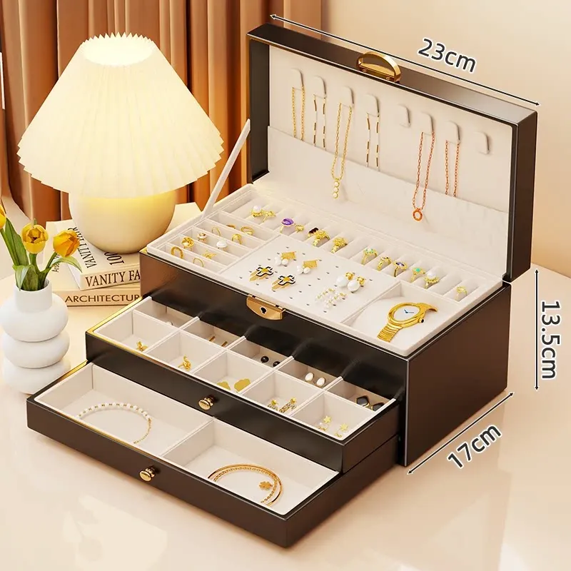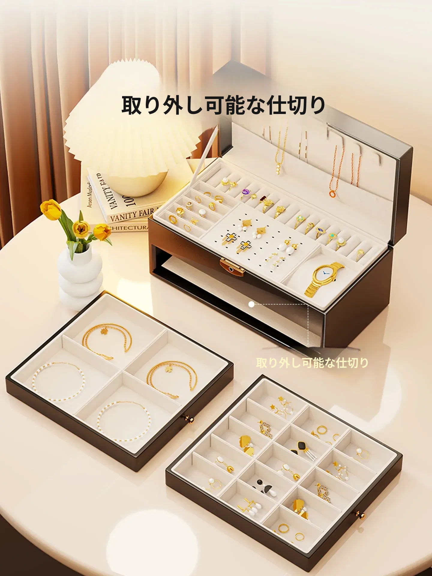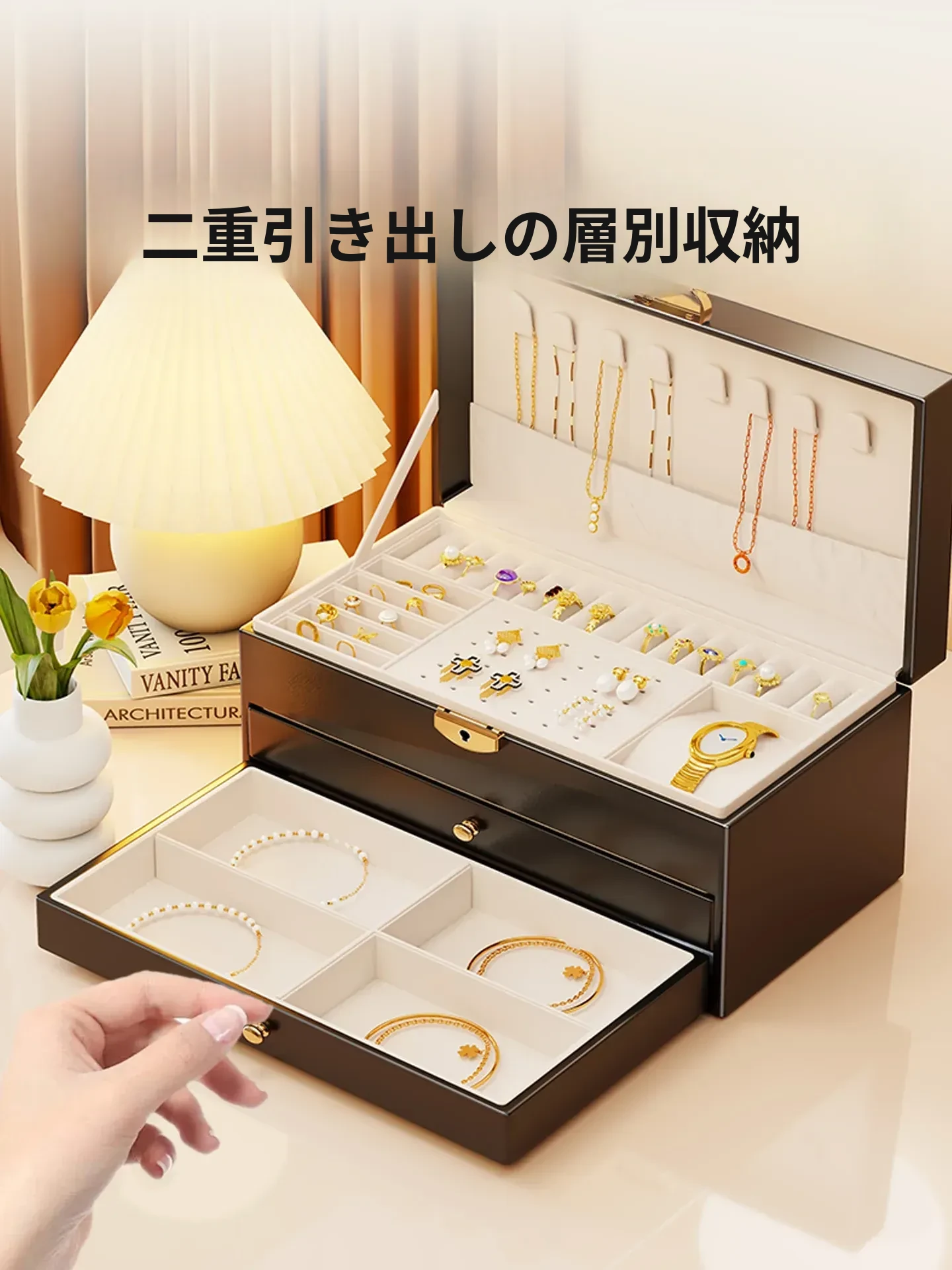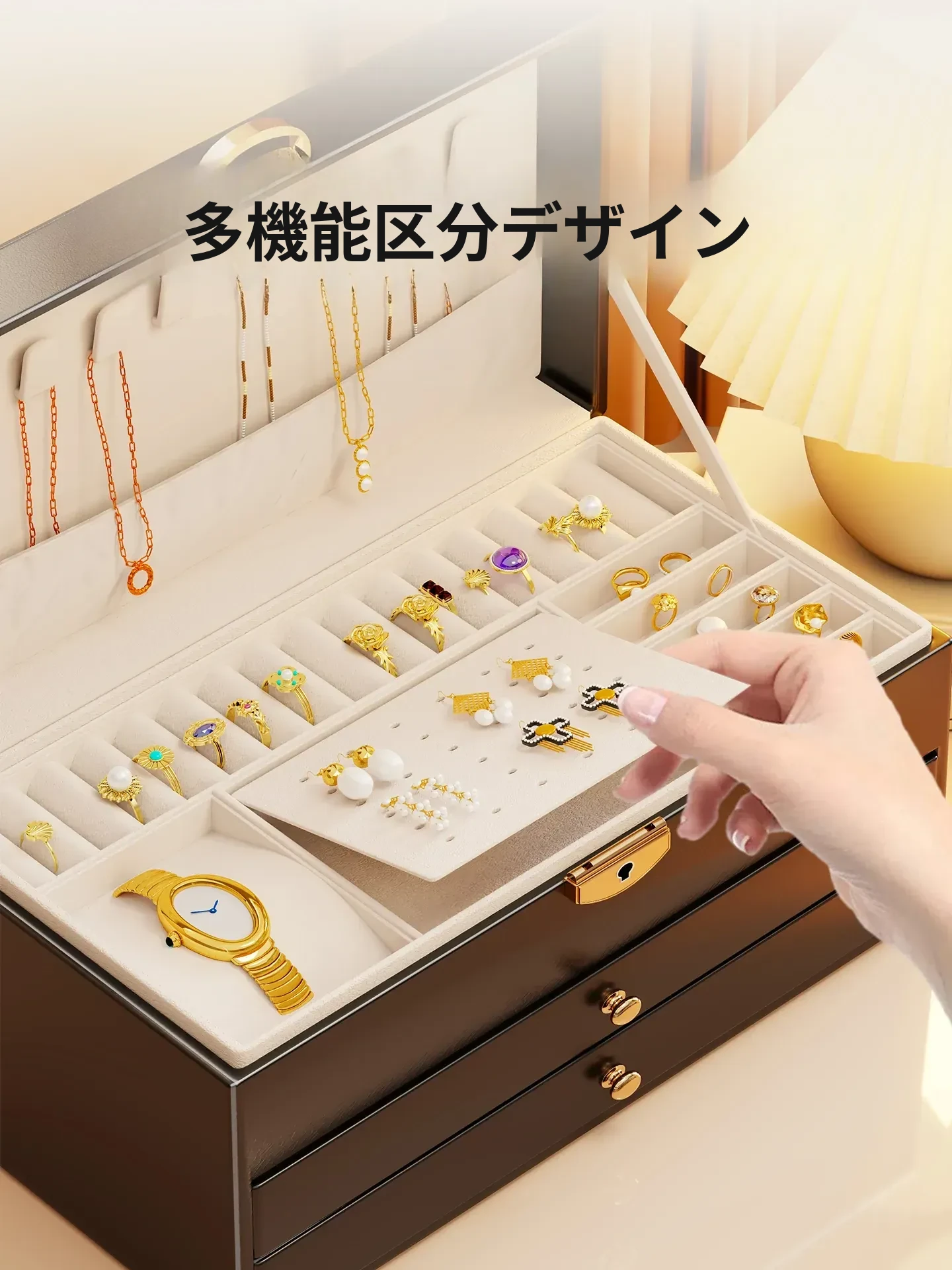 豪華なジュエリーボックス - デスクトップ用ゴールドアクセサリー収納ケース、繊細なイヤリングやネックレス、リングを整理するための高級ディスプレイラック!美しく整頓された空間を手に入れましょう!