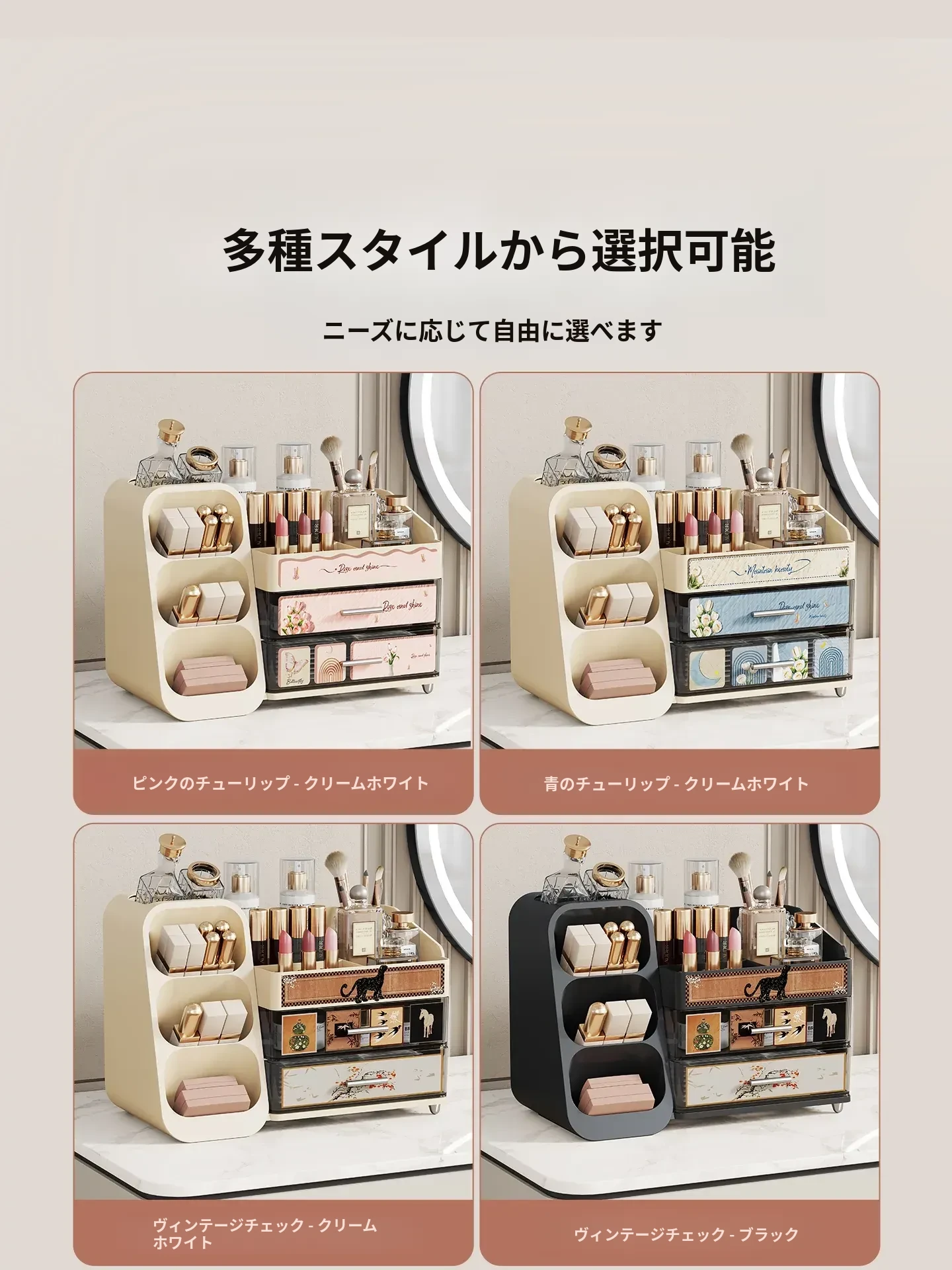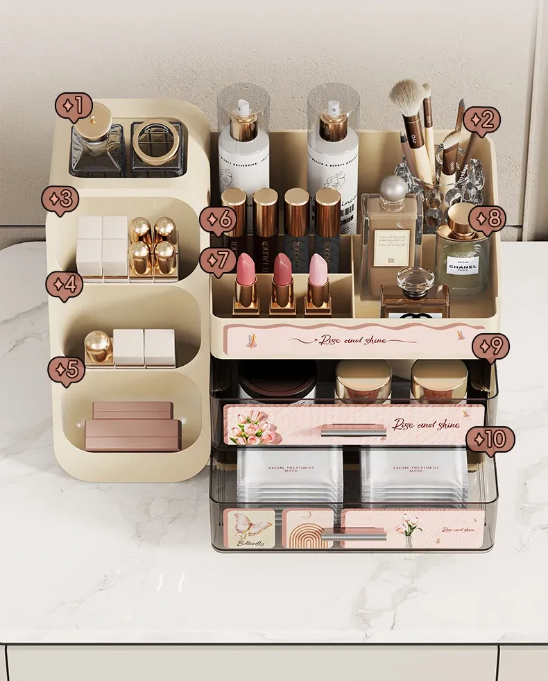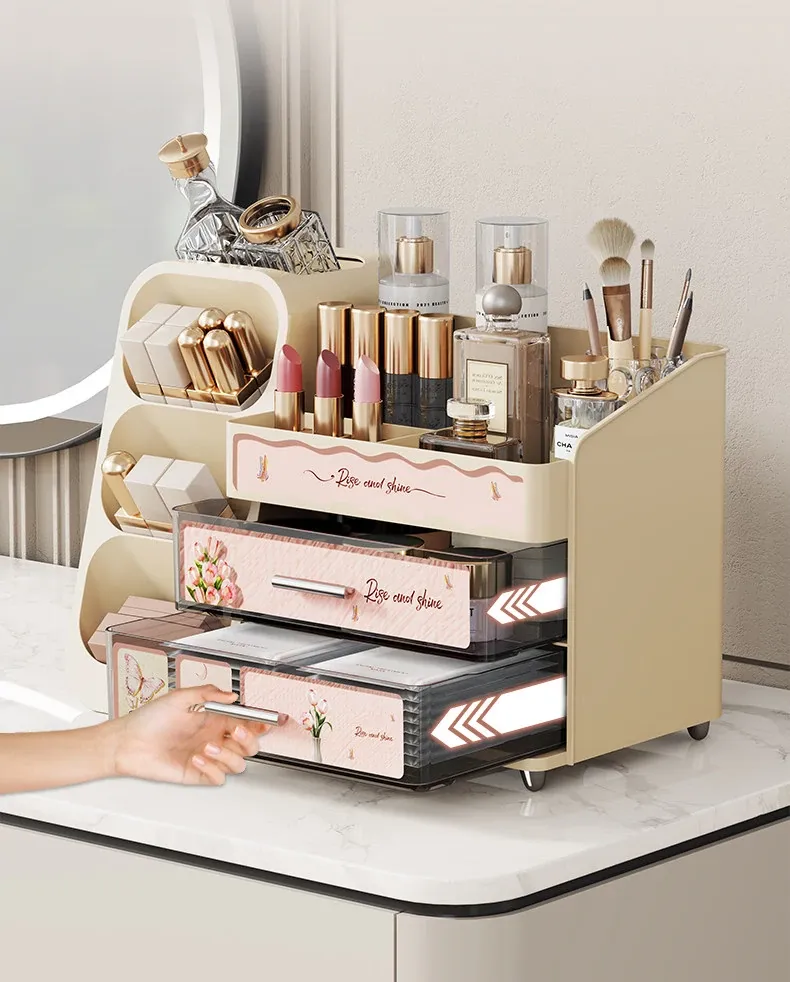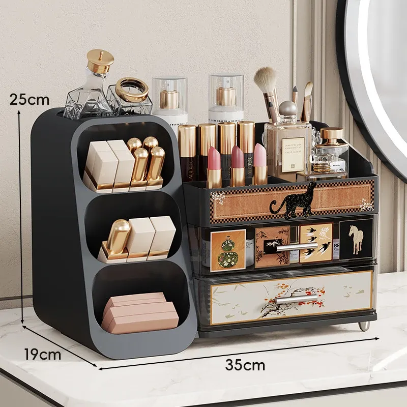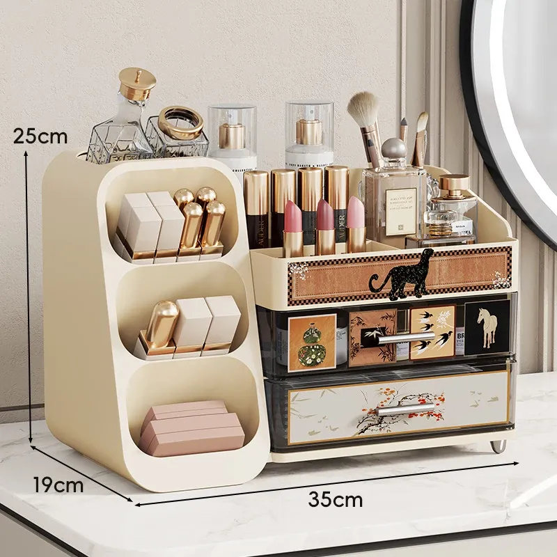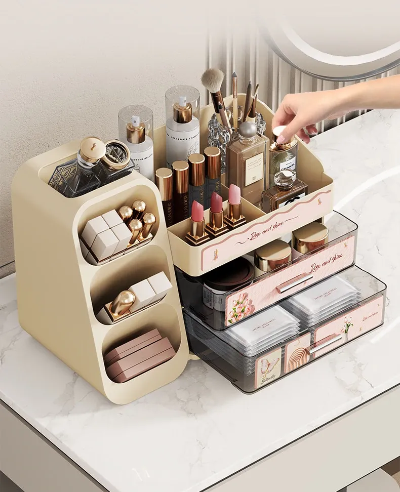 高級感溢れる大容量化粧品収納ボックス - メイク台の引き出しにぴったり!リップやスキンケアをスマートに整理できるスタイリッシュな収納ラック。あなたのビューティー空間を華やかに演出します!