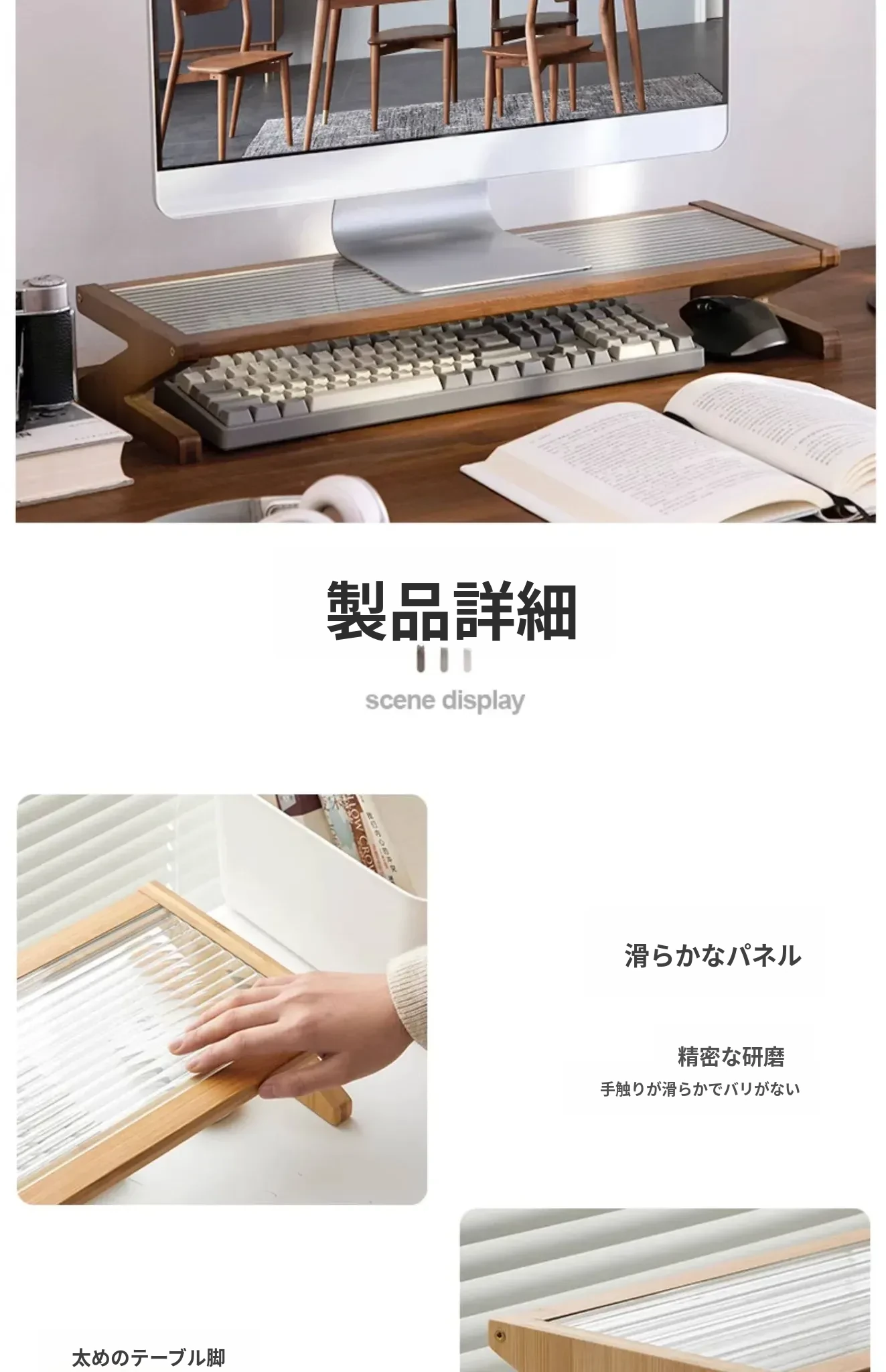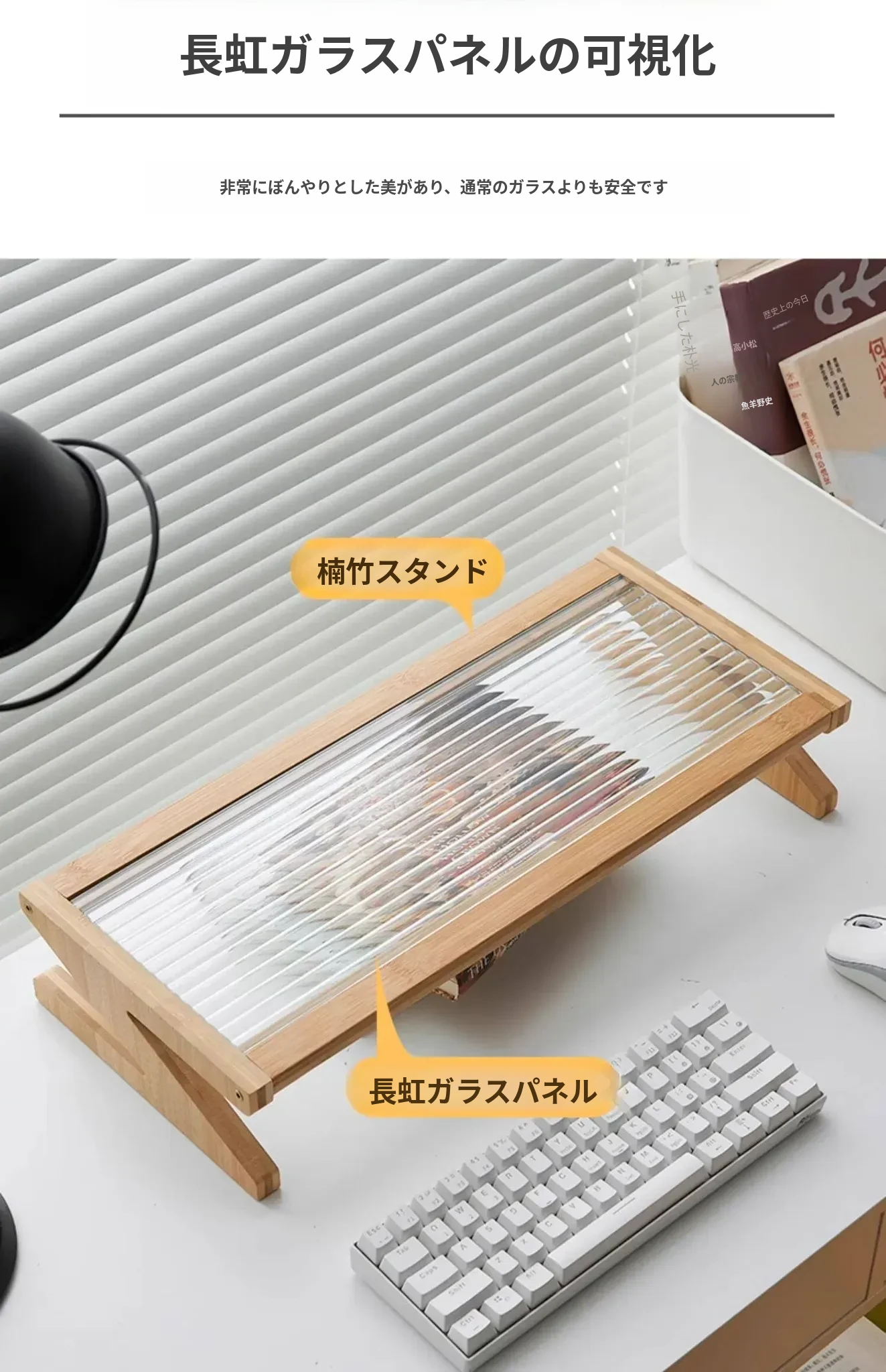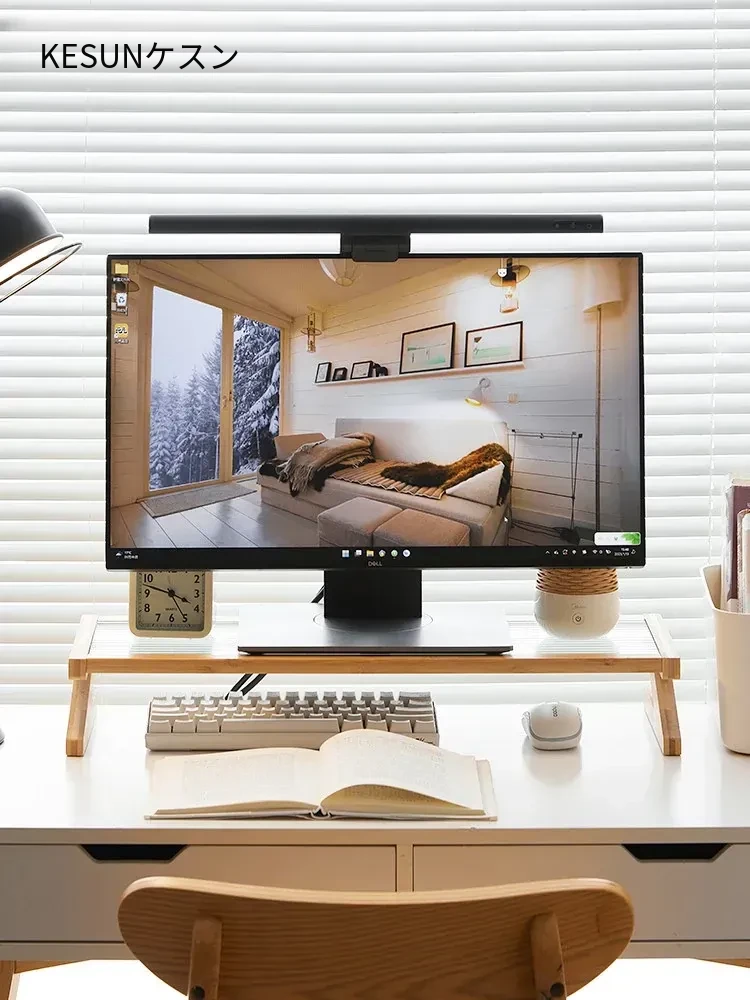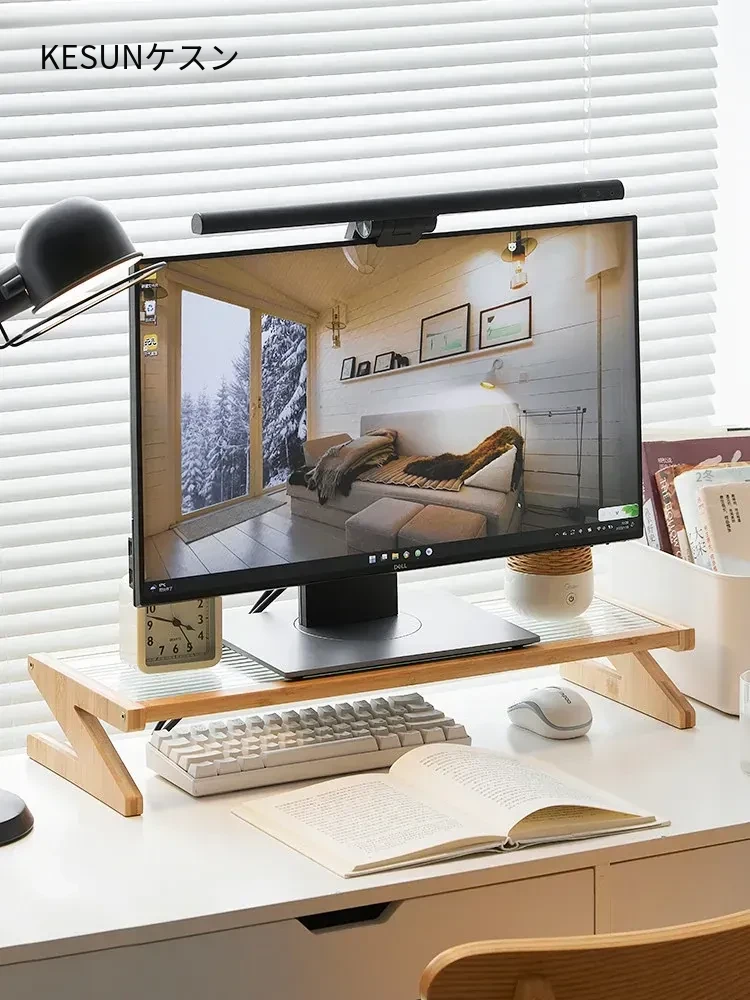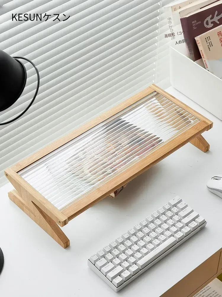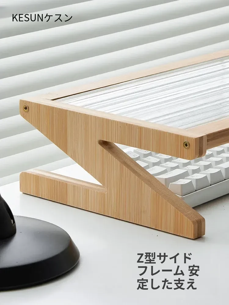 パソコンモニター昇降スタンド|デスクトップ用長虹ガラス置物棚|快適な作業環境を提供!あなたのデスクをスタイリッシュに演出し、姿勢改善にも役立つ便利アイテム!