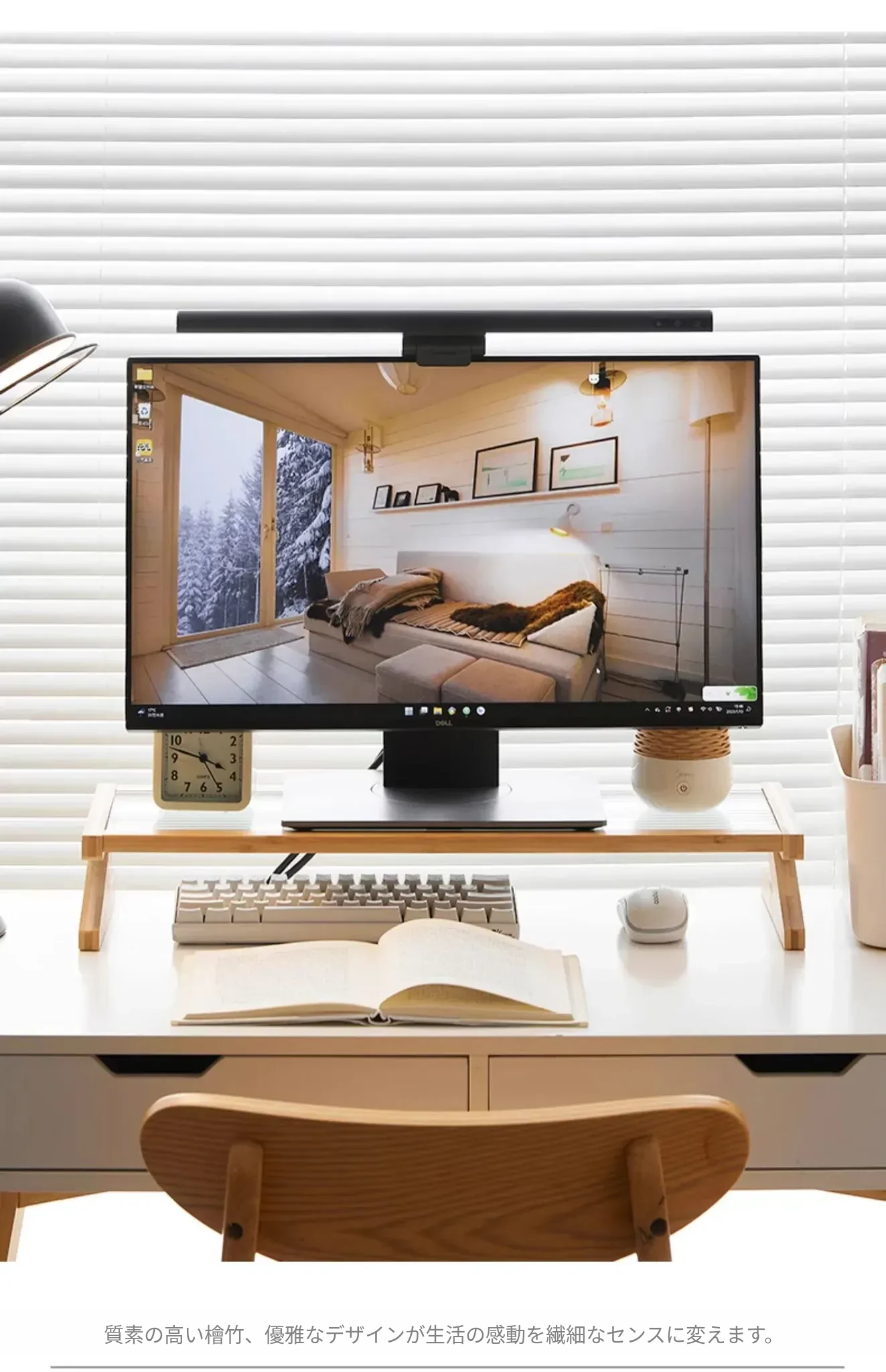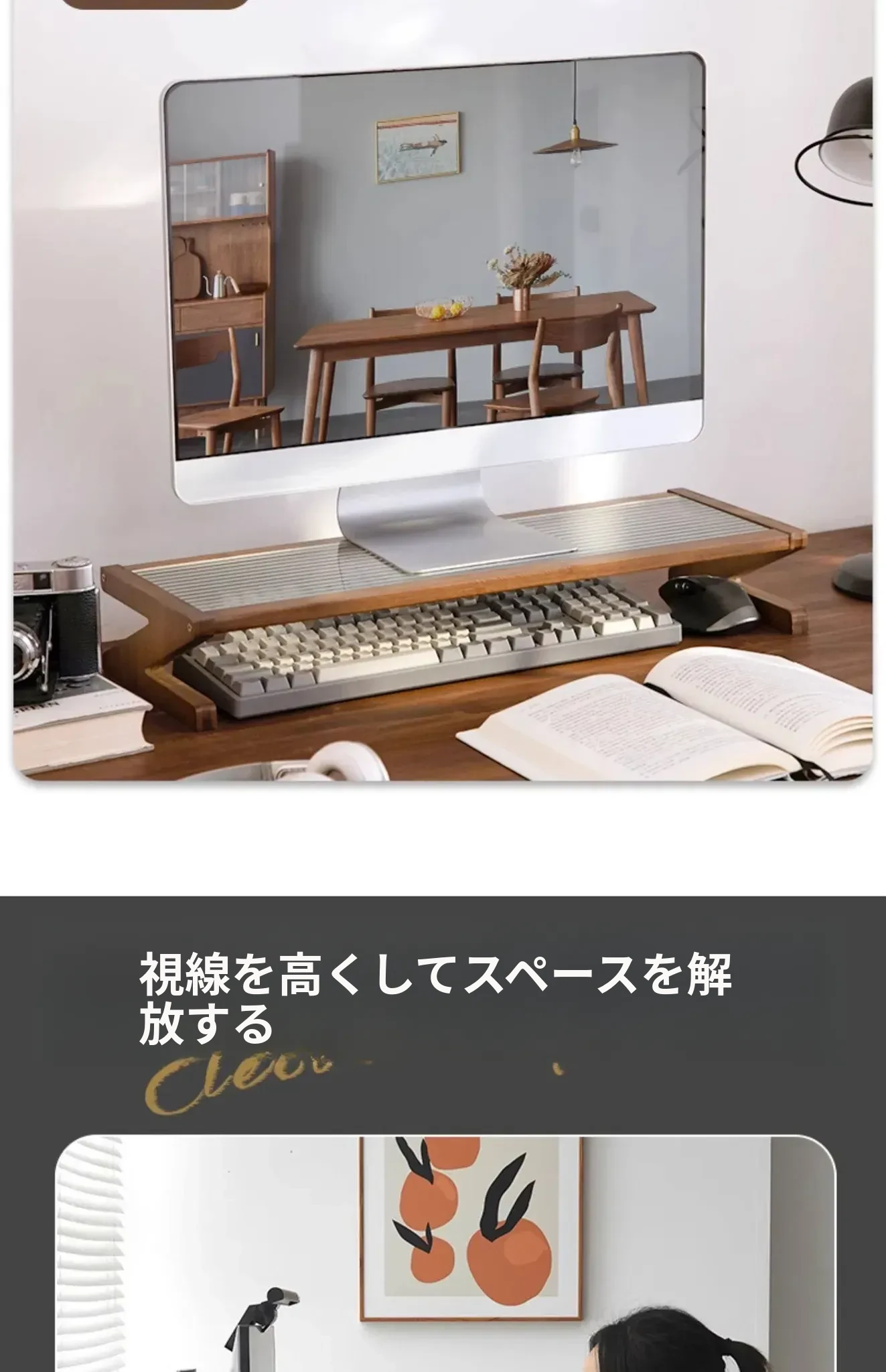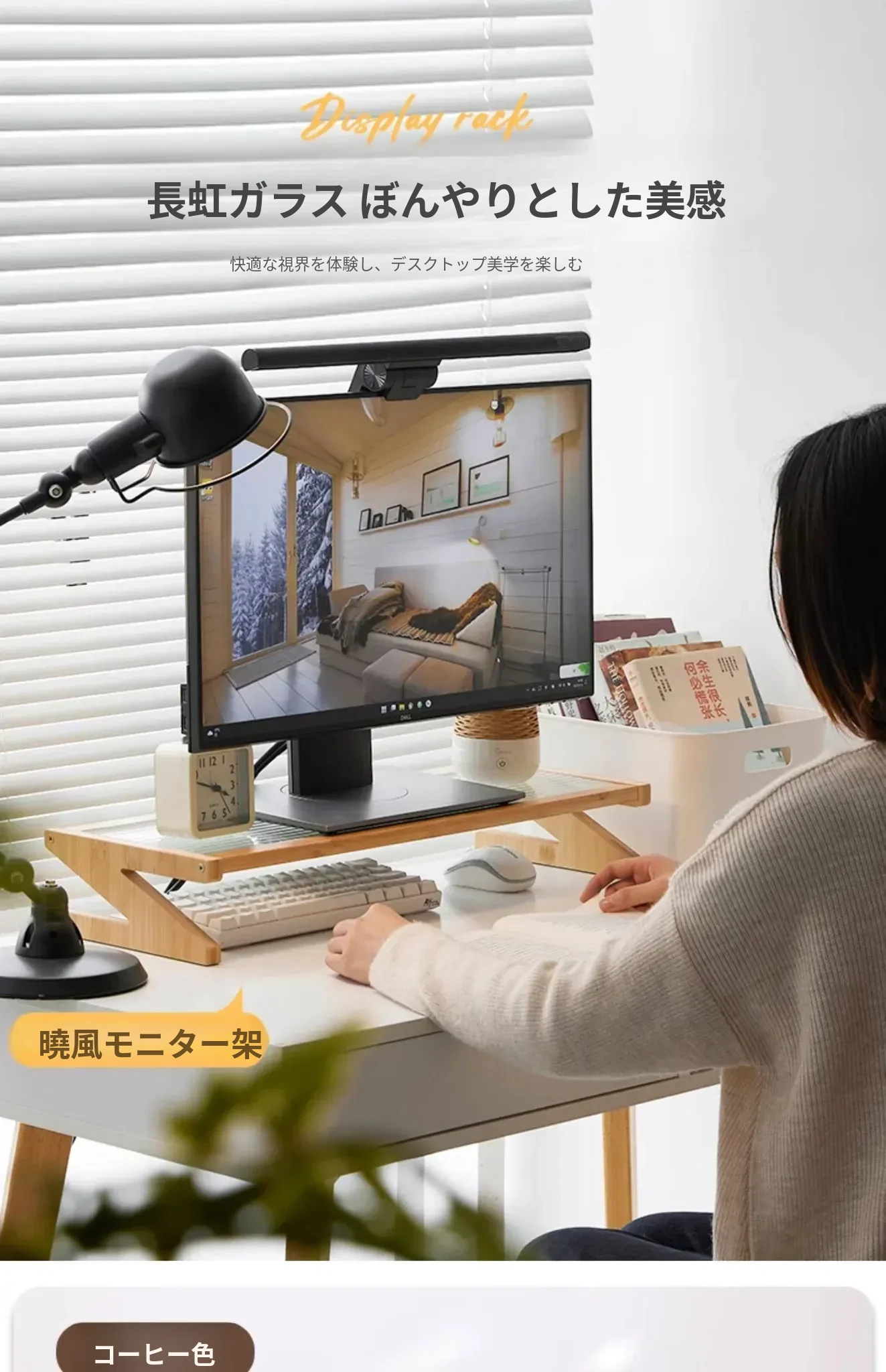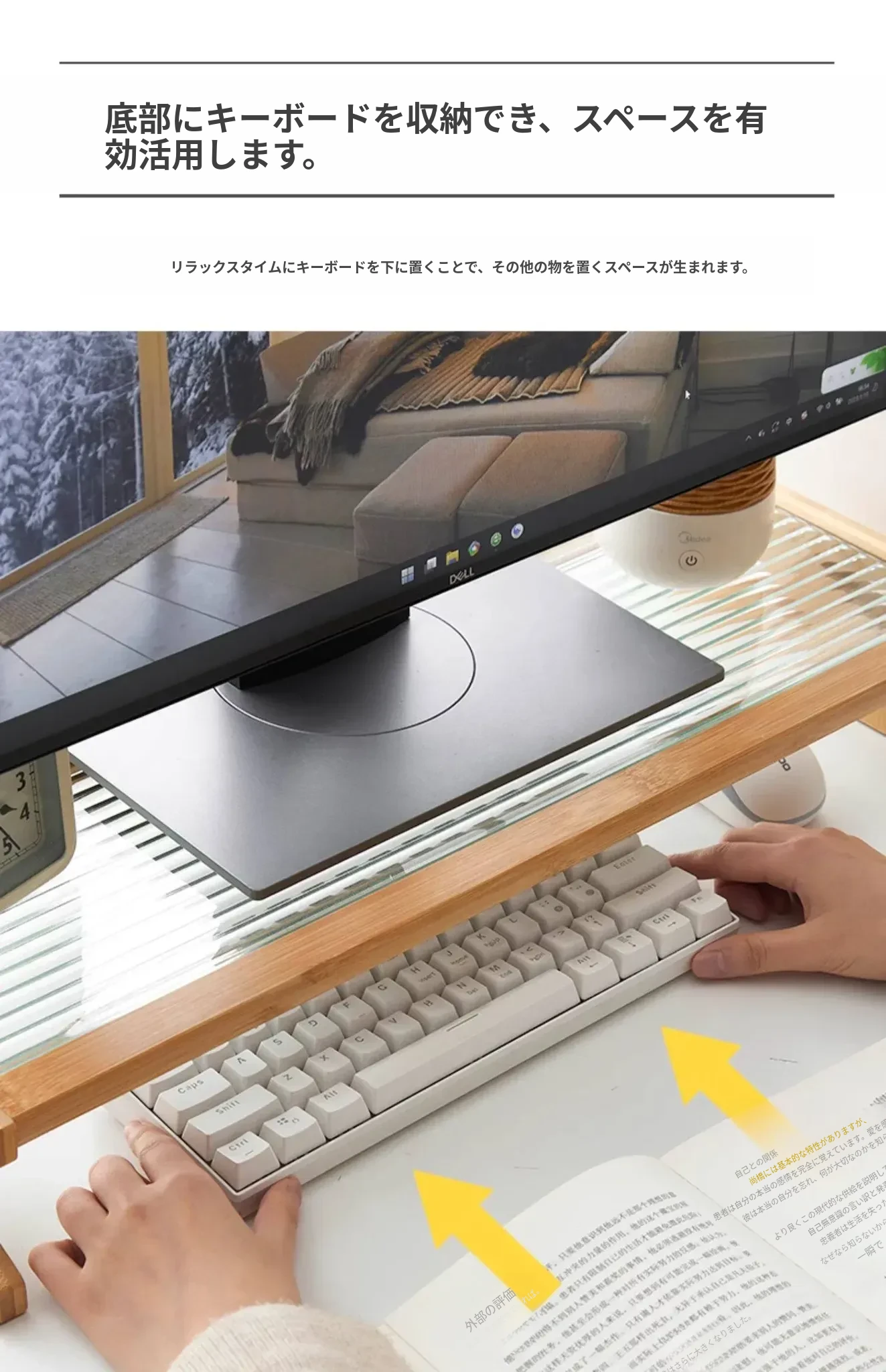 パソコンモニター昇降スタンド|デスクトップ用長虹ガラス置物棚|快適な作業環境を提供!あなたのデスクをスタイリッシュに演出し、姿勢改善にも役立つ便利アイテム!