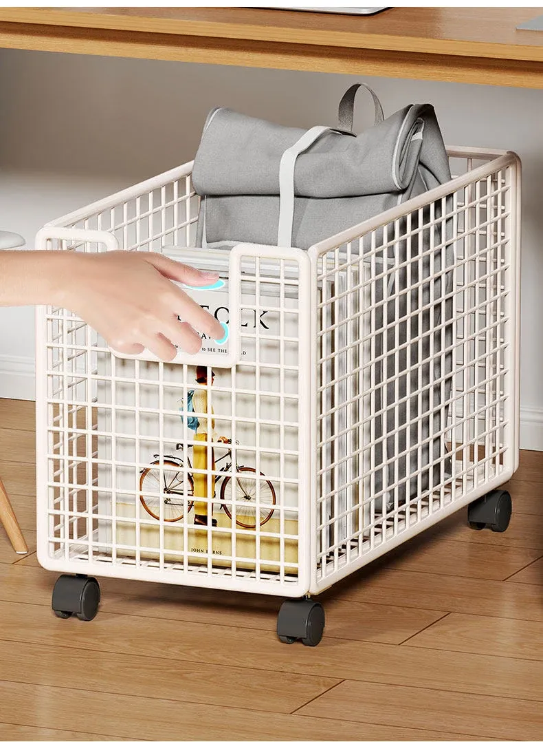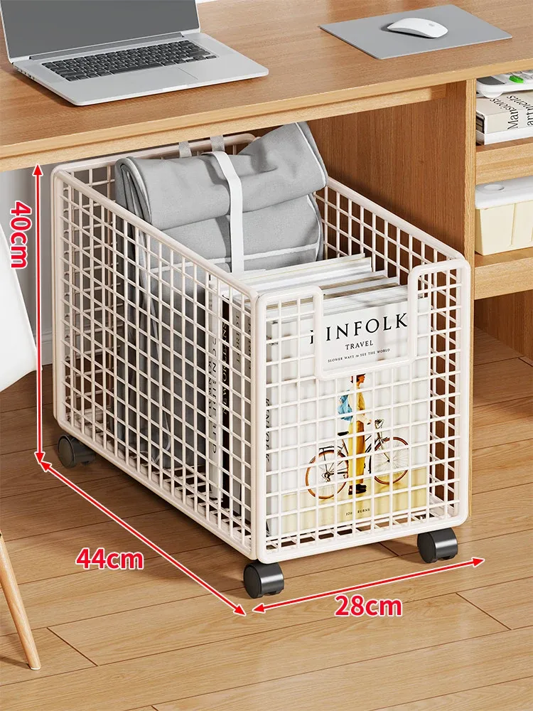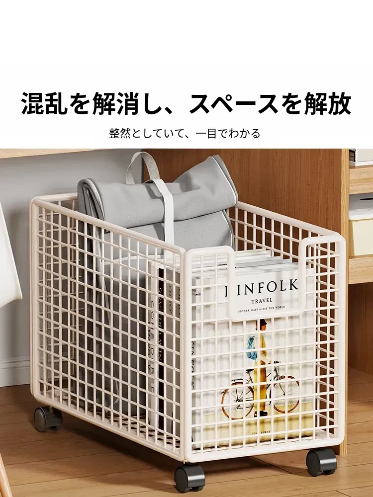 折りたたみ式書類収納ラック - デスク下に最適、キャスター付きで移動もラクラク!オフィスや作業スペースのバッグ整理に最適な書籍・バッグ収納スタンド。収納力抜群で、スッキリとした空間を実現!