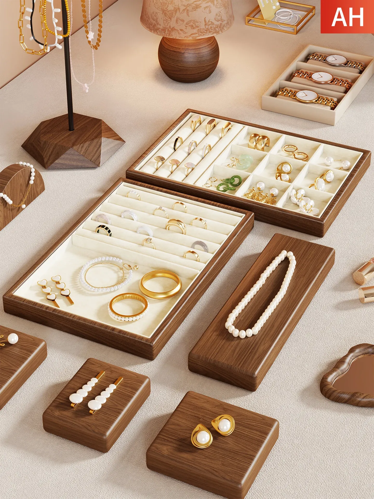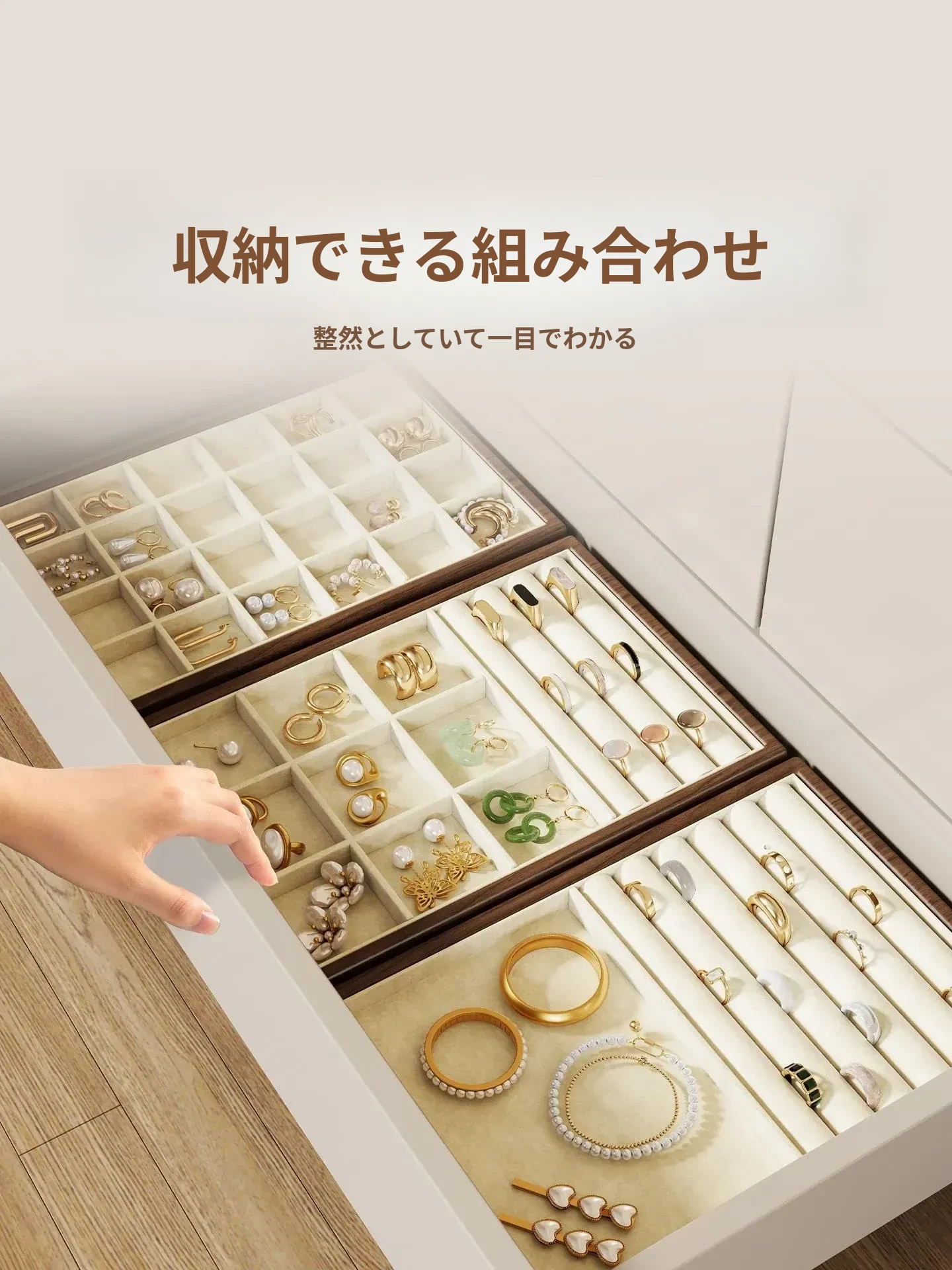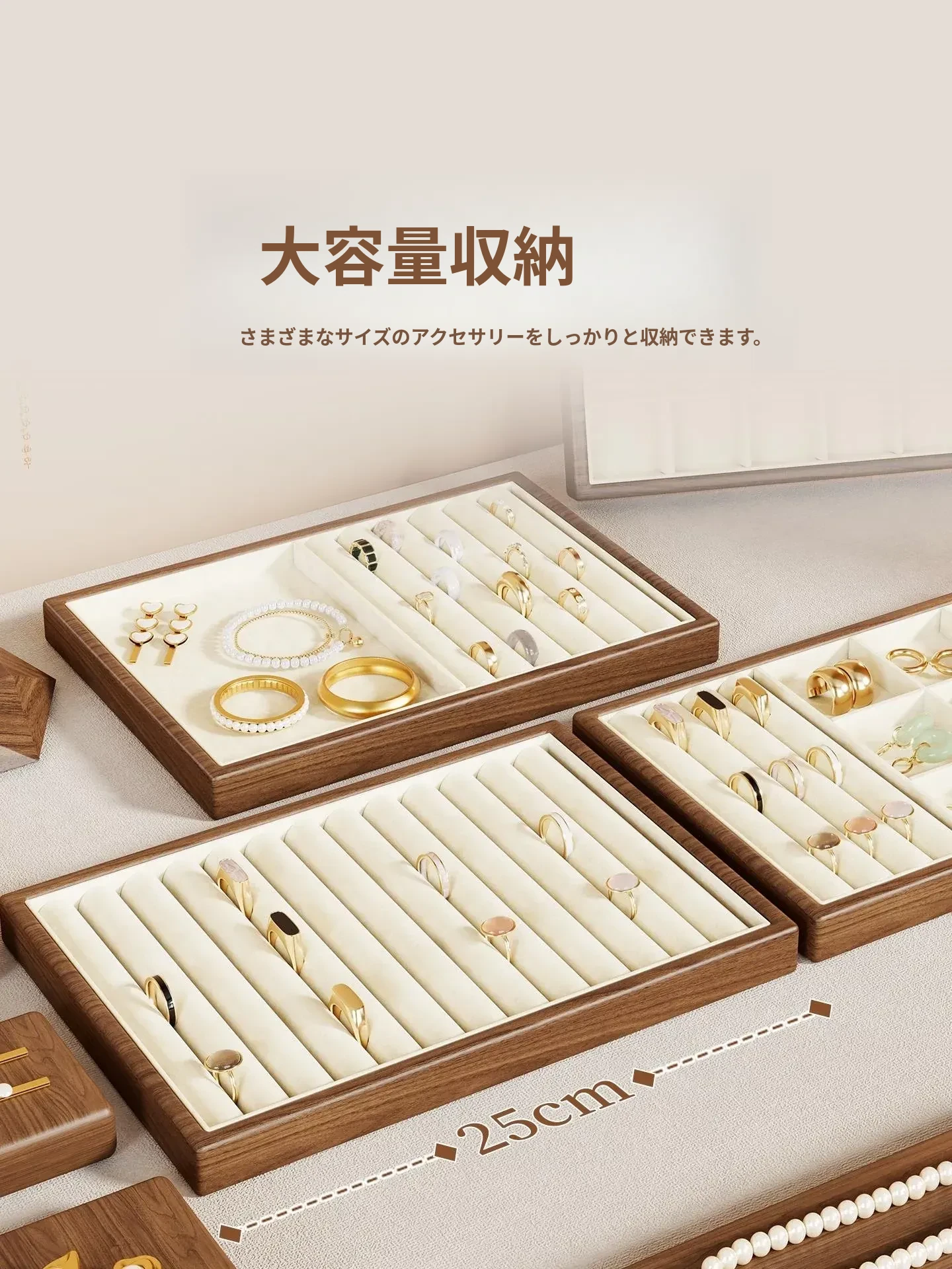 ジュエリーボックス 引き出し式リング ネックレス イヤリング トレー 収納仕切り 便利なアクセサリーラック ブレスレットとイヤリングの展示に最適!おしゃれで整理整頓も簡単!
