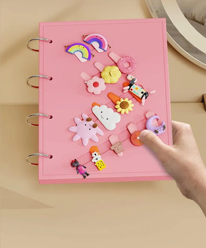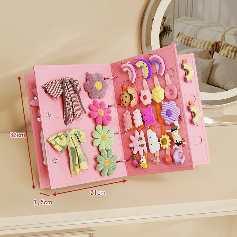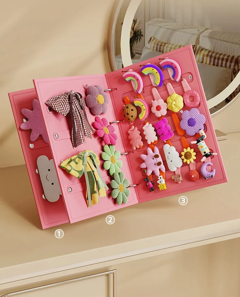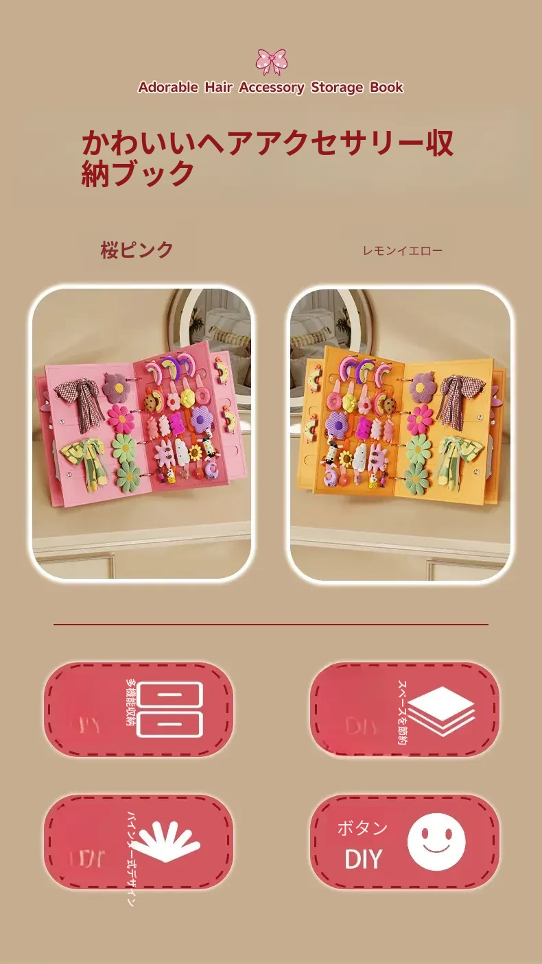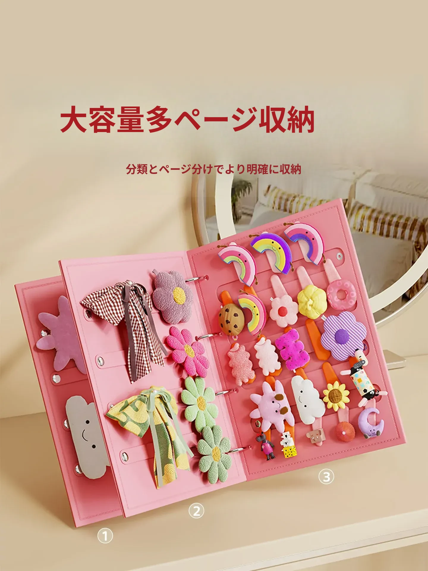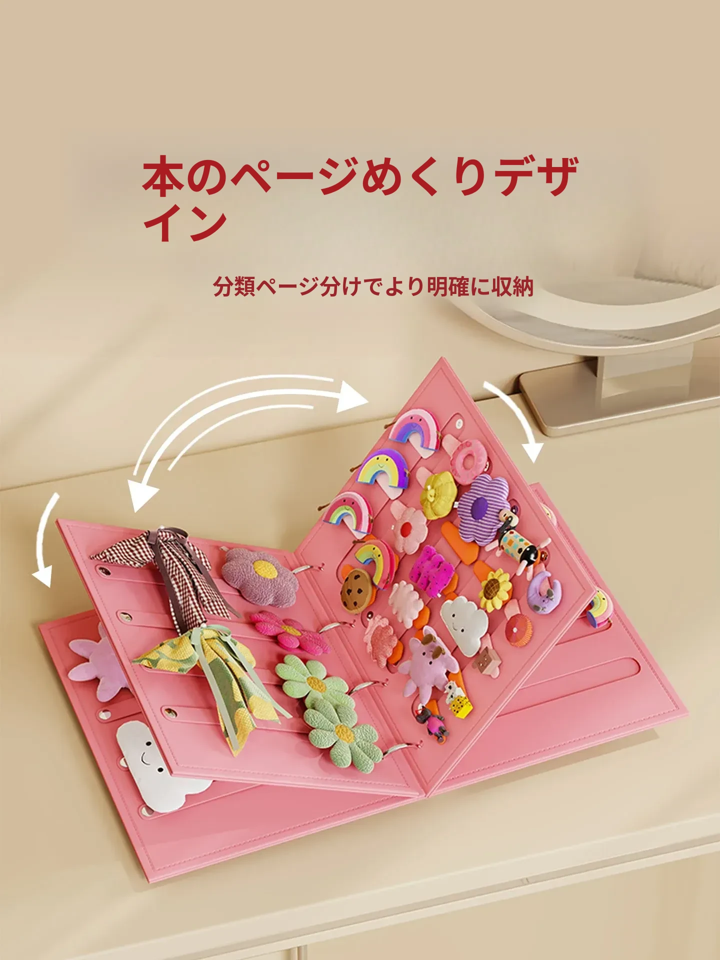 子供用ヘアアクセサリー収納ブック - 折りたたみ式で可愛くディスプレイできるヘアクリップ&ゴムバンド整理ボックス!おしゃれなジュエリーボックスとしても大活躍!