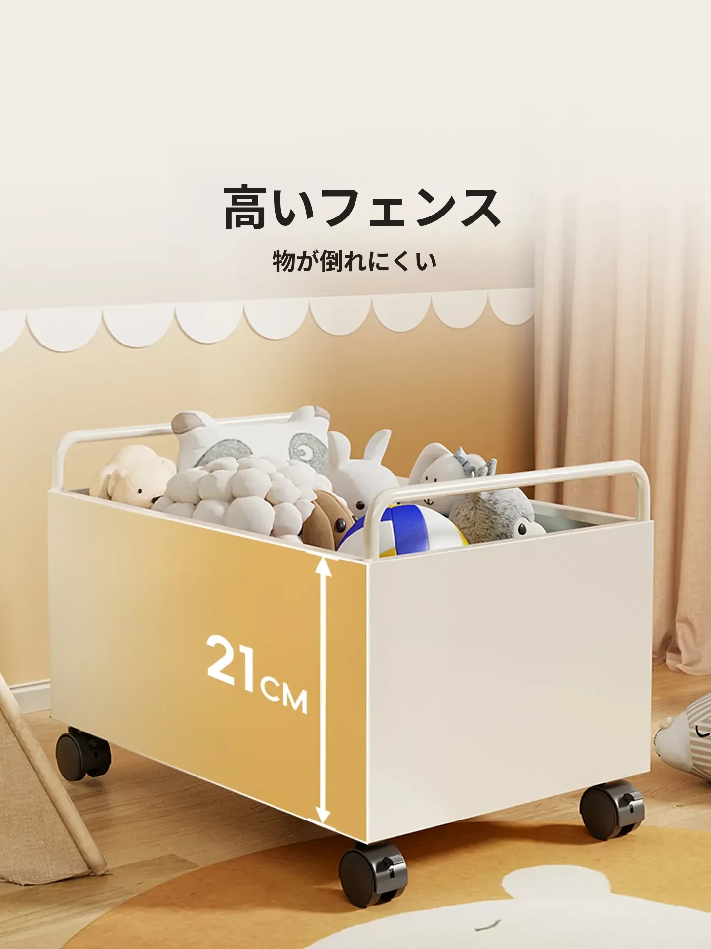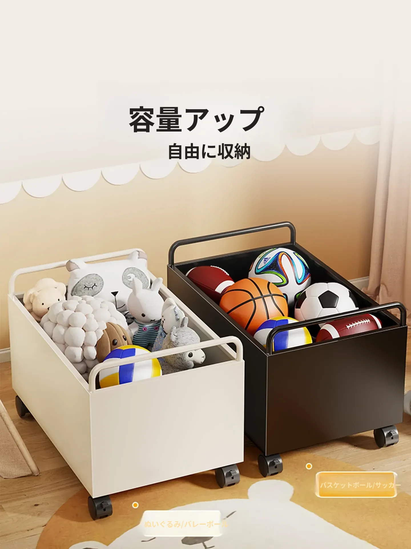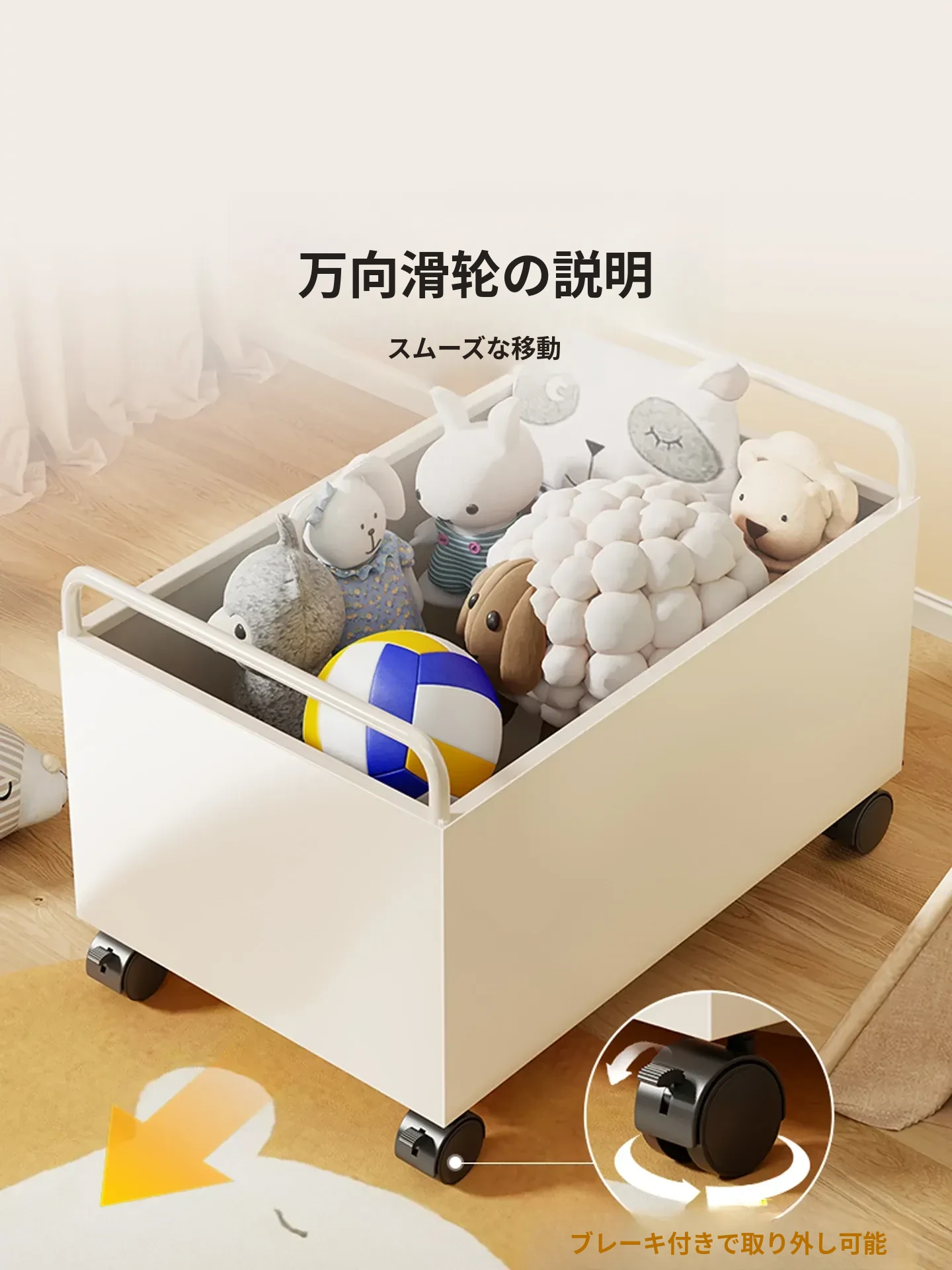 おもちゃ収納ラック - 大容量で可愛らしいぬいぐるみや本をすっきり整理!デスクサイドにぴったりの便利な移動式書棚。お子様のお部屋をもっと楽しく!