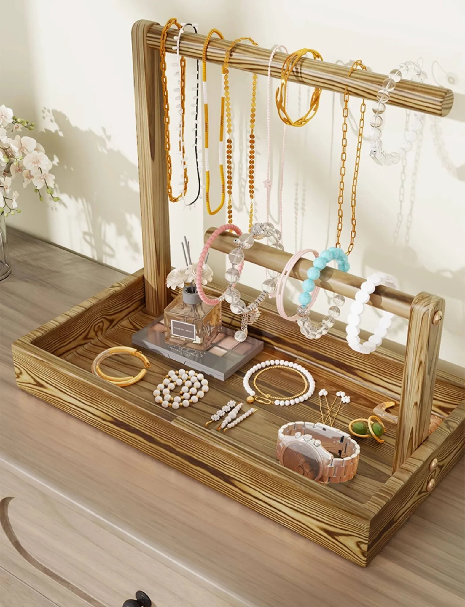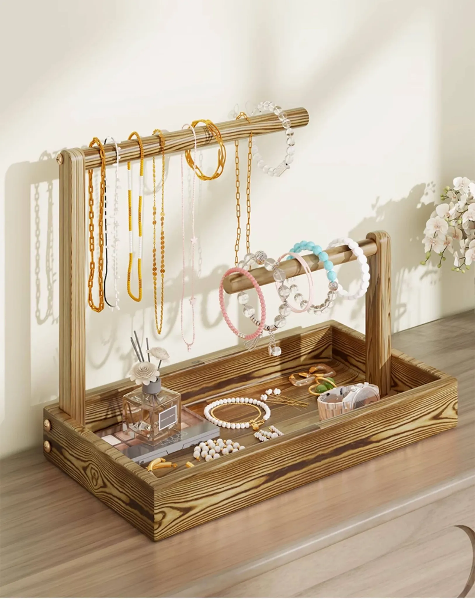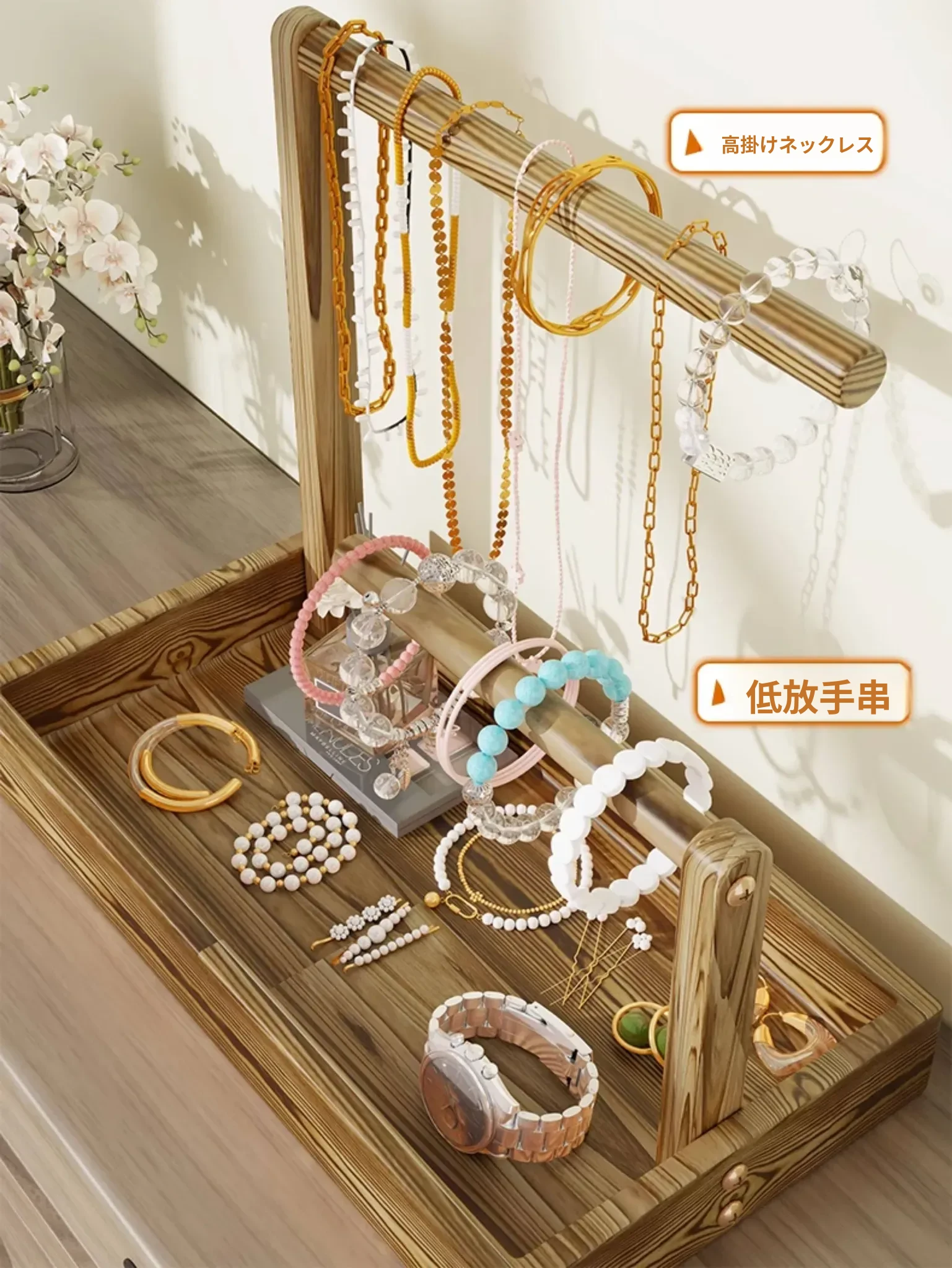 高級感溢れる精緻な木製ジュエリー収納ボックス - ブレスレット、ネックレス、念珠、アクセサリーを美しくディスプレイ!おしゃれなインテリアにもぴったりな逸品です。