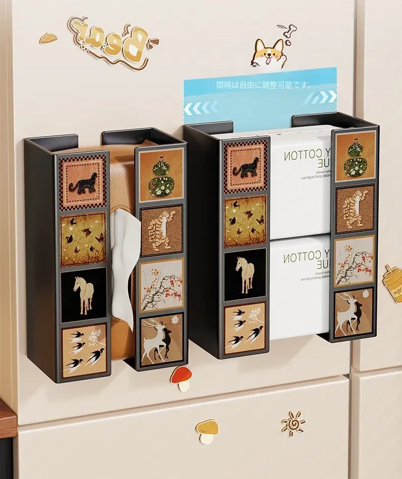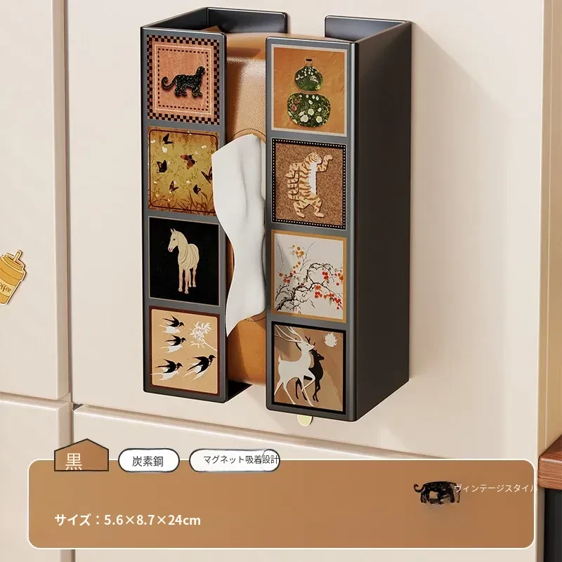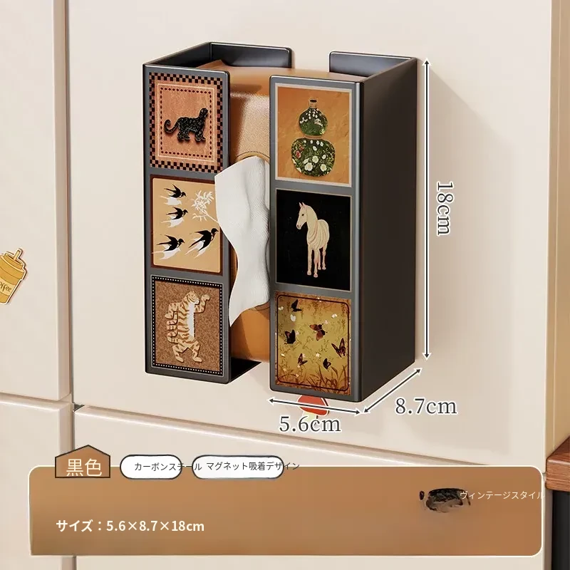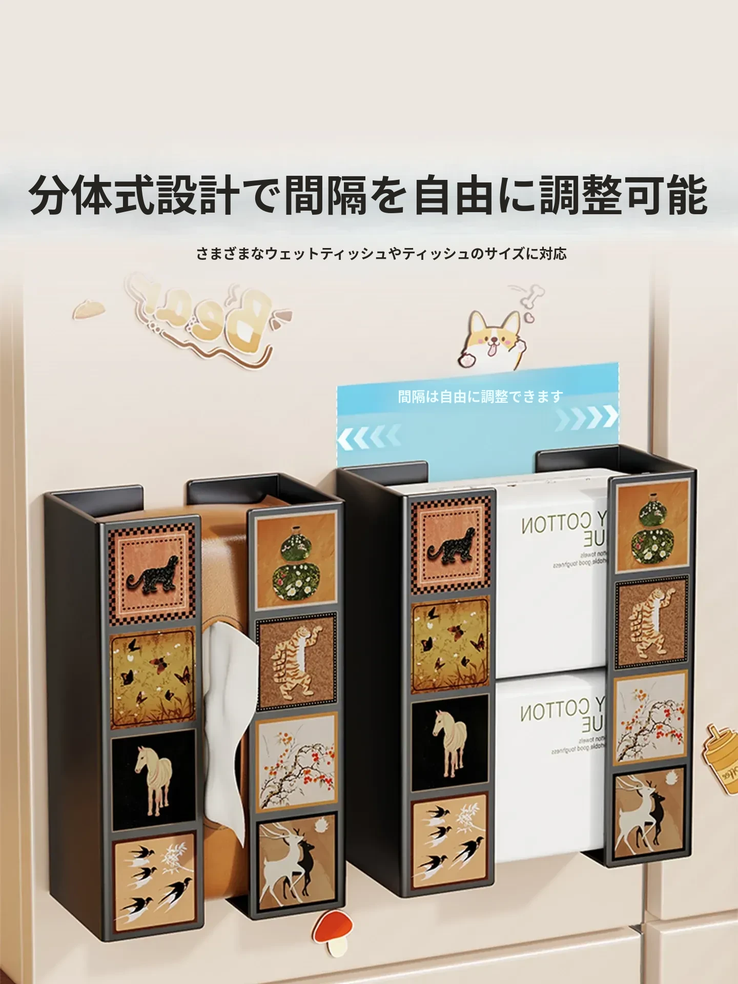 マグネット式ティッシュボックス キッチン用ウェットティッシュホルダー 壁掛けタイプ 冷蔵庫サイド取り付け 折りたたみ分離型ティッシュラックで、便利さとスタイリッシュなデザインを両立!