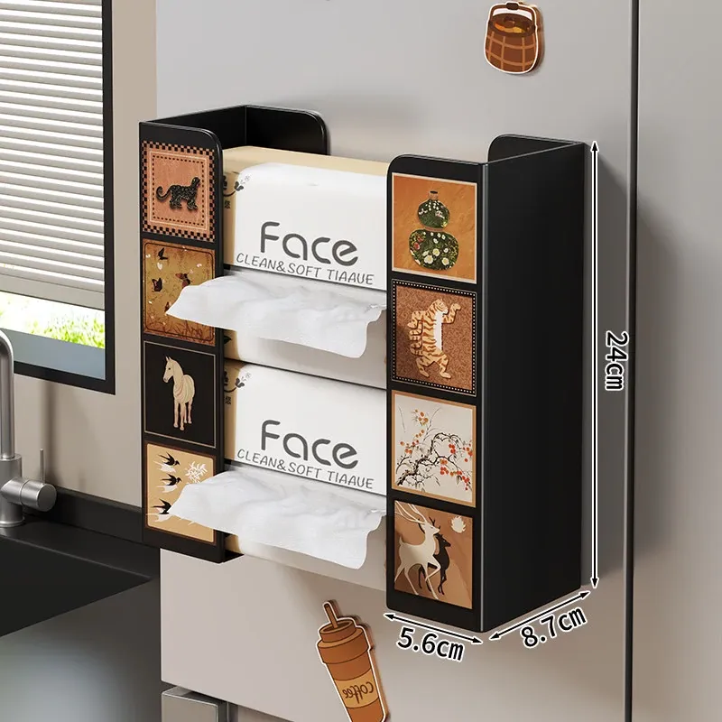 マグネット付きペーパータオルホルダー - 冷蔵庫やキッチンに最適!湿ったティッシュやペーパーをスマートに収納できる壁掛けタイプ。スペースを有効活用し、おしゃれで便利な収納ソリューションを実現!