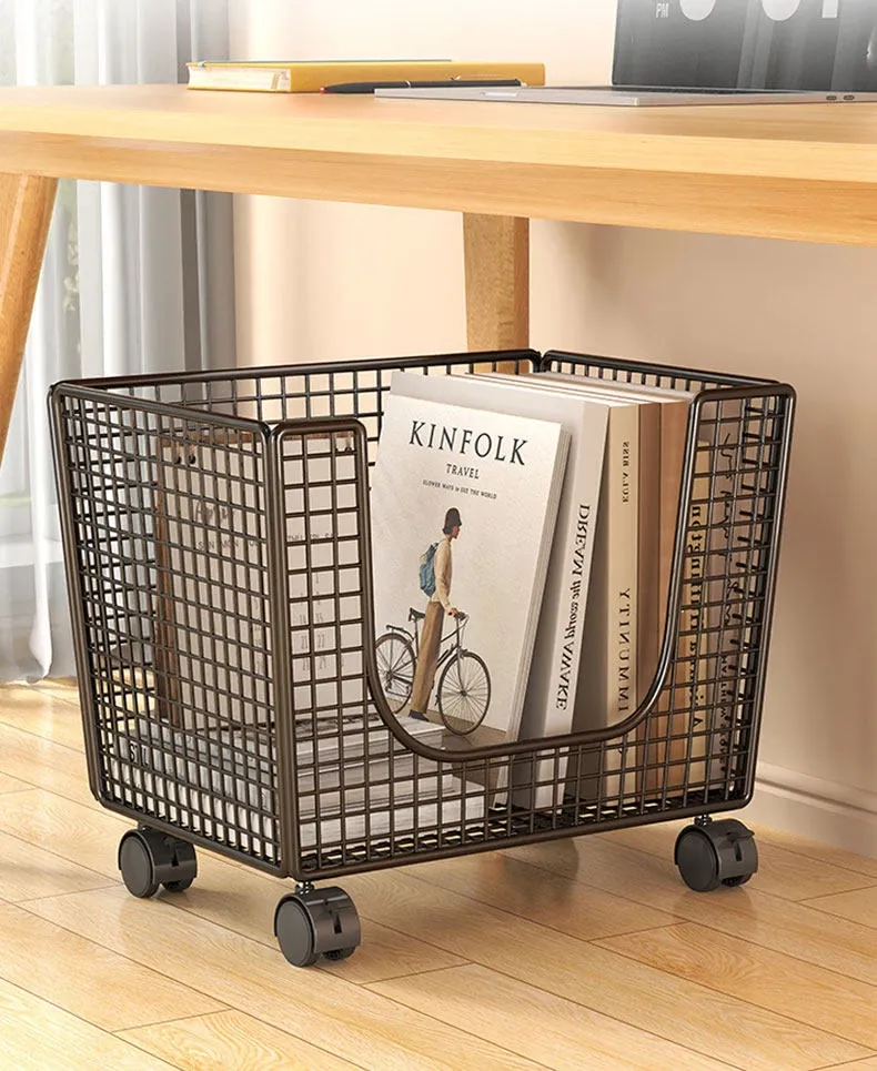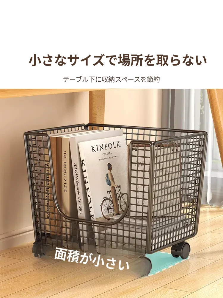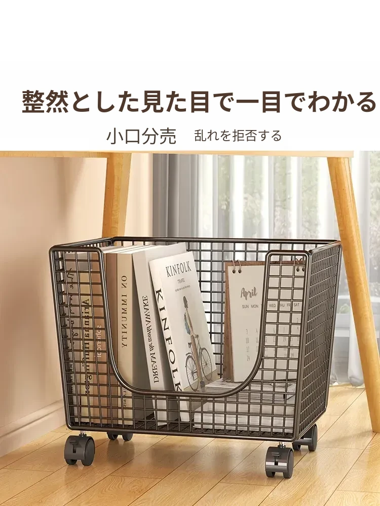 移動式ブックシェルフ - おしゃれな収納ボックス、キャスター付きで簡単に移動可能!学生や家庭に最適な書籍整理の必需品。スッキリ収納して、すぐに必要な本が取り出せる便利なアイテム!