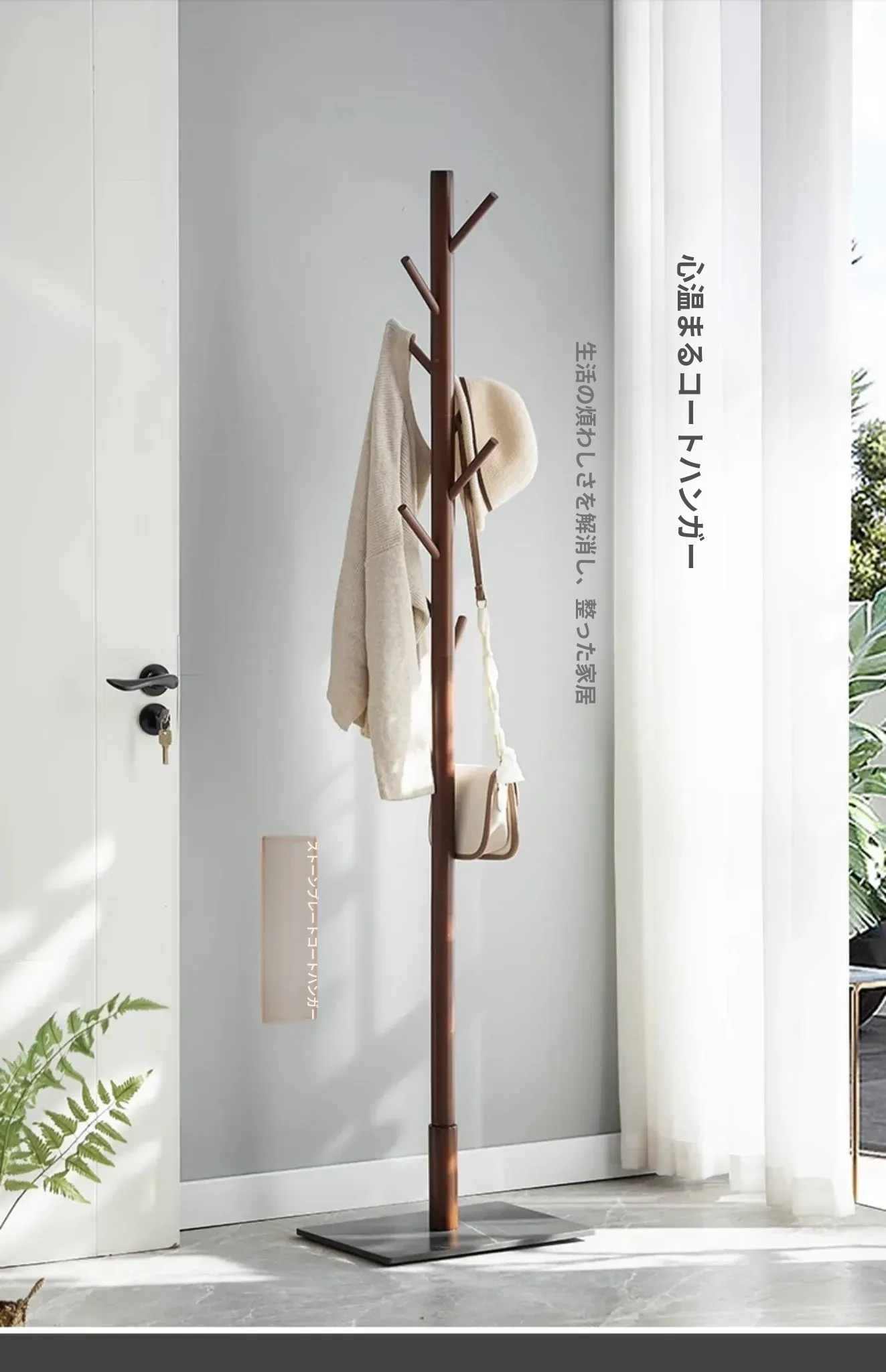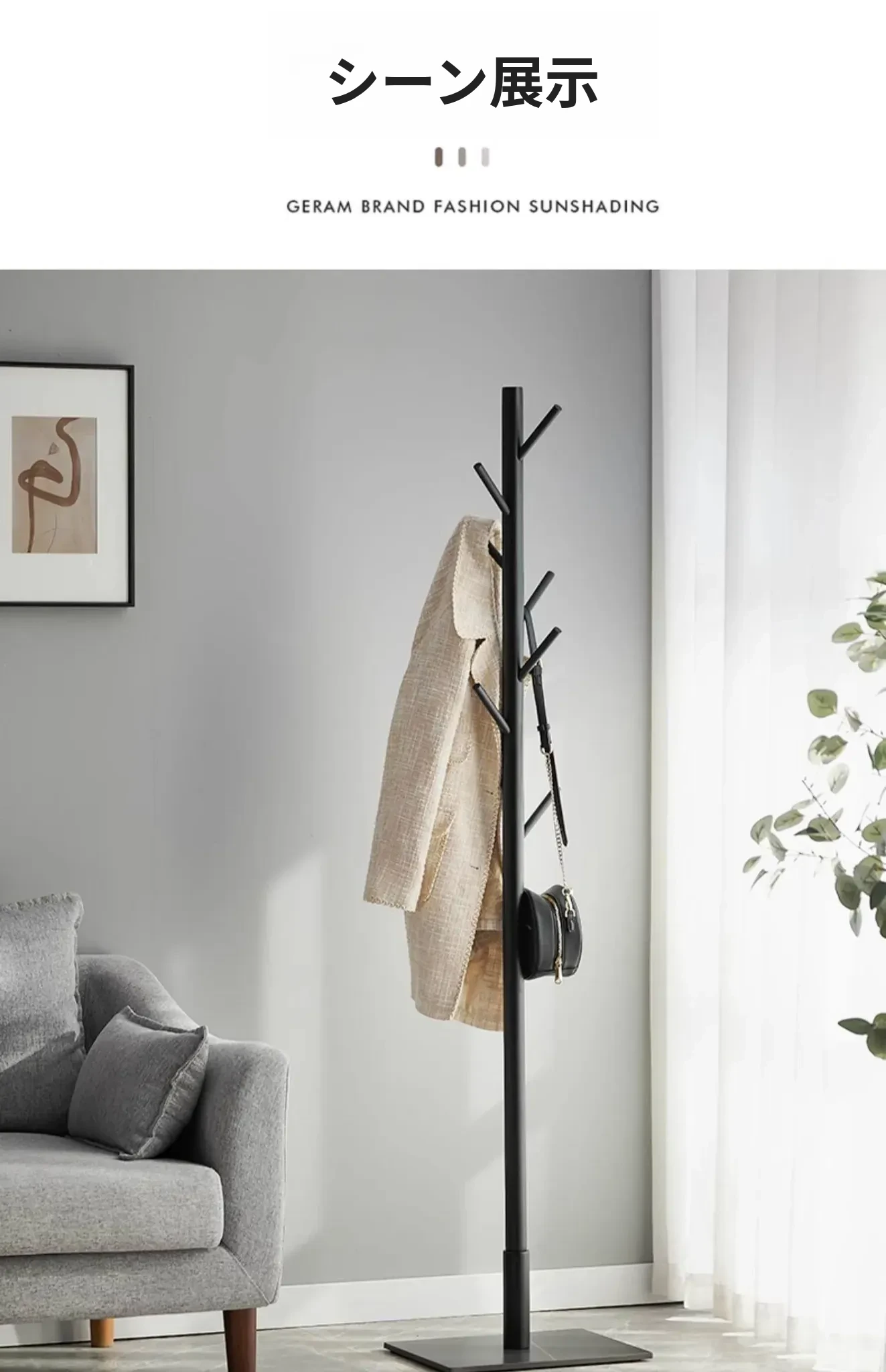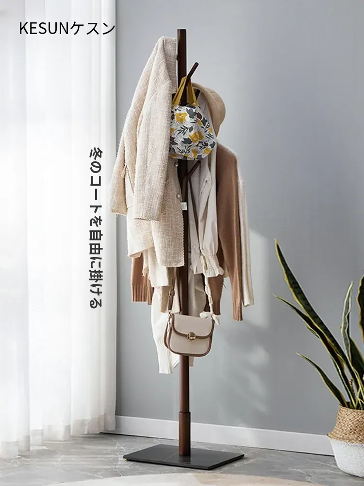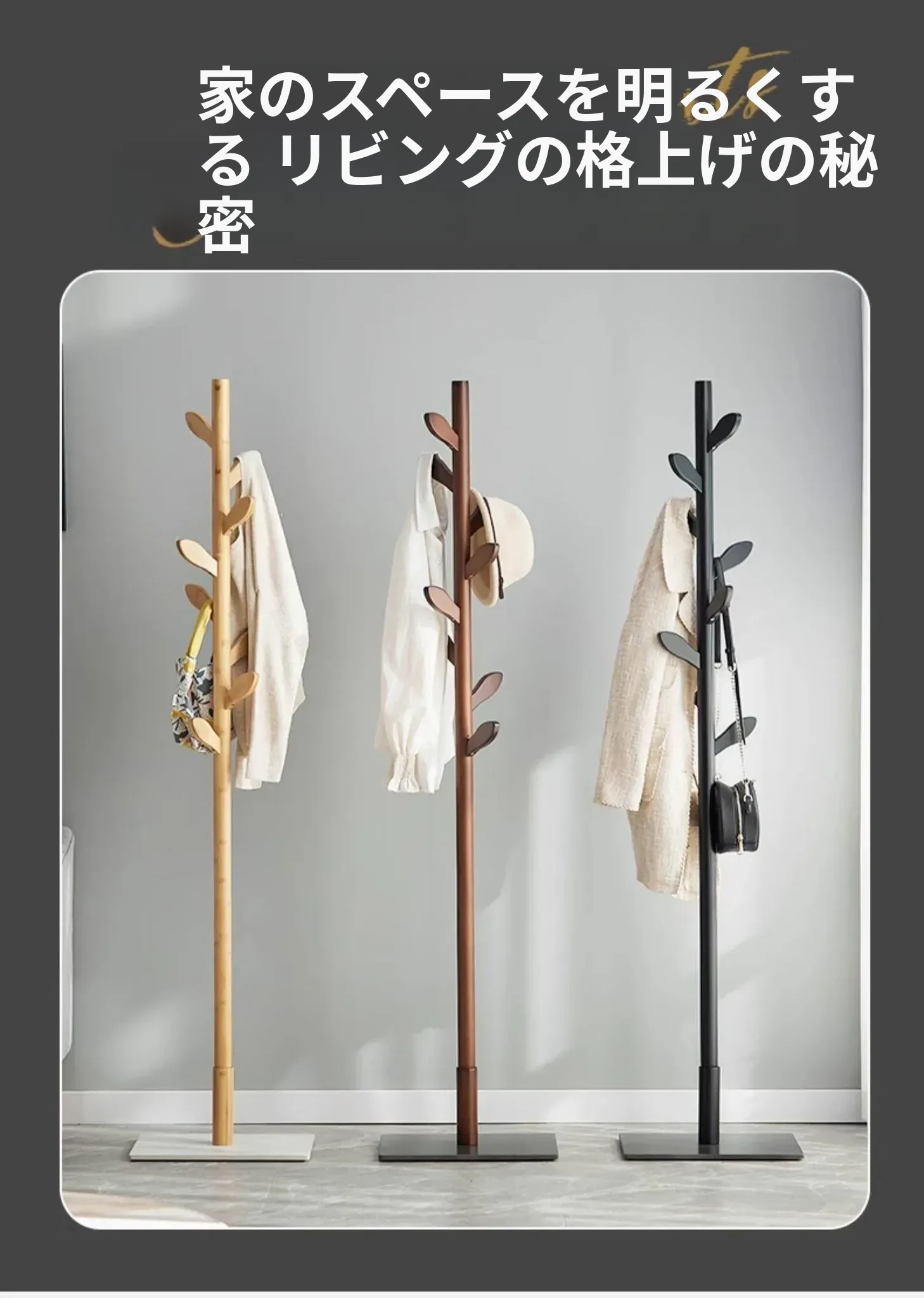 スタイリッシュなフロアコートハンガー - シンプルでモダンなデザイン、寝室やリビングに最適な衣類掛け。使いやすく、スペースを有効活用!おしゃれな収納で生活を便利に。