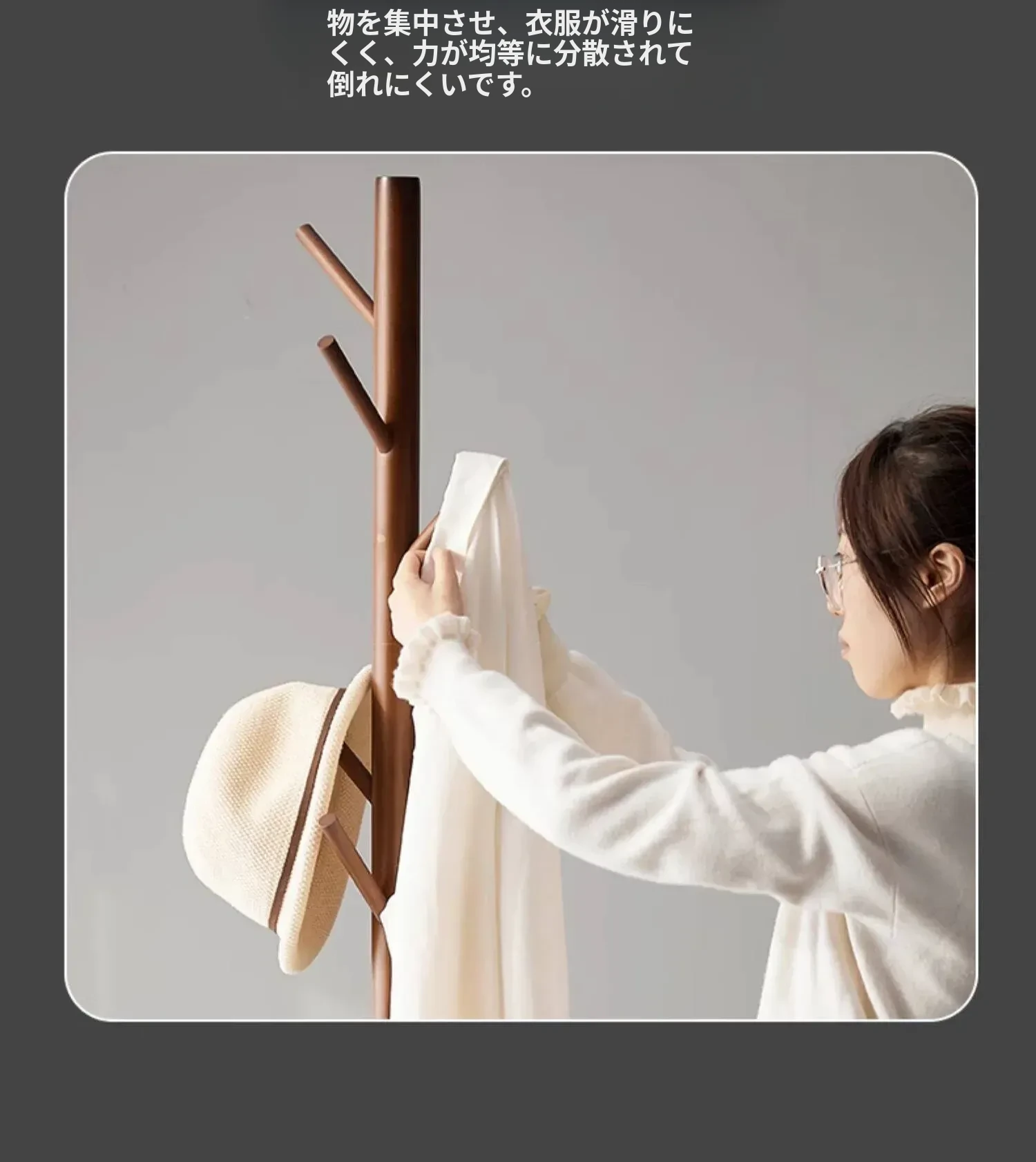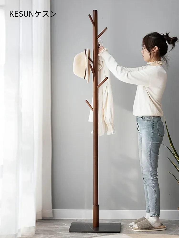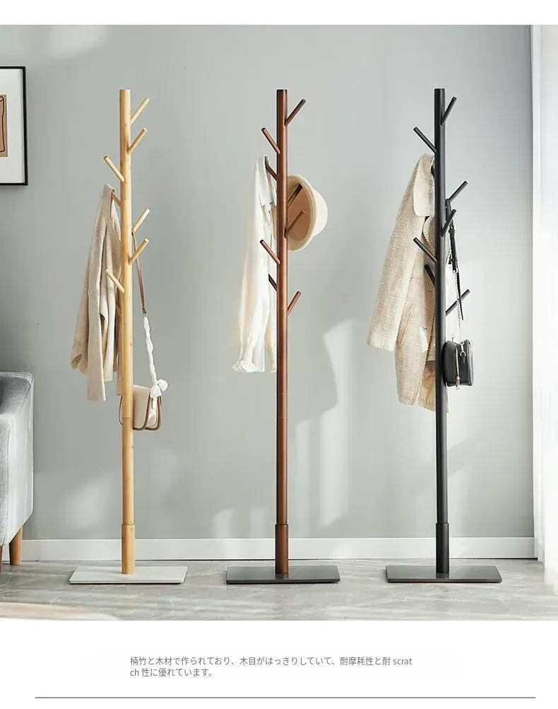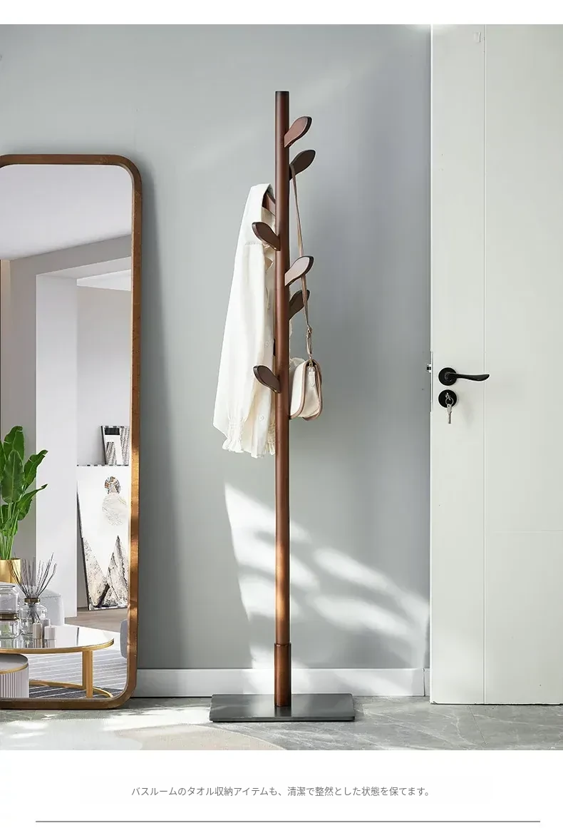 スタイリッシュなフロアコートハンガー - シンプルでモダンなデザイン、寝室やリビングに最適な衣類掛け。使いやすく、スペースを有効活用!おしゃれな収納で生活を便利に。