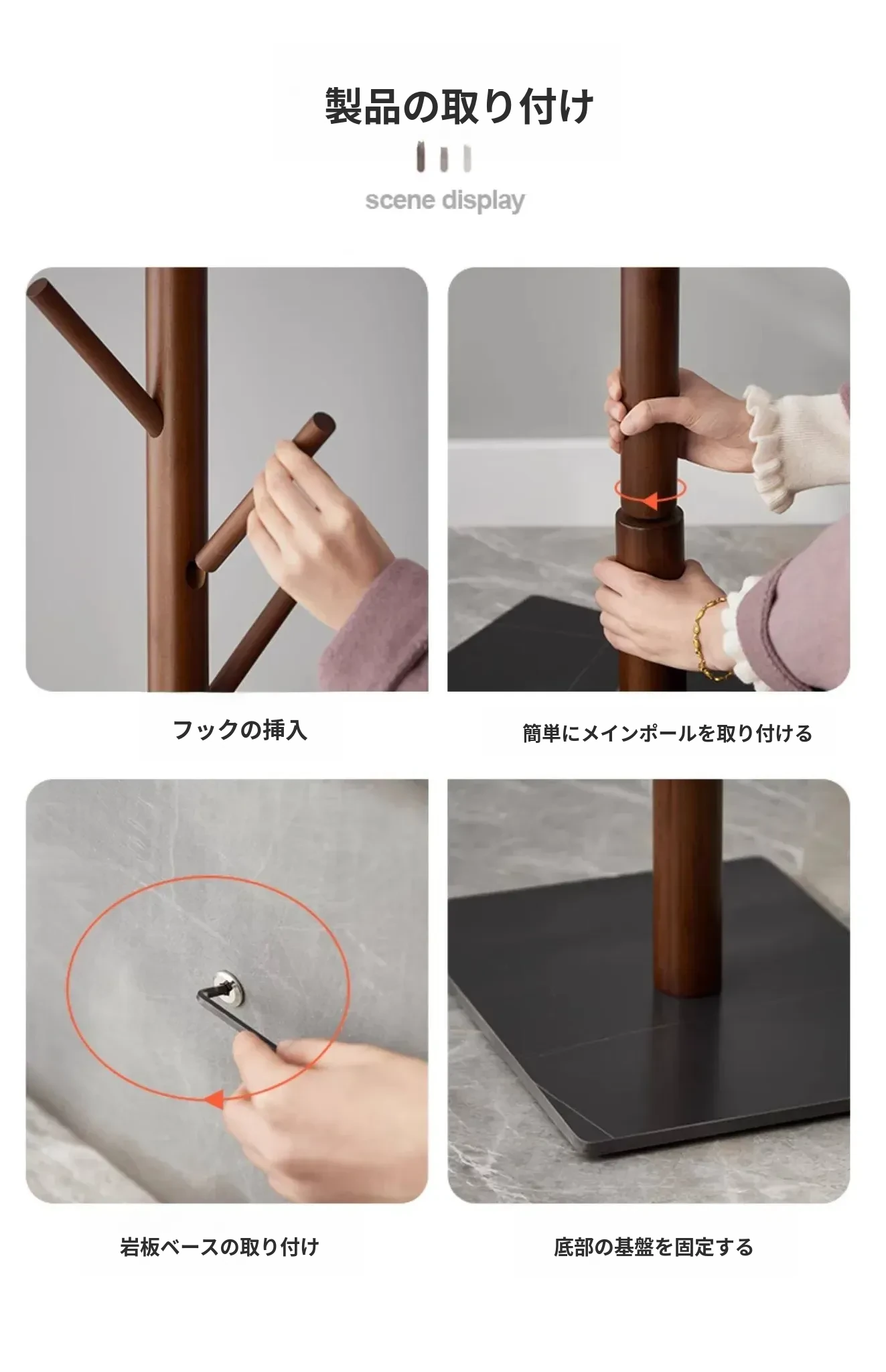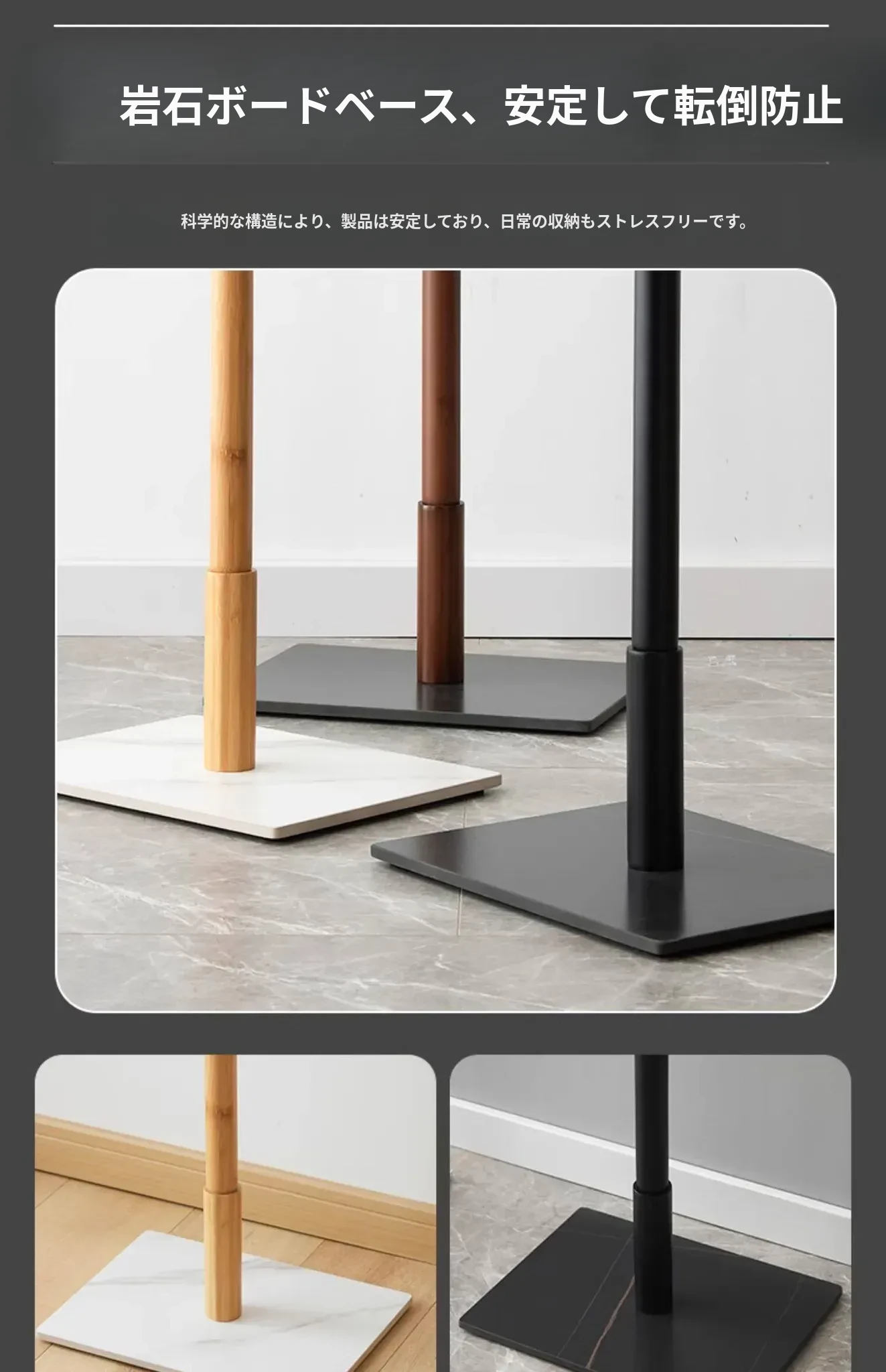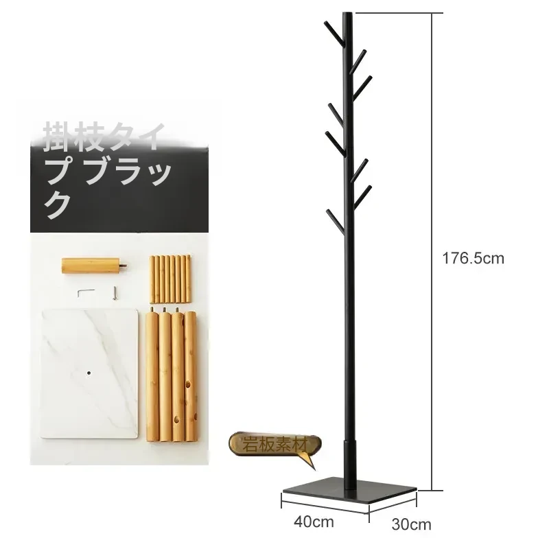 【黒色-ストーンプレート】ハンガー付きコートラック