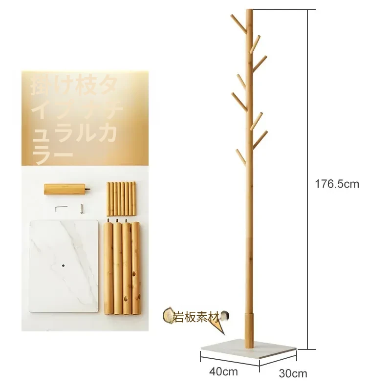 【ナチュラル-ストーンプレート】ハンガー付きコートラック
