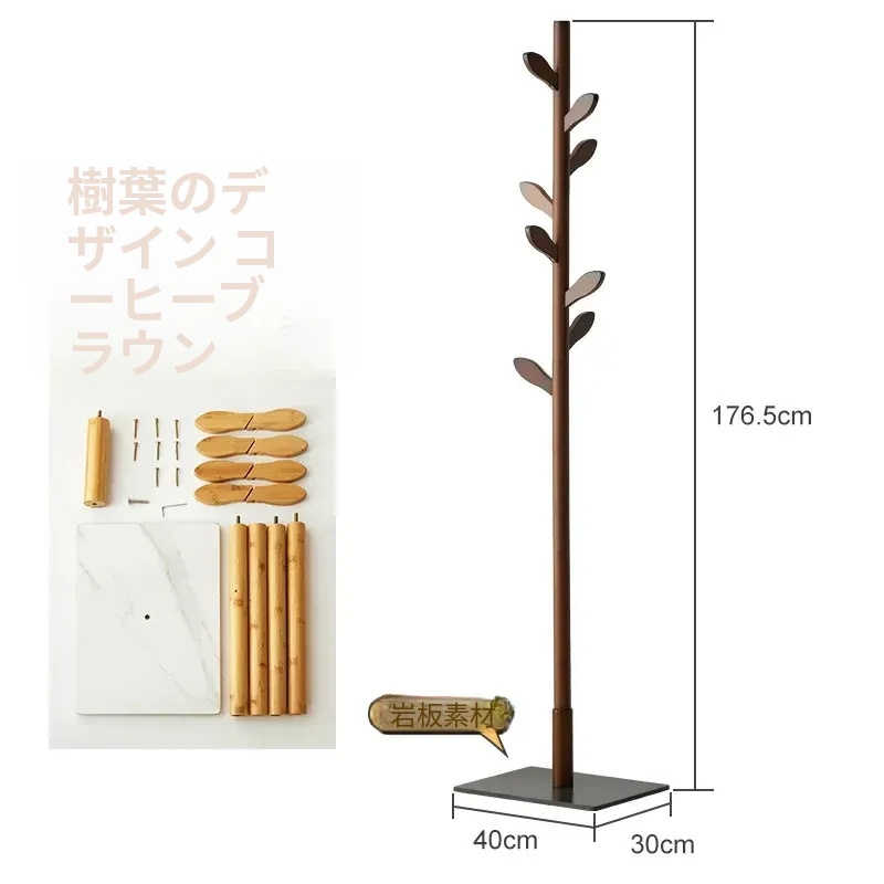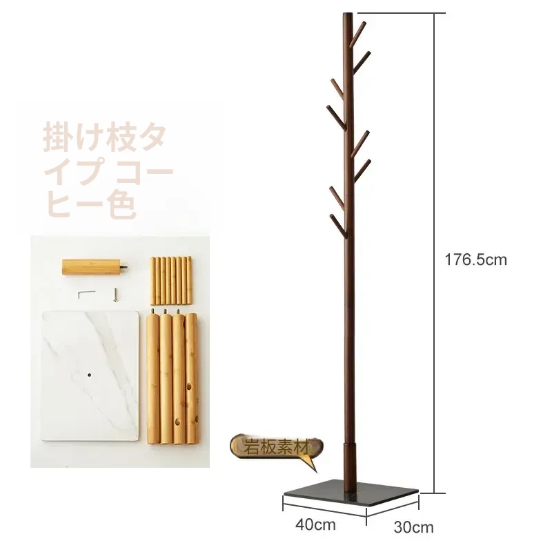 【コーヒー色-ストーンプレート】ハンガー付きコートラック