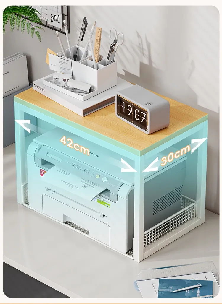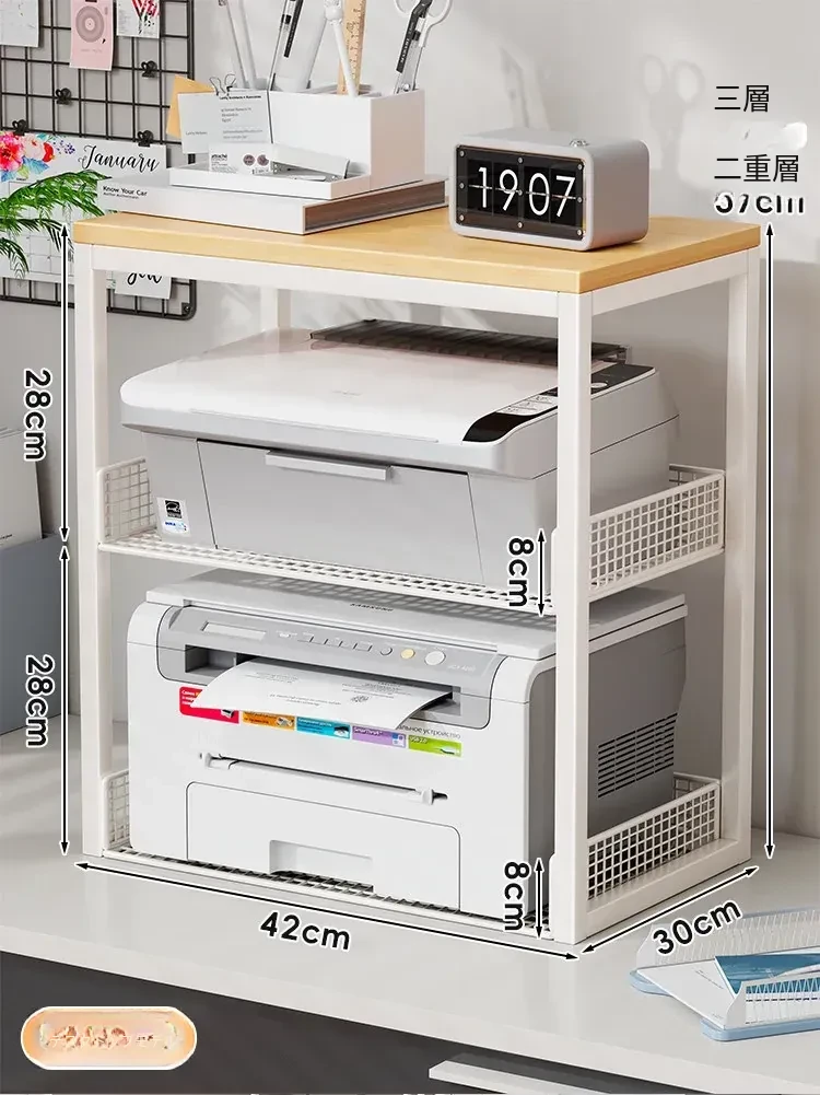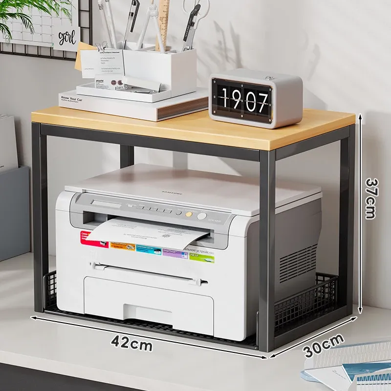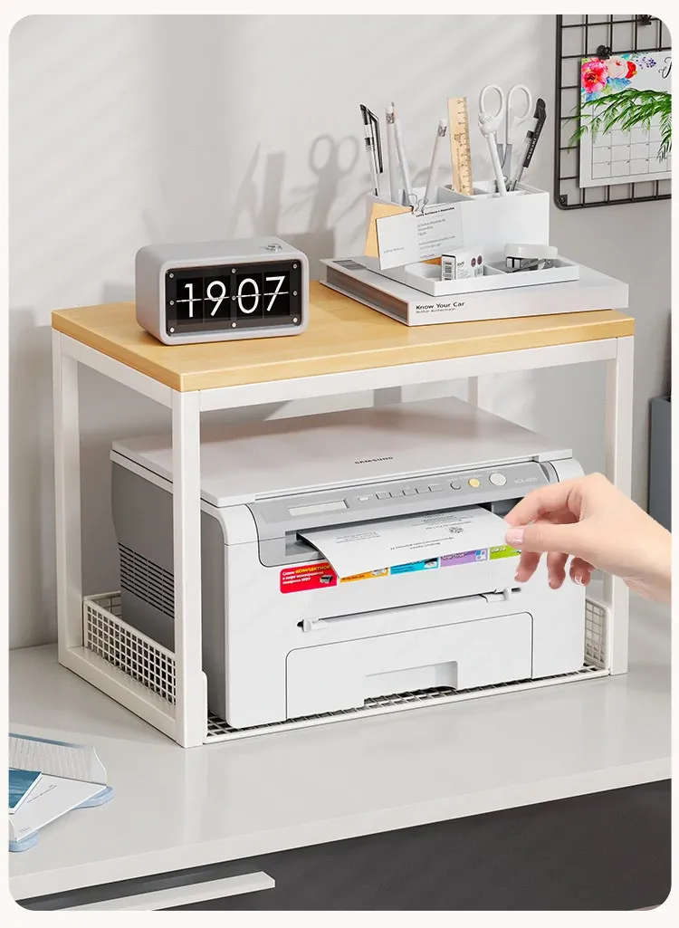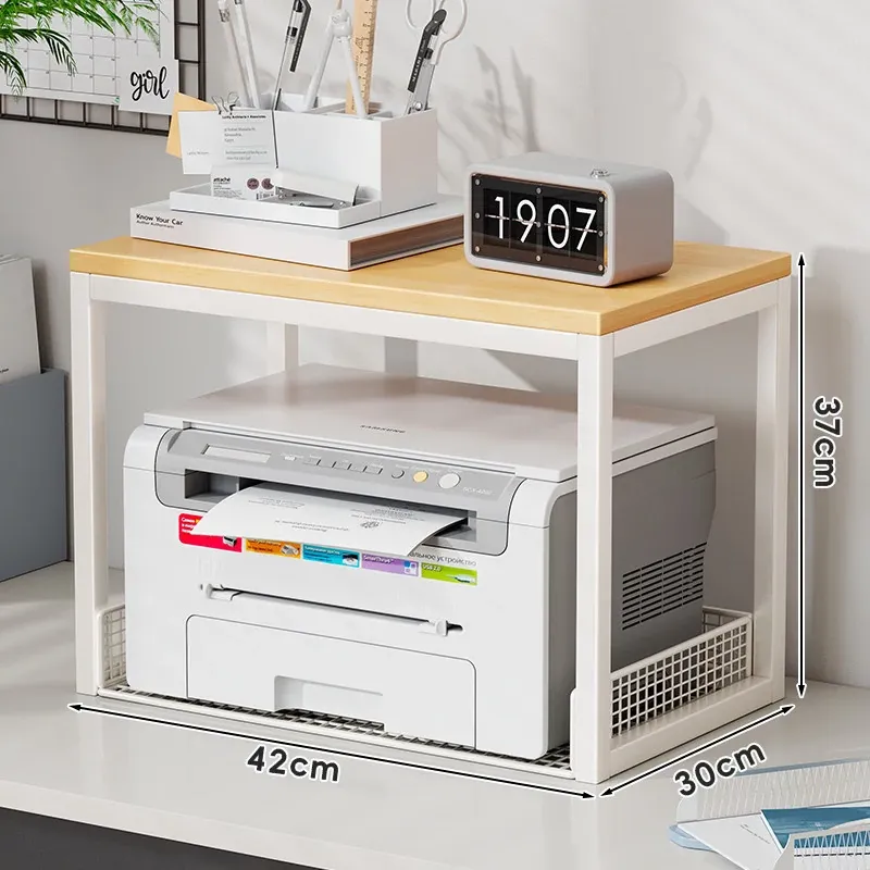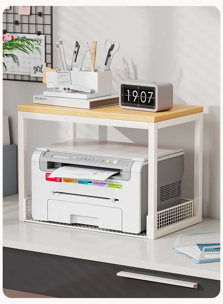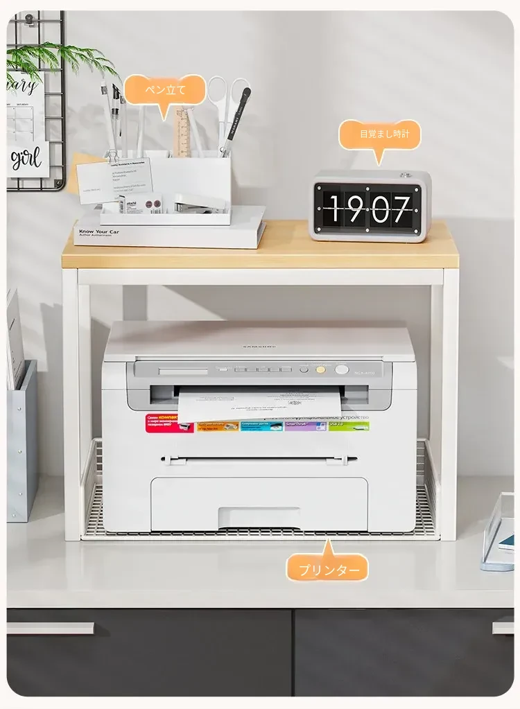 多機能プリンター置き台!デスク上の整理整頓を実現する二段式収納ラック - オフィスや自宅でのパソコン周りをスッキリさせる小型ブックシェルフ!