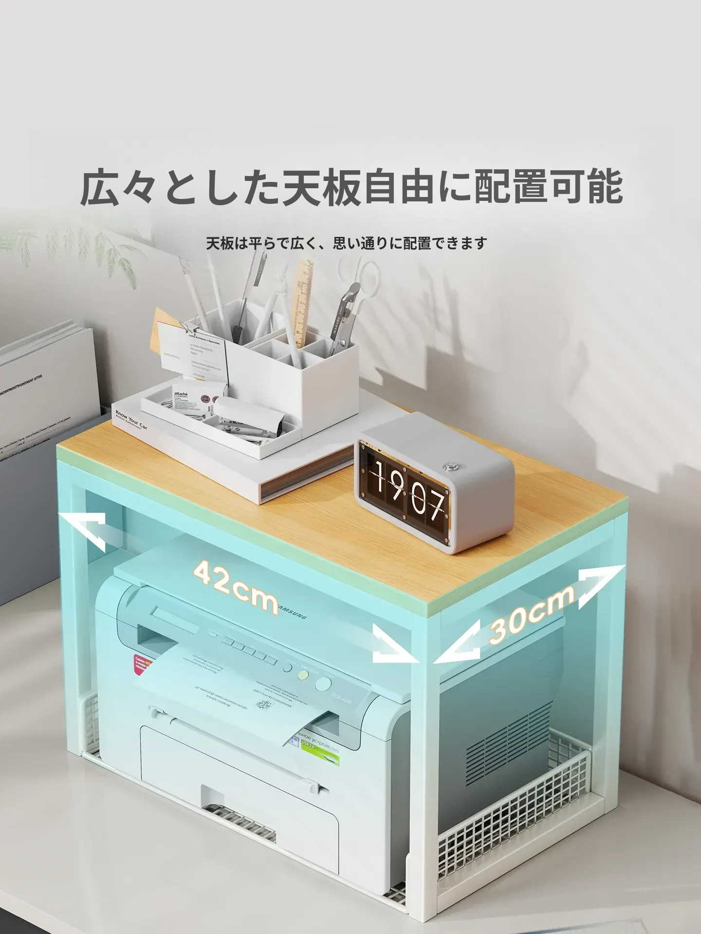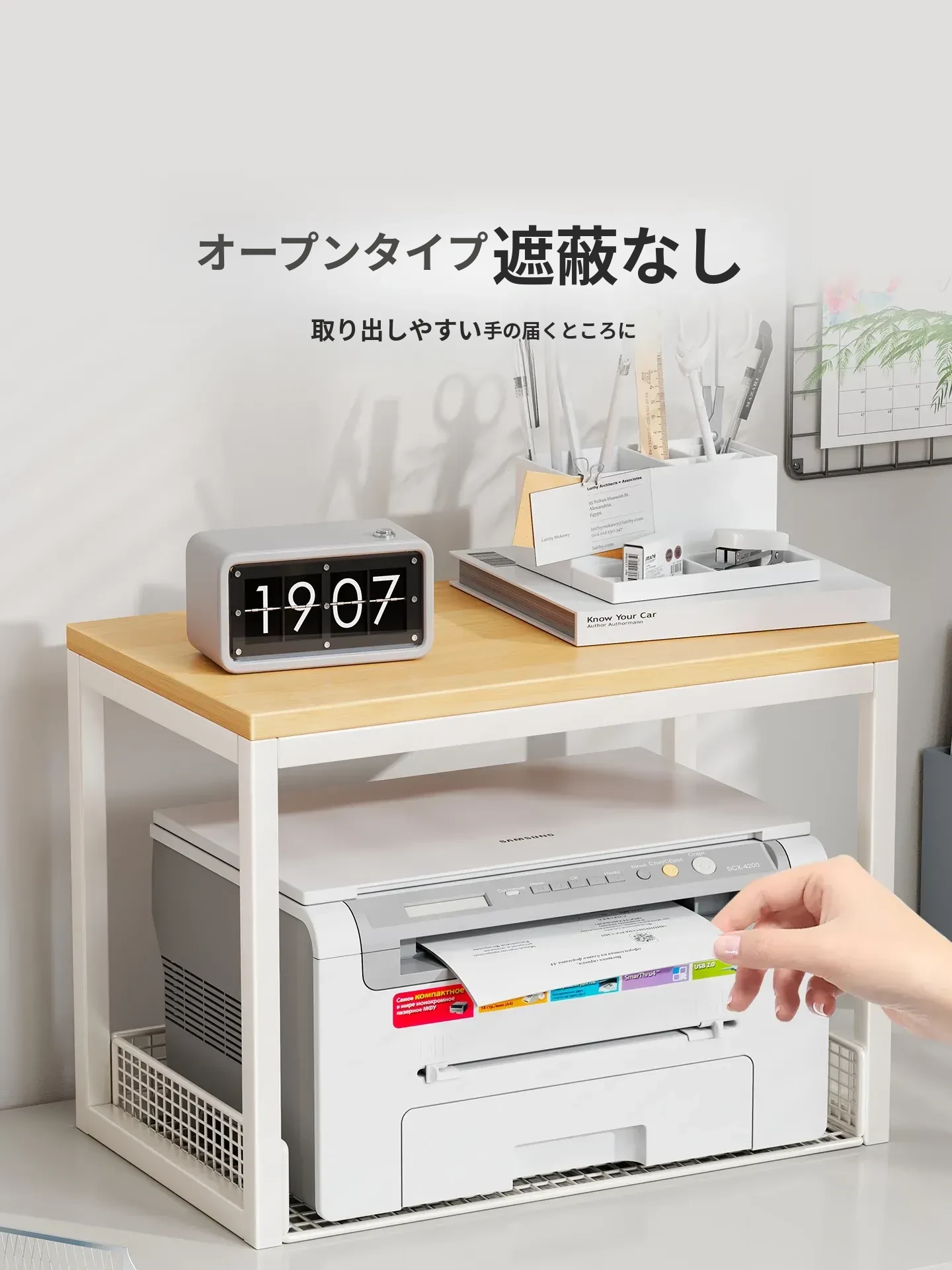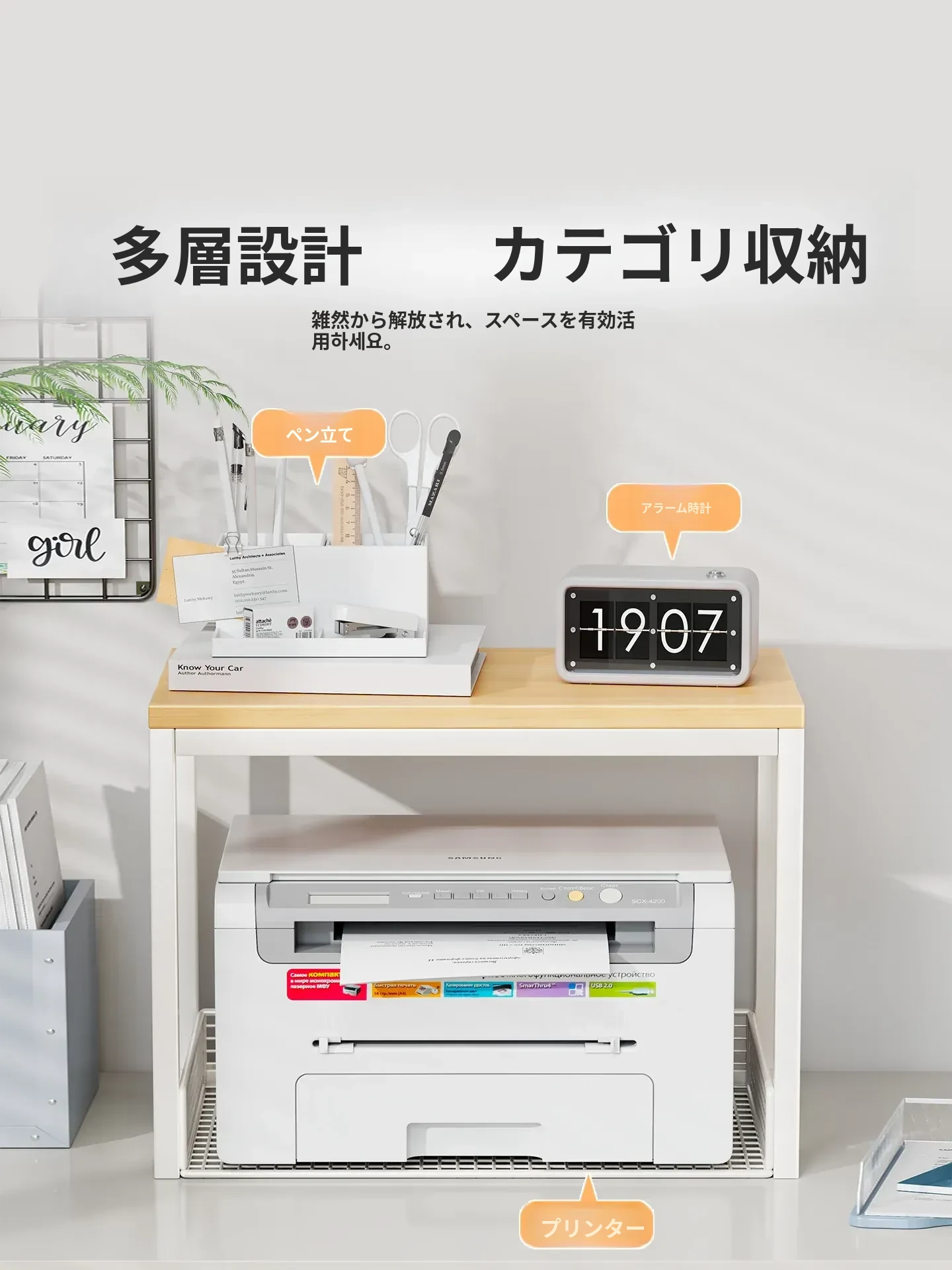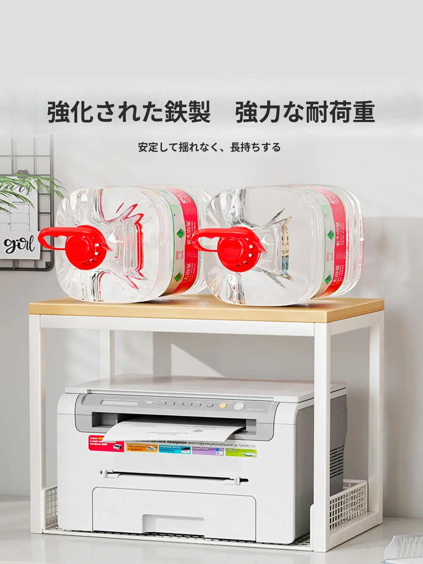 多機能プリンター置き台!デスク上の整理整頓を実現する二段式収納ラック - オフィスや自宅でのパソコン周りをスッキリさせる小型ブックシェルフ!