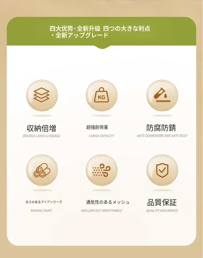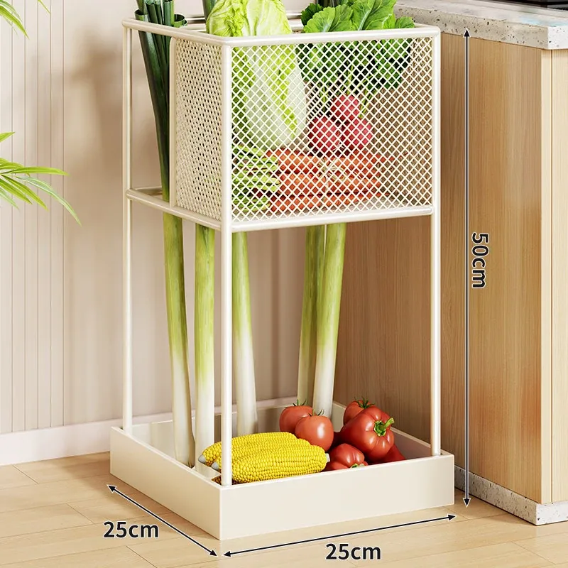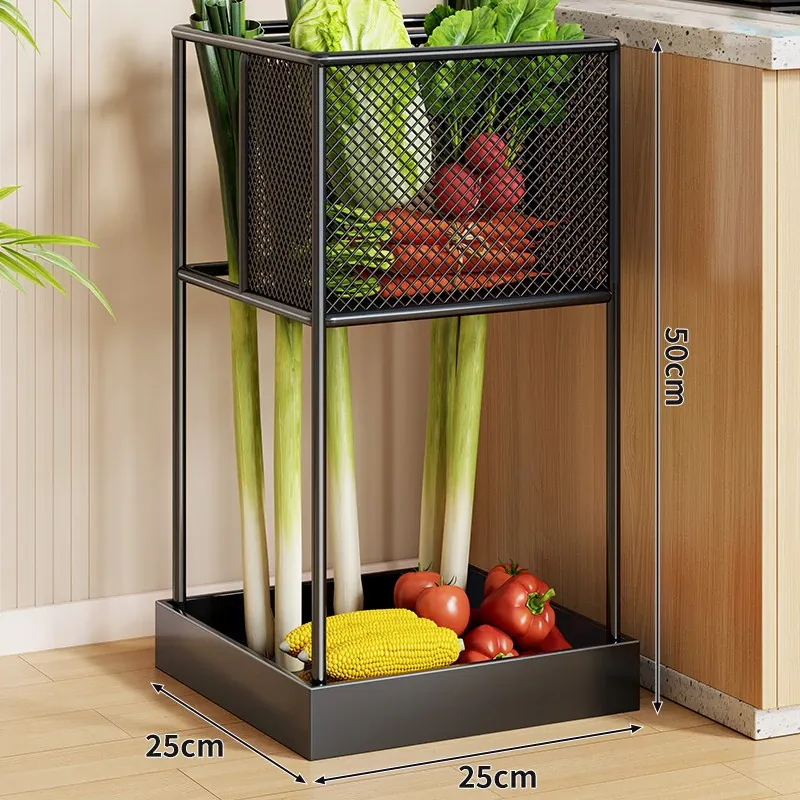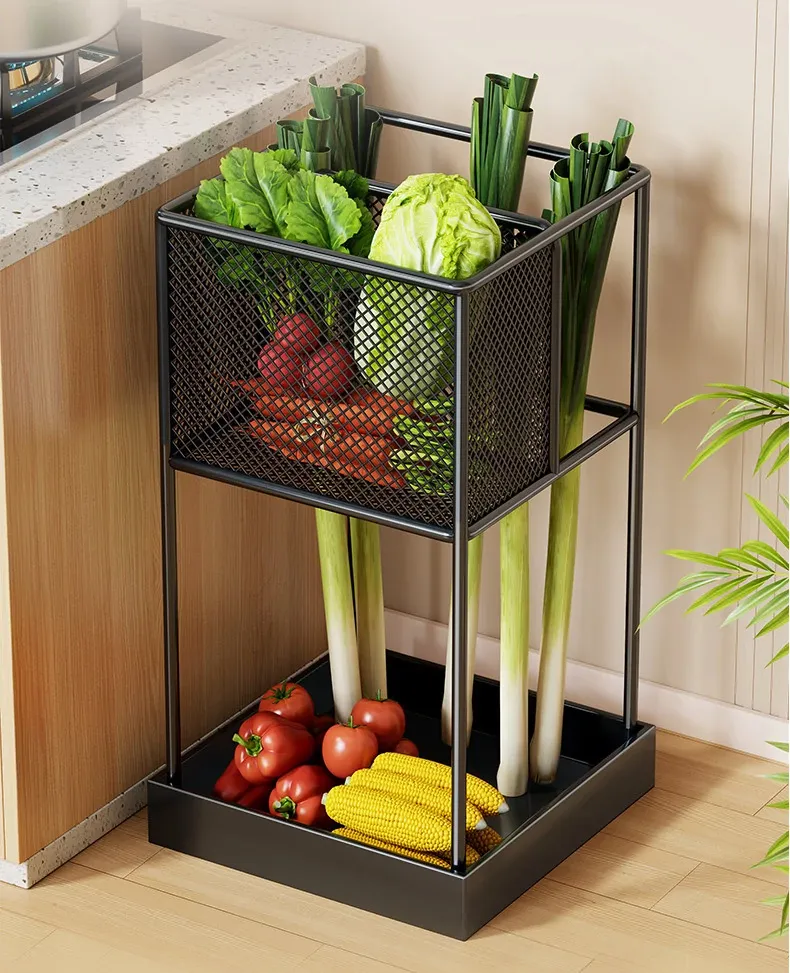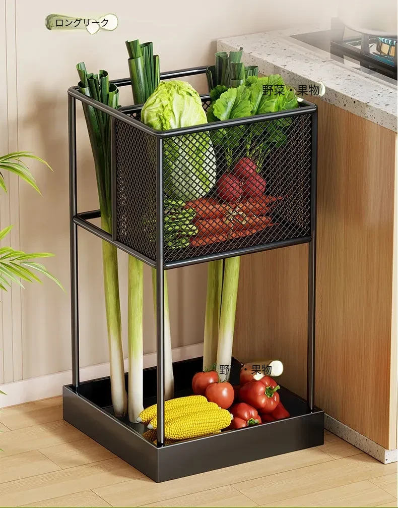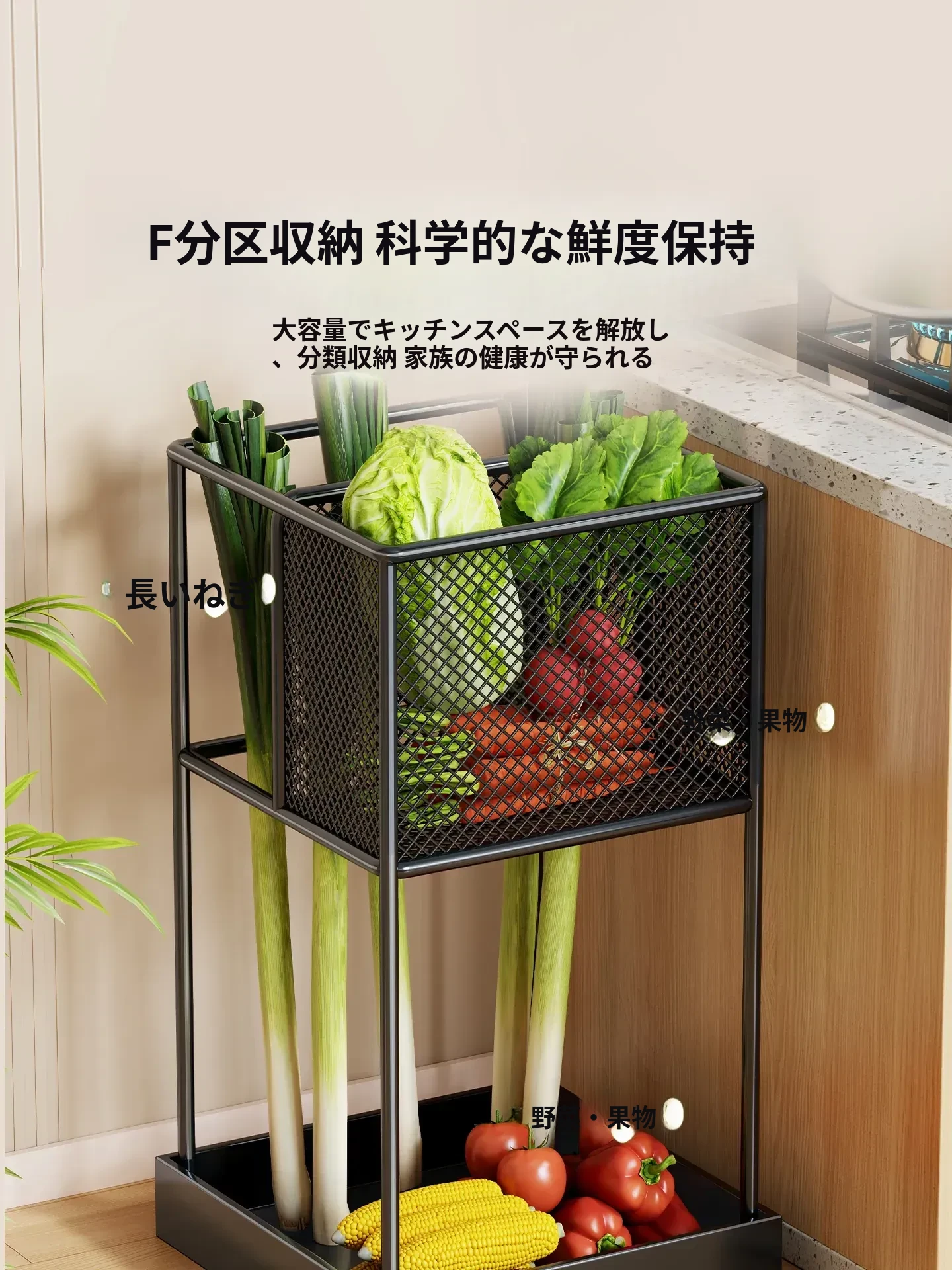 キッチン用のネギ、生姜、ニンニク収納ラック - 多機能・大容量の野菜バスケット!ヤマイモや長ネギもすっきり整理できる収納アイテム!これで料理がもっと楽しくなる!