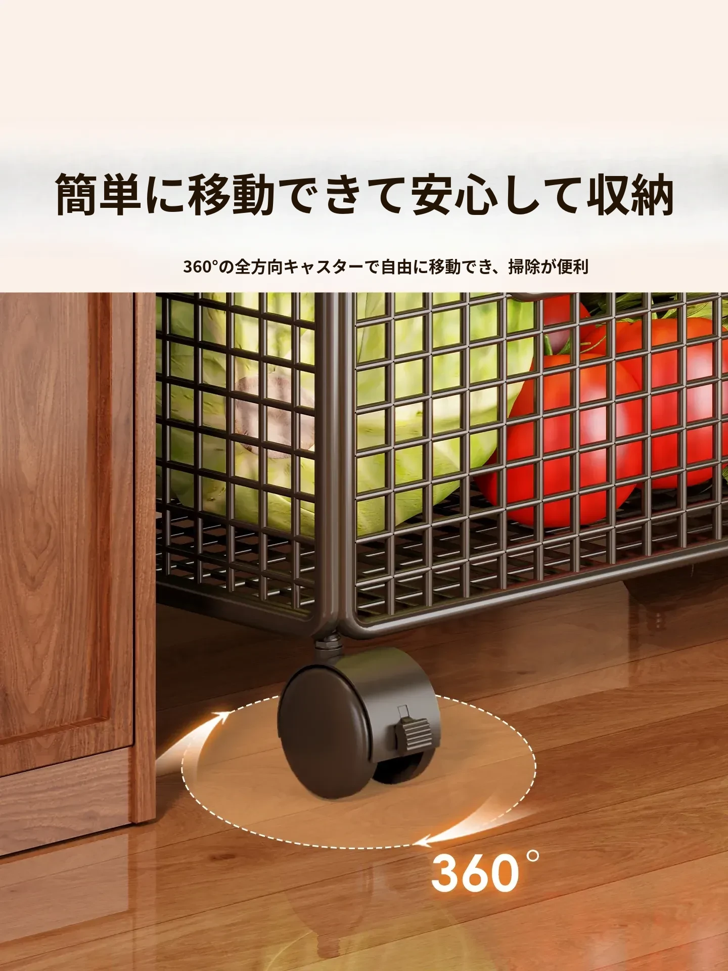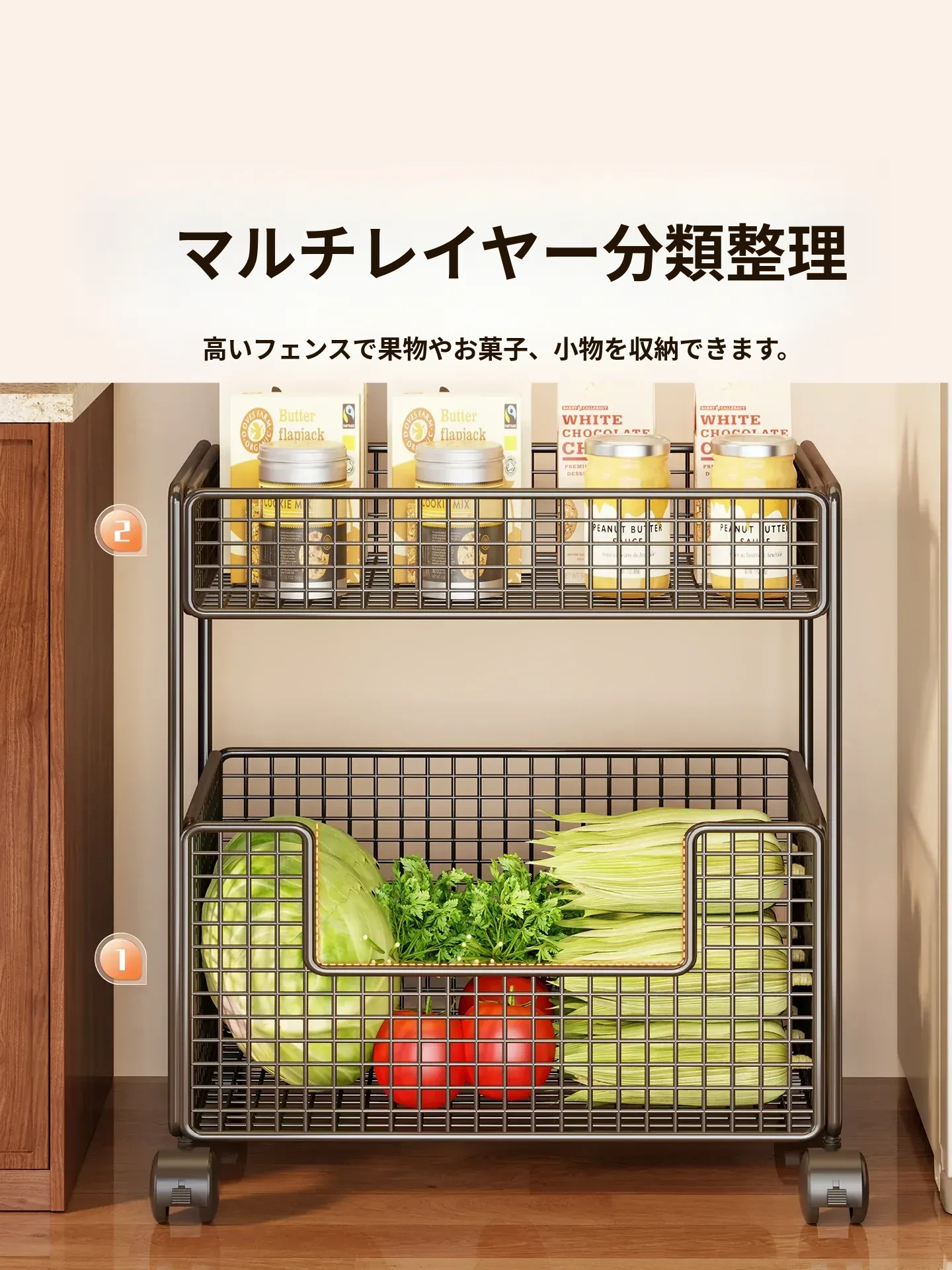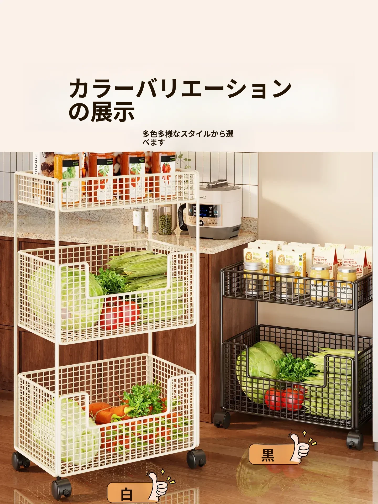キッチン収納ラック 家庭用 多機能スタンド 野菜ラック 移動式カート フルーツ&野菜収納に最適!おしゃれで便利なデザインで、限られたスペースを有効活用!