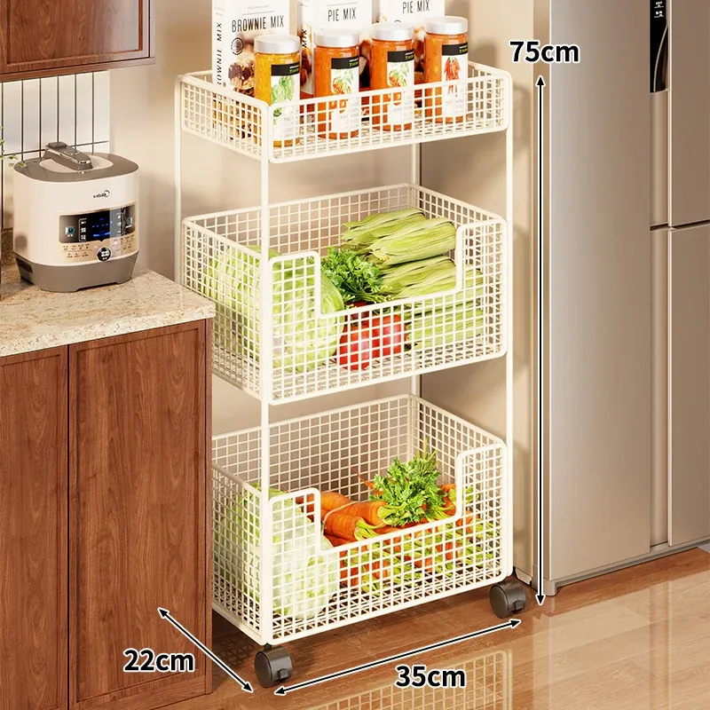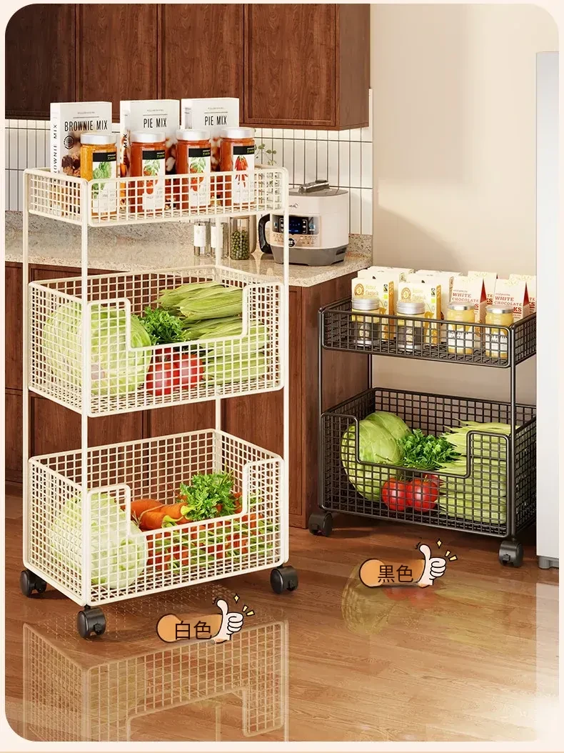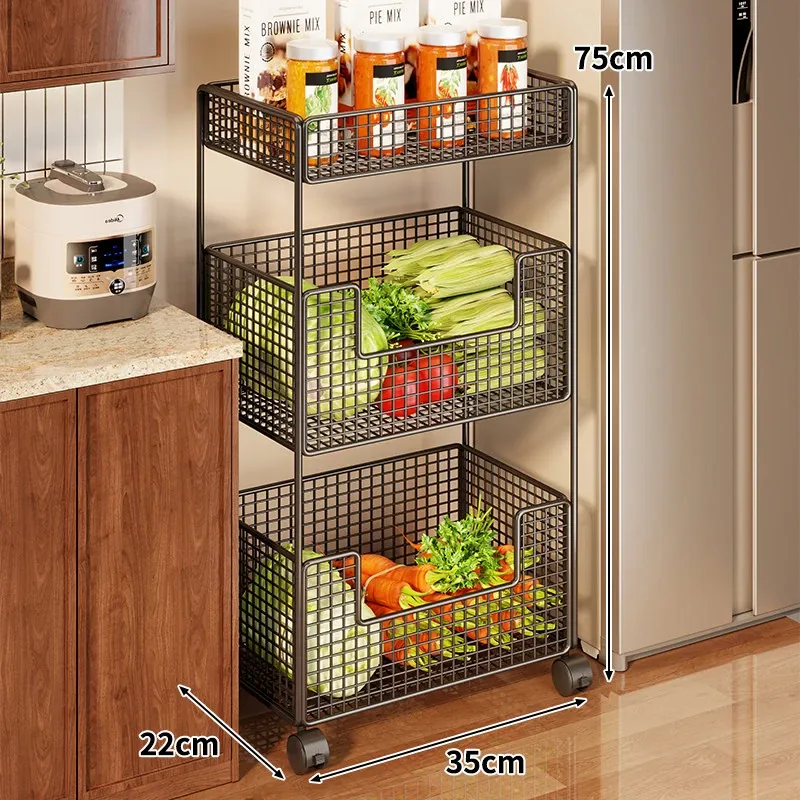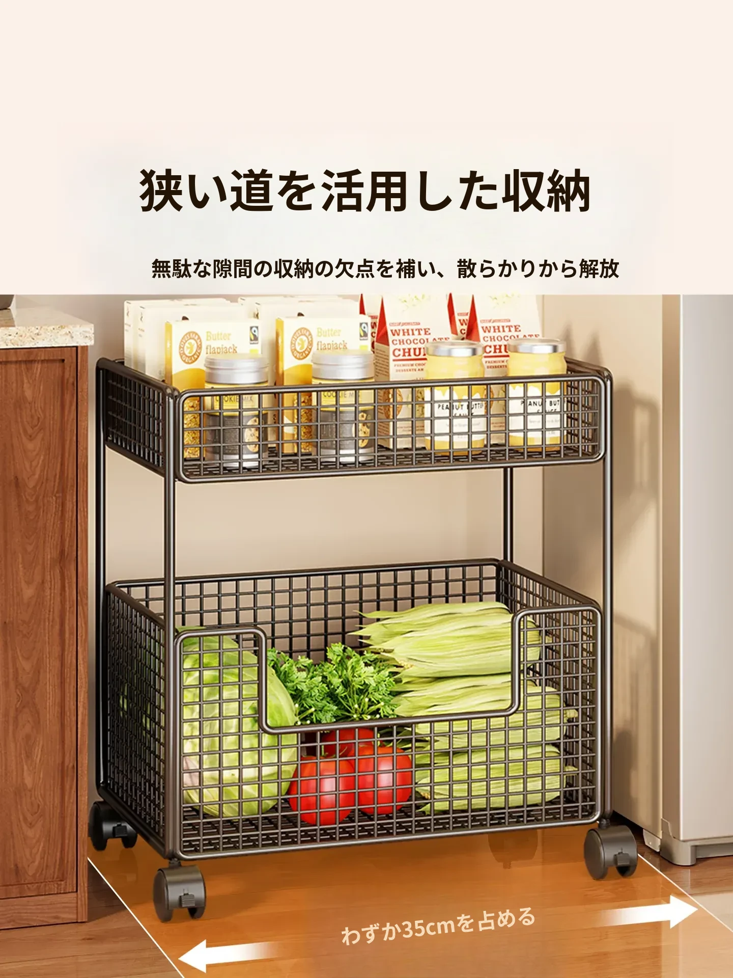 キッチン収納ラック 家庭用 多機能スタンド 野菜ラック 移動式カート フルーツ&野菜収納に最適!おしゃれで便利なデザインで、限られたスペースを有効活用!
