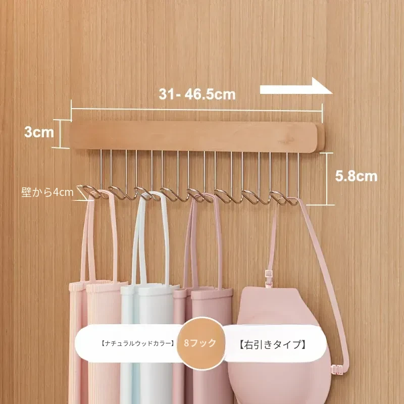 グリーン・スライドレールフック 【ナチュラルウッド色】-8フック【右引きタイプ】