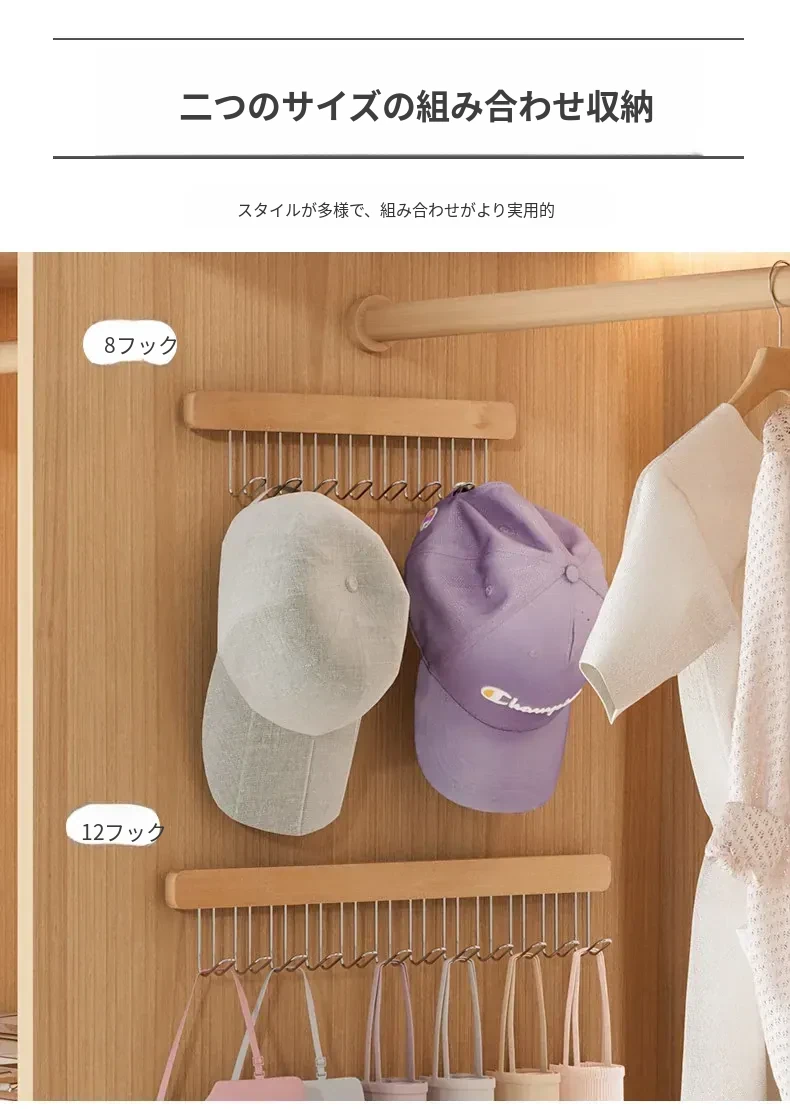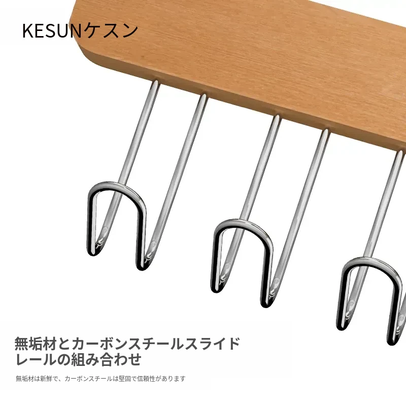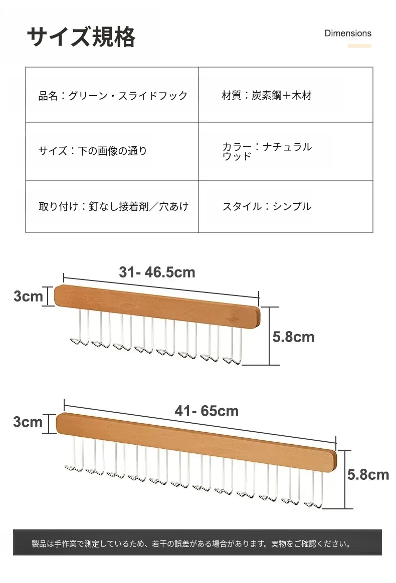 グリーン・スライドレールフック 【ナチュラルウッド色】-12フック【左引きタイプ】