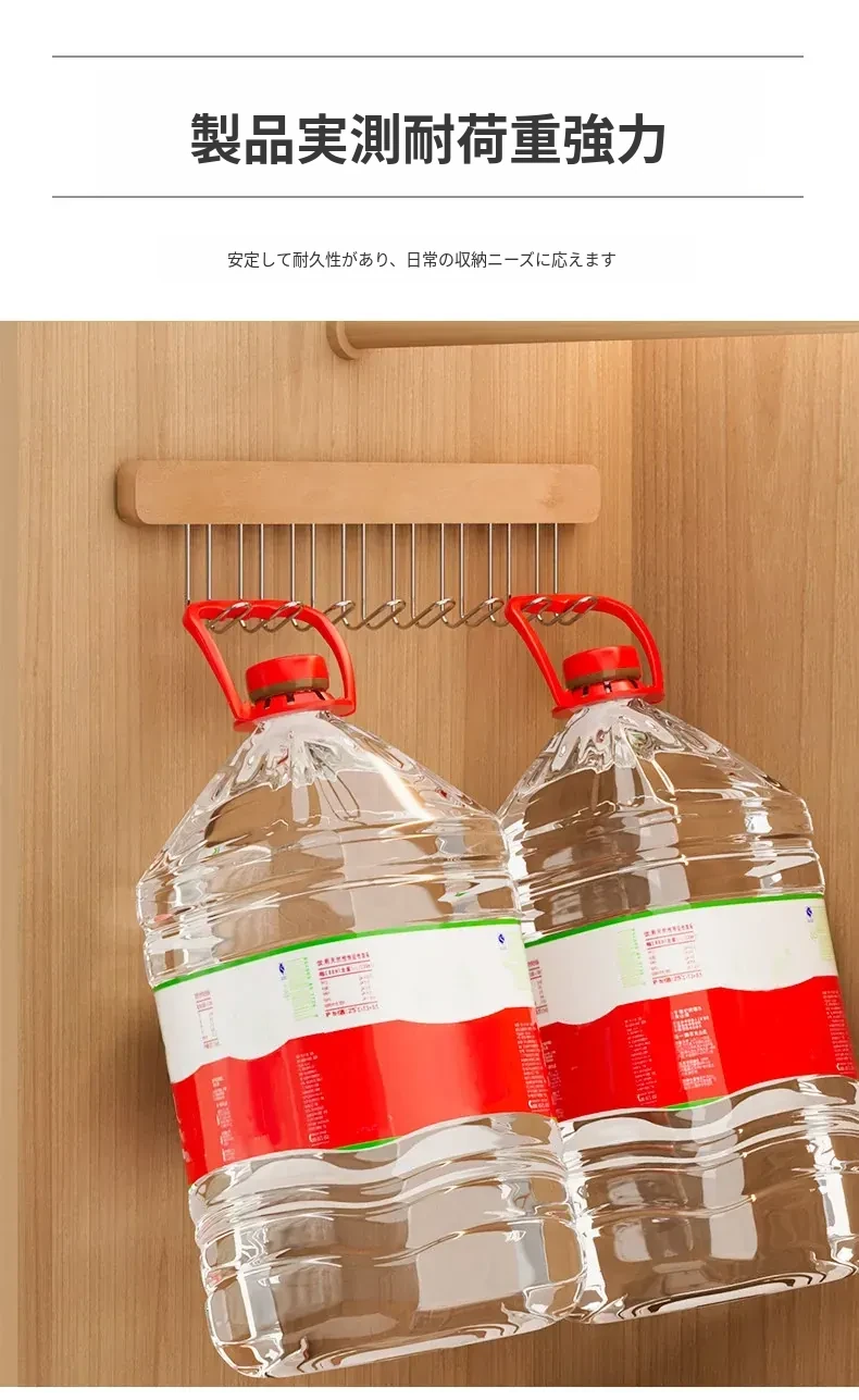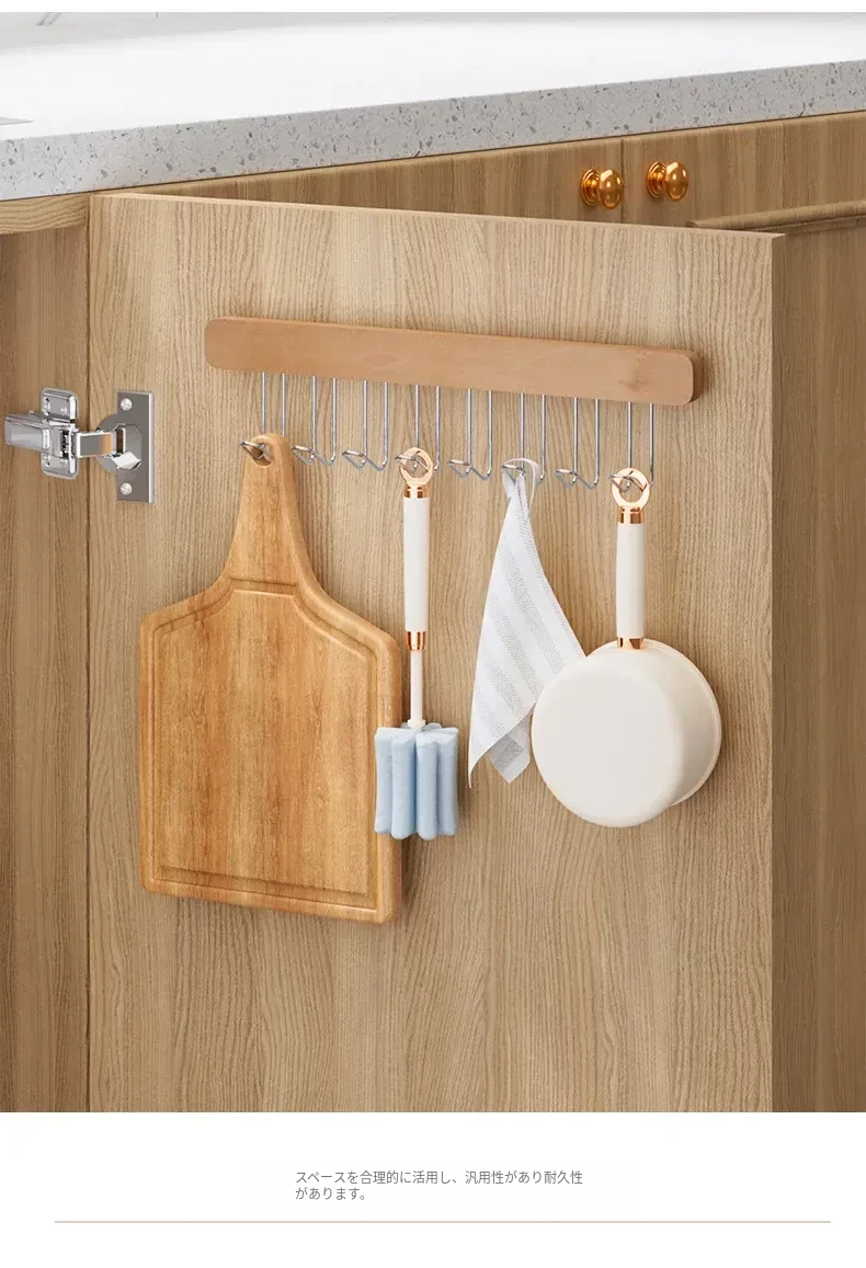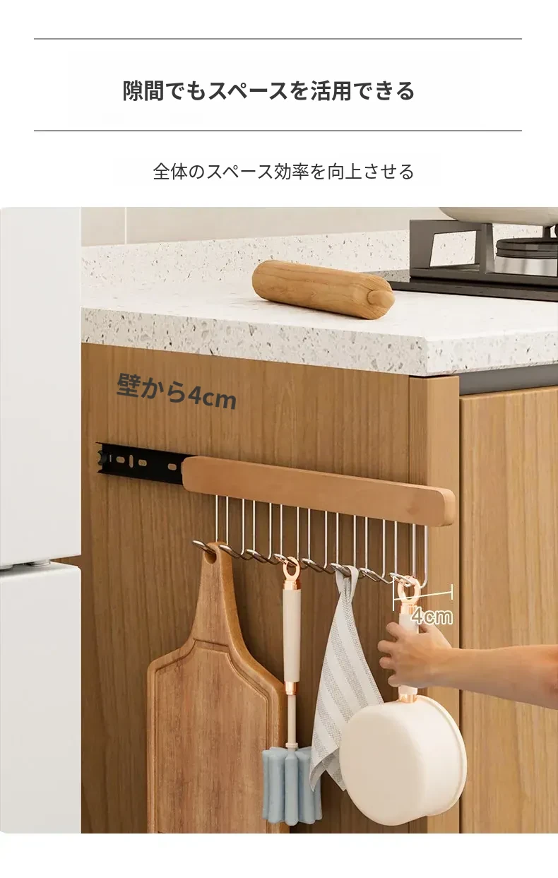 グリーン・スライドレールフック 【ナチュラルウッド色】-12フック【右引きタイプ】