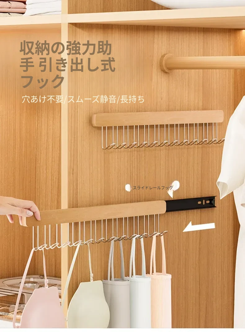 引き出し式多機能ストラップフックハンガー - 壁掛けで簡単取り付け、穴あけ不要!家のインテリアにぴったりな下着やタンクトップのための便利な収納アイテムです。