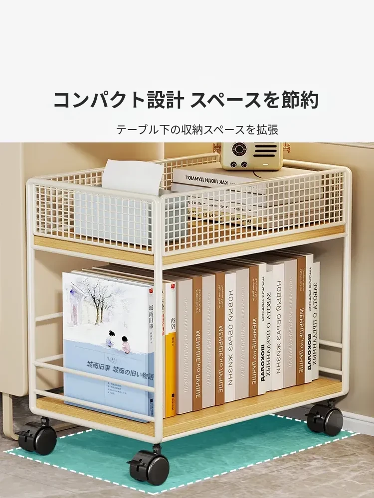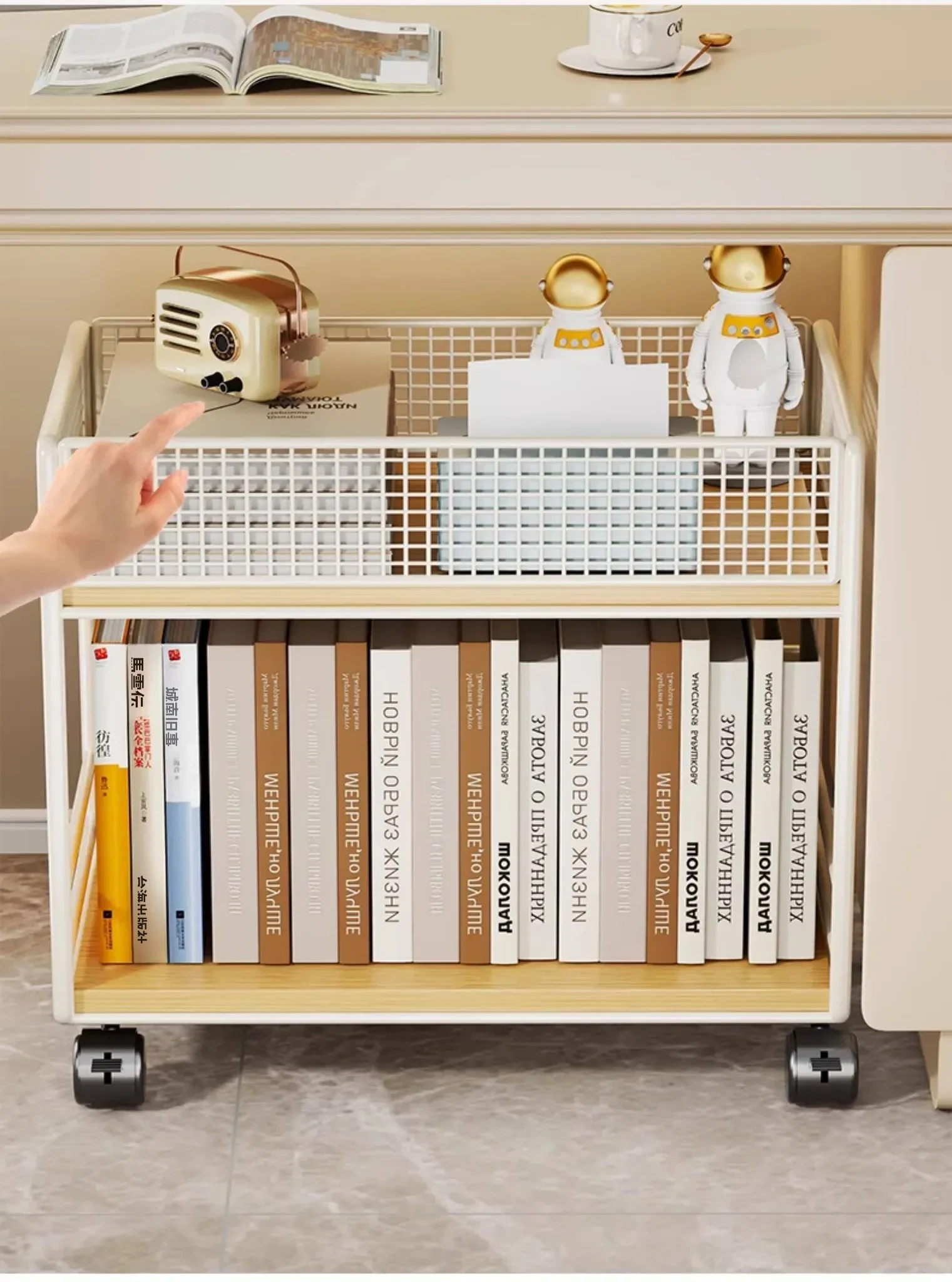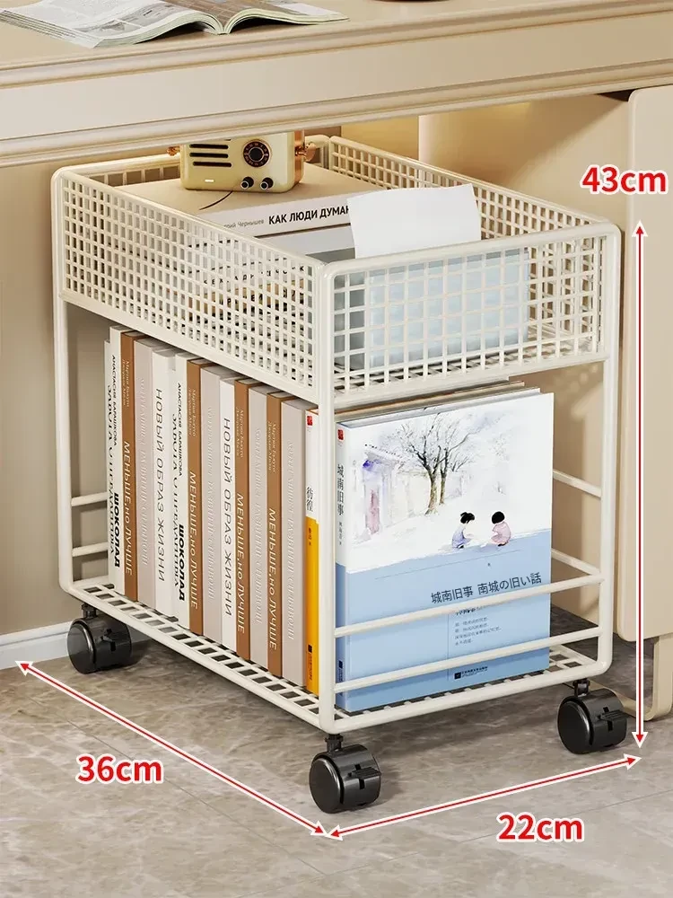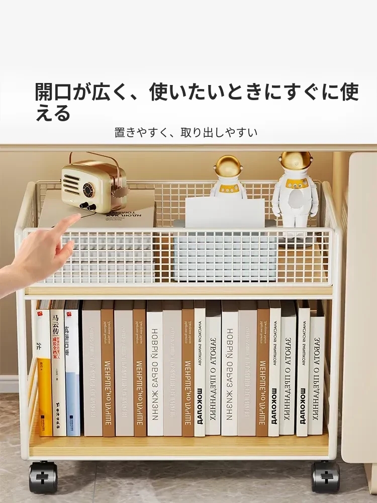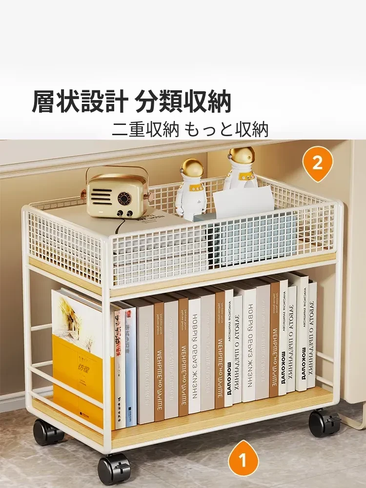 学習机横にぴったり!移動可能な小型ラック付きの本棚キャビネット - 便利なキャスター付きで、書籍や文房具をスッキリ収納!お部屋をオシャレに演出するアイテムです。