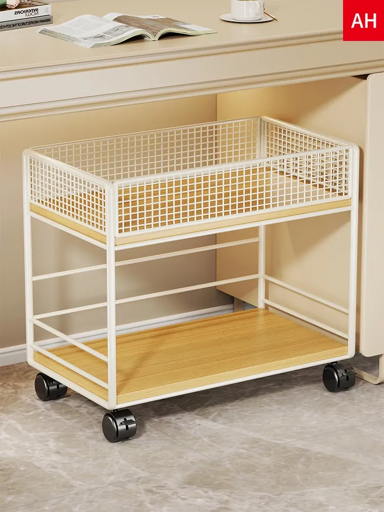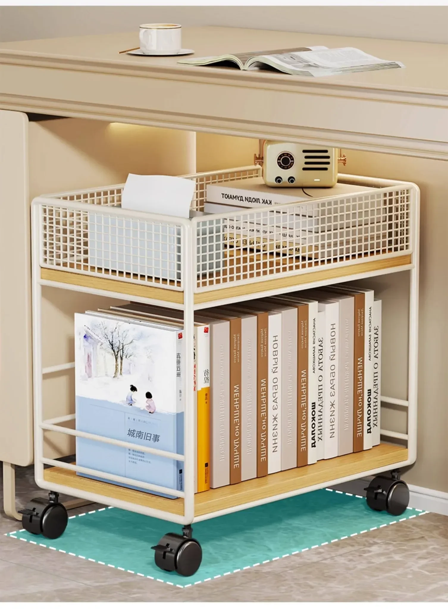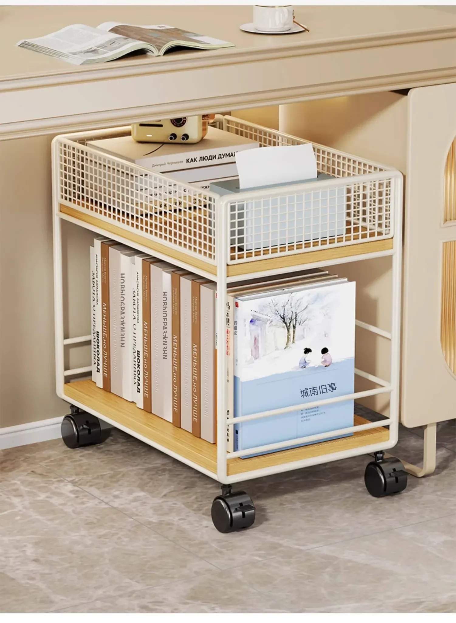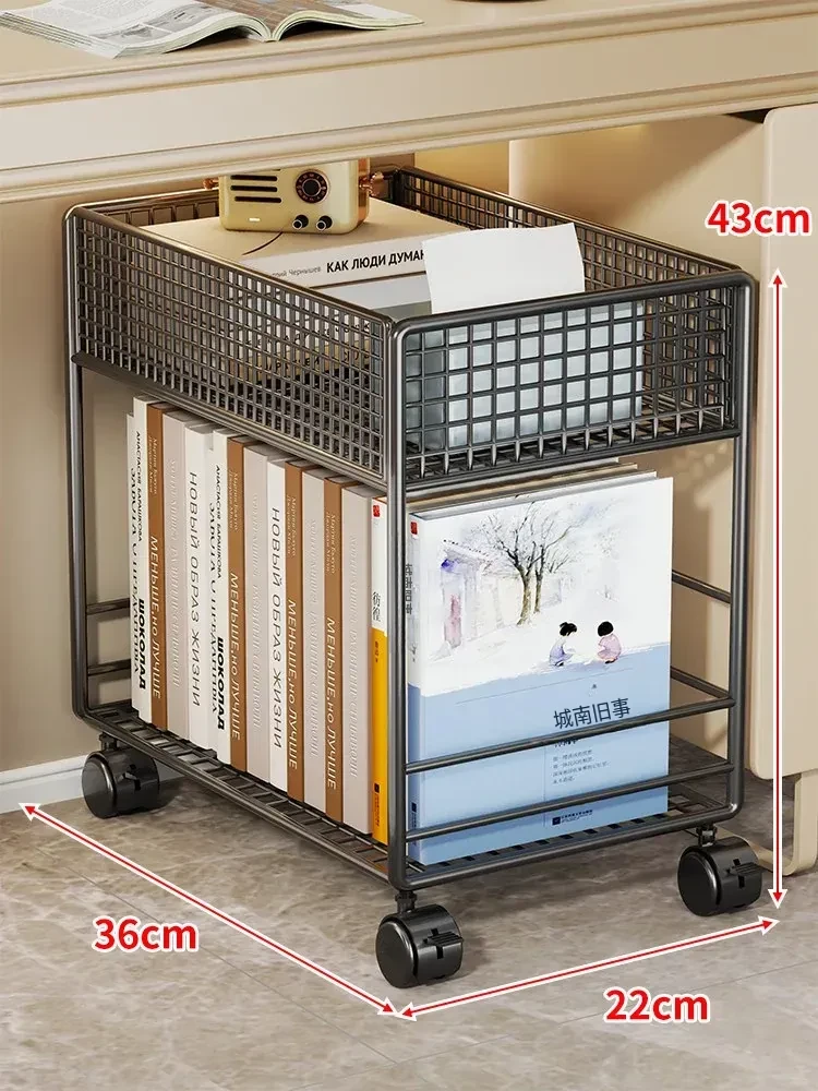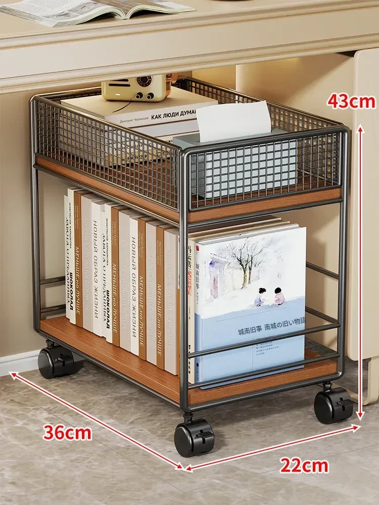 学習机横にぴったり!移動可能な小型ラック付きの本棚キャビネット - 便利なキャスター付きで、書籍や文房具をスッキリ収納!お部屋をオシャレに演出するアイテムです。