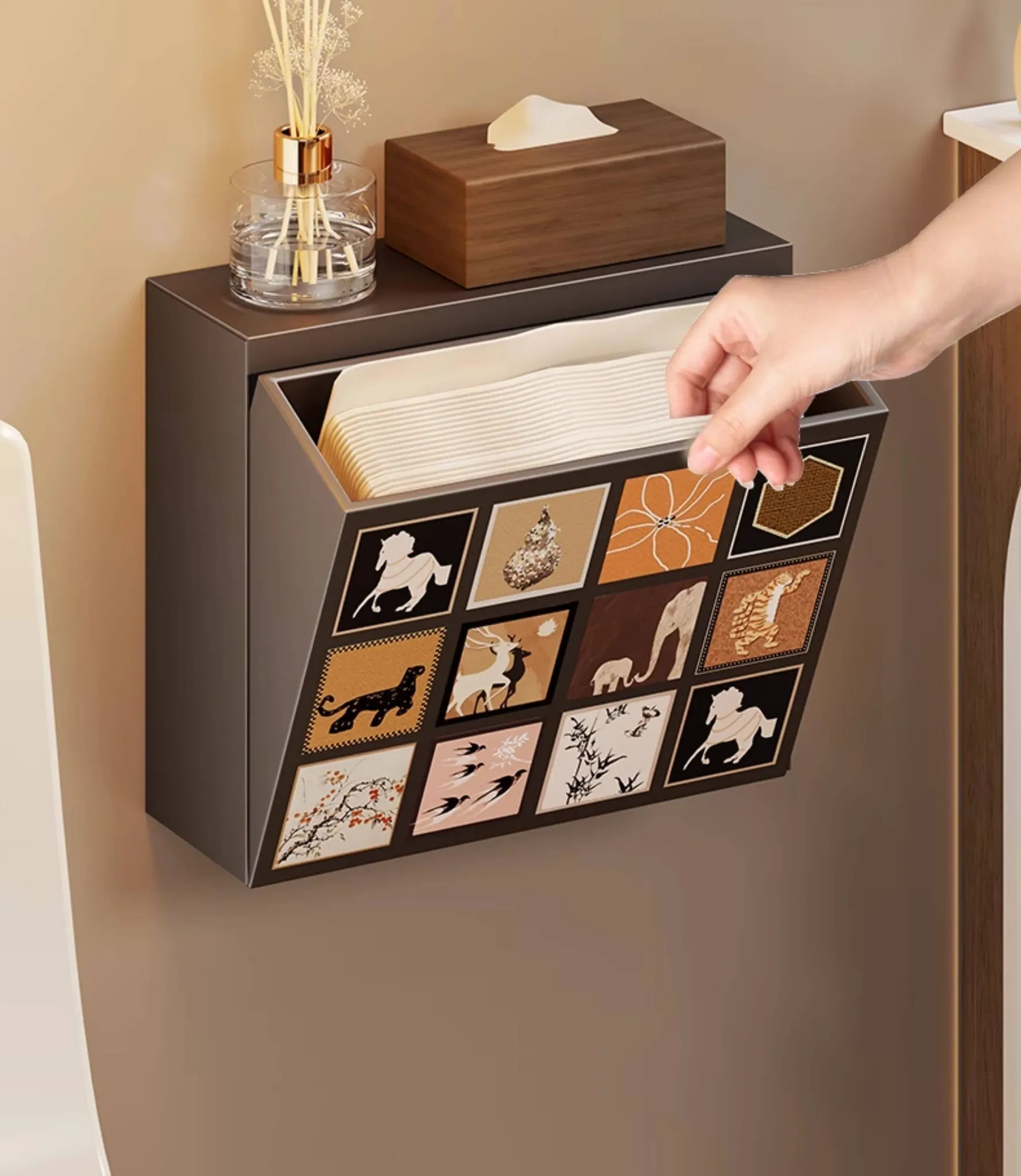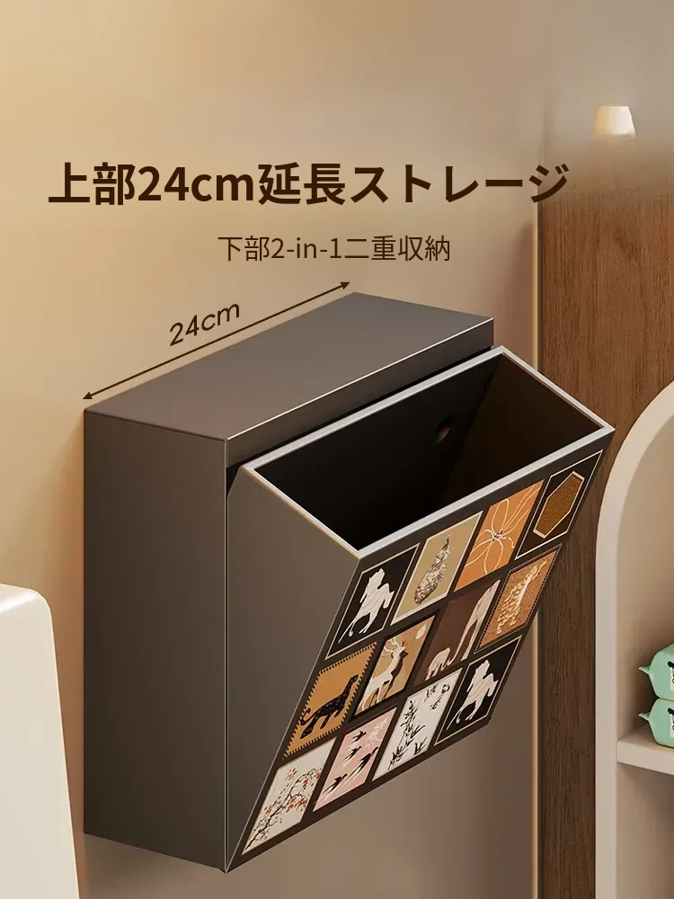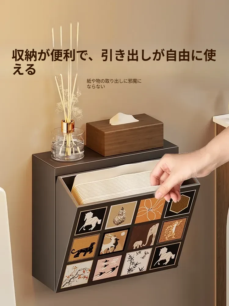 トイレ用ティッシュボックス - 穴あけ不要!トイレットペーパーや生理用品も収納できる多機能ボックス。おしゃれで便利なスマート収納、トイレをスッキリ整理整頓!