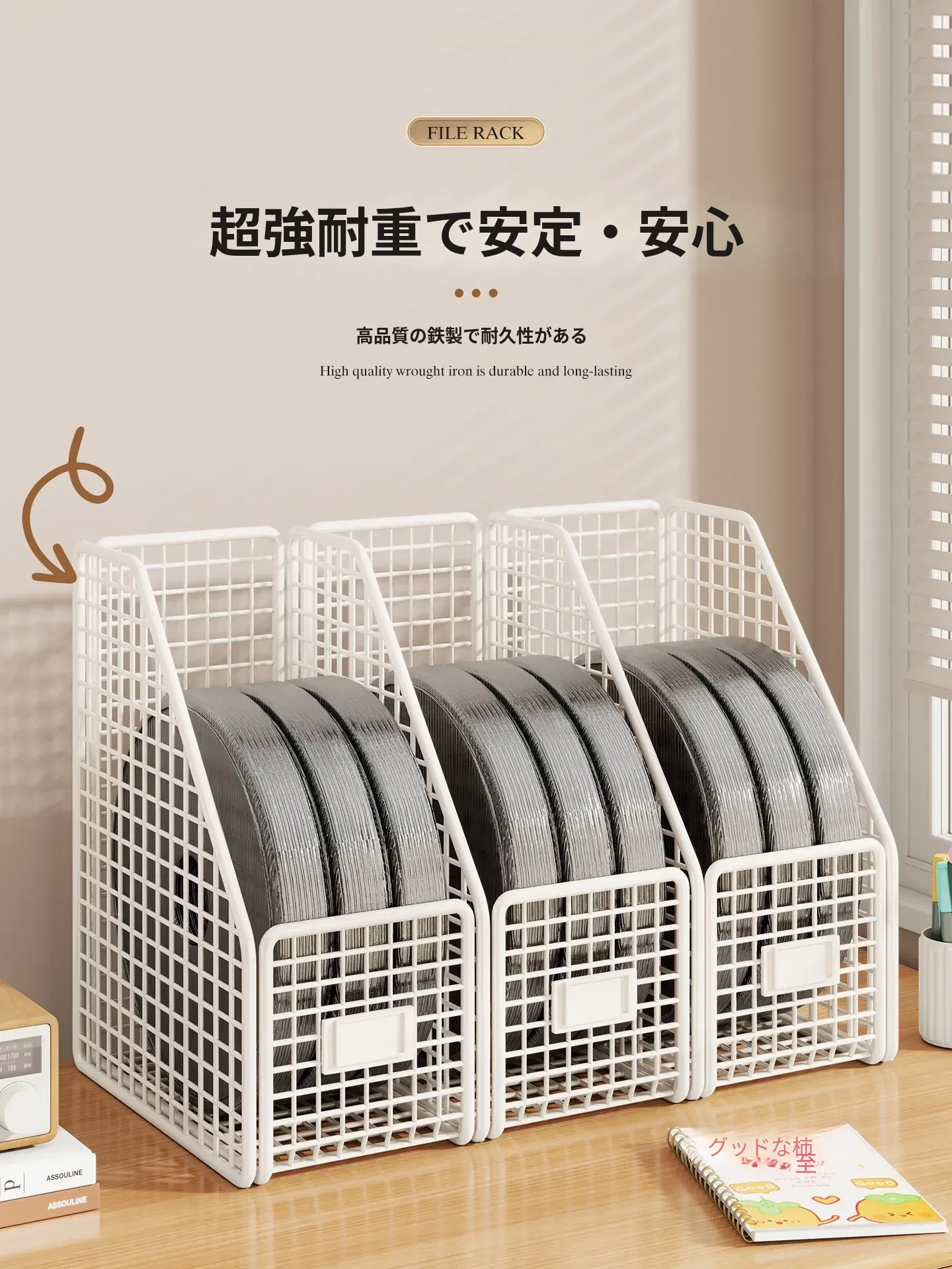 多層ファイルラック オフィスデスク用収納ボックス 学生用資料・書類整理ラック デスク上の本棚 アイアン製 おしゃれでスタイリッシュなデザインで、作業スペースをスッキリ整理!